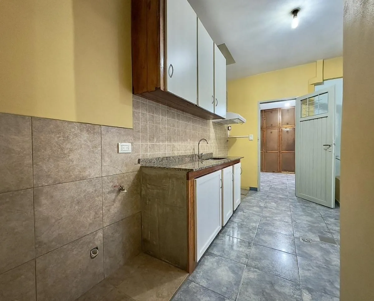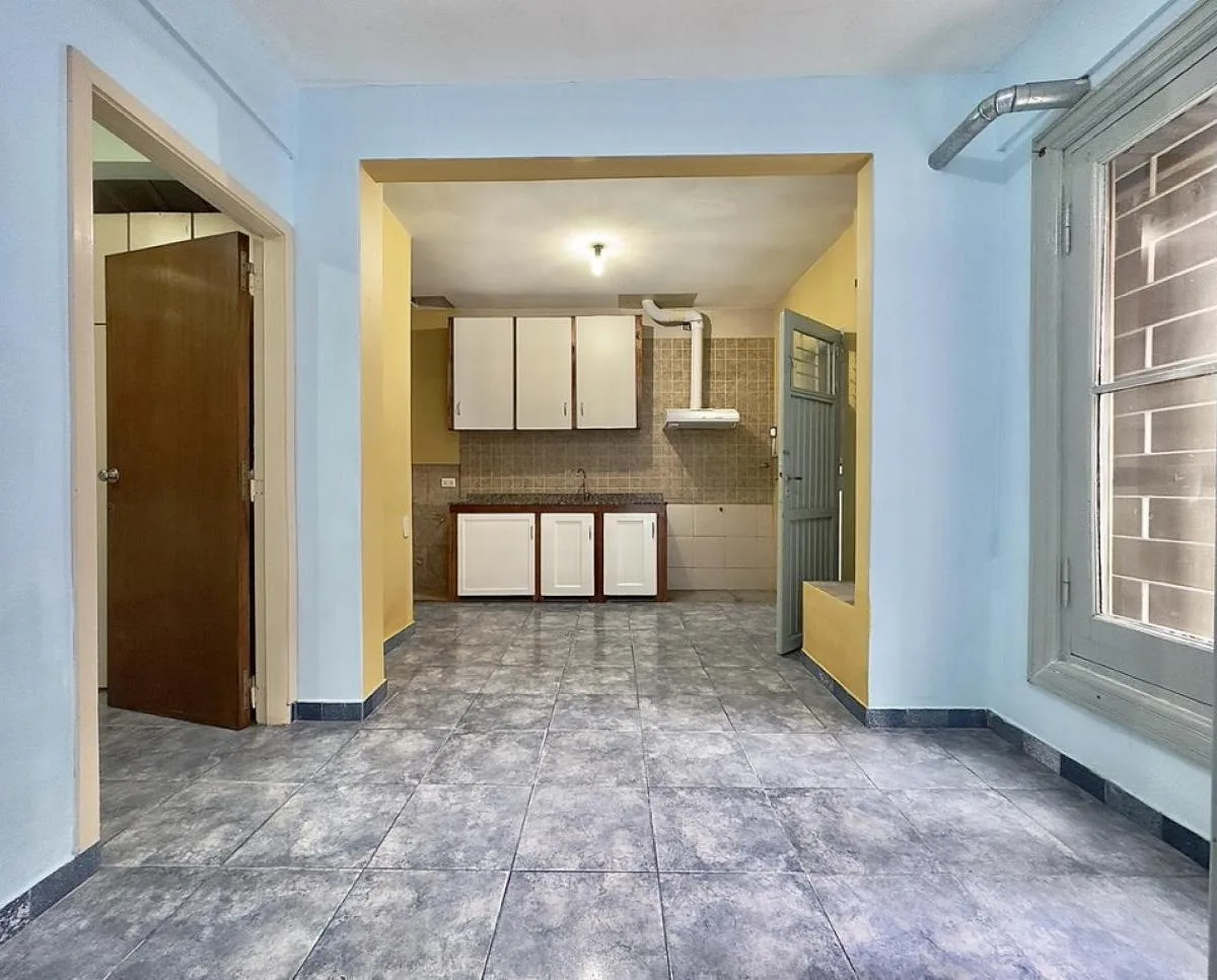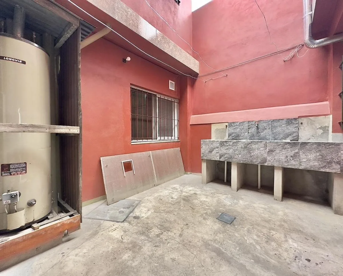 Квартира PH в General San Martín с отдельным входом и 3 комнатами, частично после ремонта. Площадь не указана; вход через просторную гостиную-столовую с большим панорамным окном. Кухня полу-встроенная, обновлённая, с нижними и верхними шкафами, предусмотрено место для холодильника и подключение под стиральную машину. Две спальни с встроенными шкафами и кладовой (baulera). Ванная комната с умывальником и душевой кабиной. Из гостиной-столовой выход в внутренний дворик с зоной для стирки и местом с