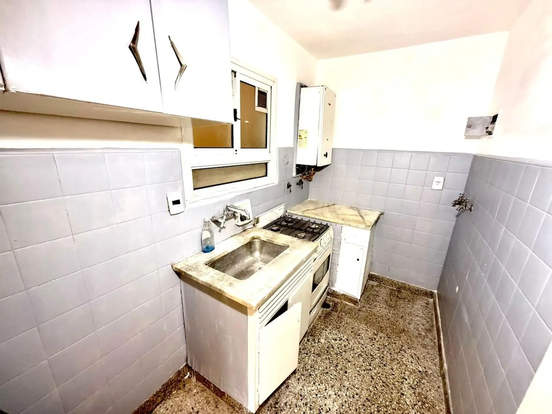Квартира в La Boca с гостиной-столовой, двумя спальнями, кухней и ванной комнатой. Указано общее хорошее состояние и расположение в нескольких метрах от торгового центра La Boca. Горячая вода от калорифера (calefón). В объявлении перечислены требования: подтверждение доходов и гарантия (имущественная либо страховой вариант caución), 1 месяц депозита, 1 месяц аванса и расходы на справки; допускается заселение при наличии платежной ведомости. Рядом указаны Usina de las Artes, Hospital Argerich, ст