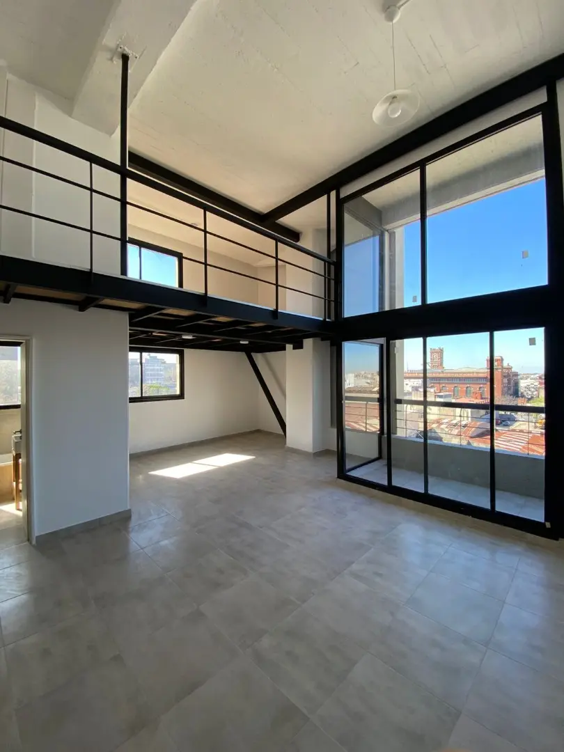 Квартира-лофт, новая (никто не жил), площадью 3 ambientes. Есть балкон. В описании указано, что планировка подходит для совместной работы.