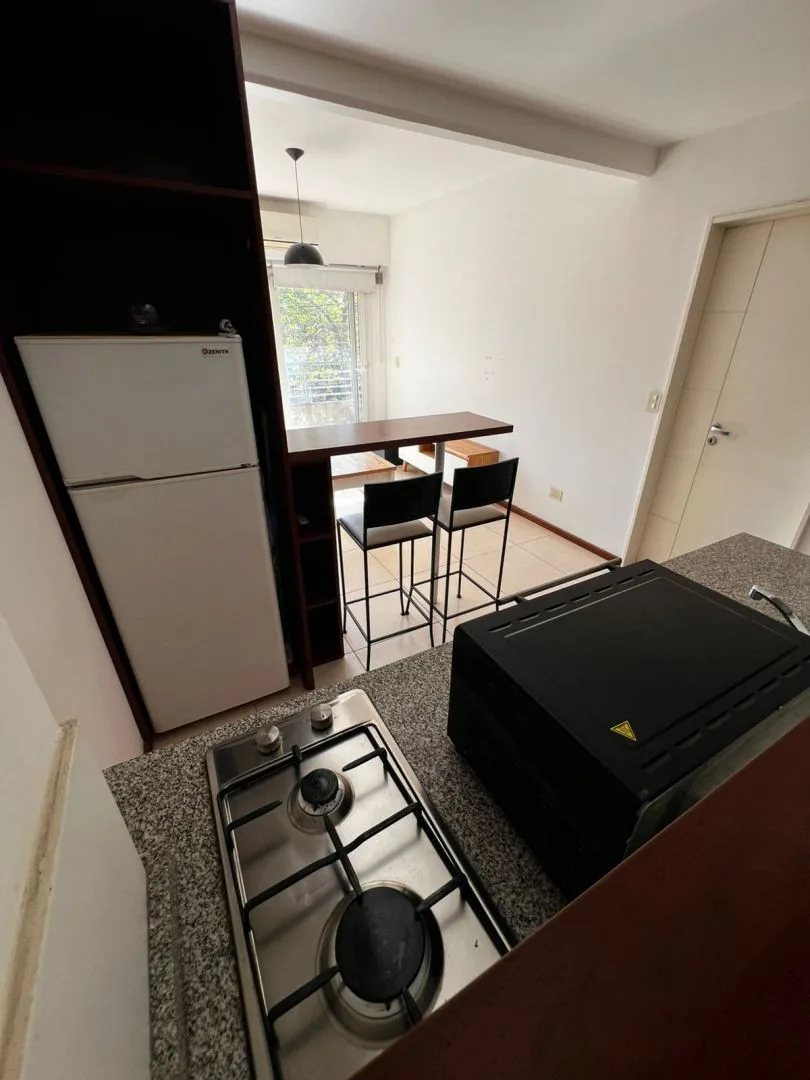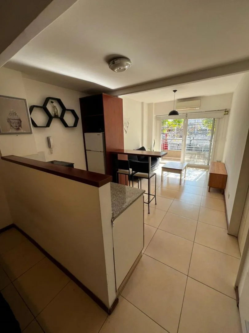 Квартира-студия площадью в La Paternal с окнами на улицу, с балконом и собственным внутренним двориком (patio). Квартира разделена на зоны; оснащена кухней на газу с электрической духовкой, холодильником с морозильной камерой. В комнате установлены двуспальная кровать с ящиками, встроенный шкаф, диван, стойка под TV и раскладной стол; есть барная стойка для завтрака на 2 банкетки. В ванной с ванной. Здание с SUM (общей гостиной) с крытой и открытой частью и зоной гриля. Коммунальные платежи здан
