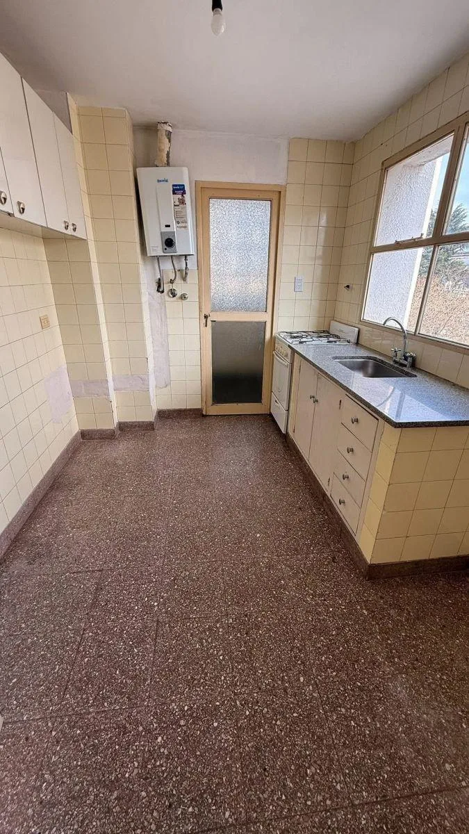 Квартира в La Plata. Планировка включает гостиную, кухню-столовую, 2 спальни со встроенными шкафами, основную ванную комнату, ванную комнату для обслуживания и прачечную. Стоимость аренды — $ 550.000, коммунальные платежи здания — около $ 150.000. График показа: понедельник–пятница 9:00–12:00 и вторник, среда, четверг 15:00–17:00.
