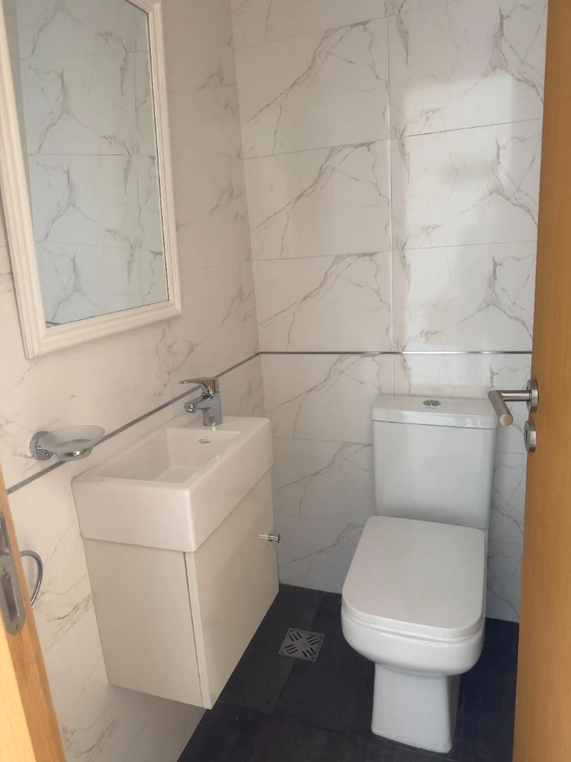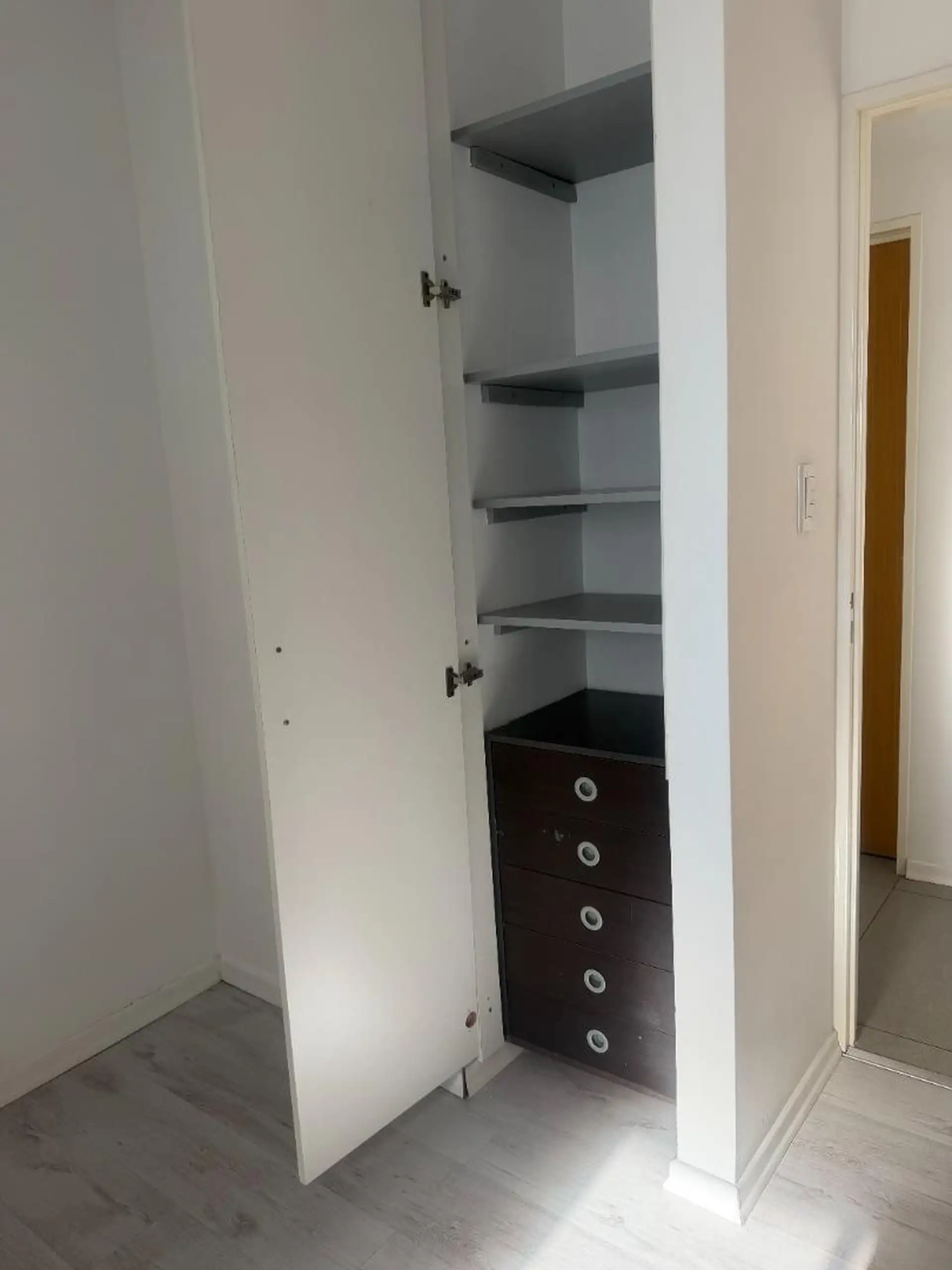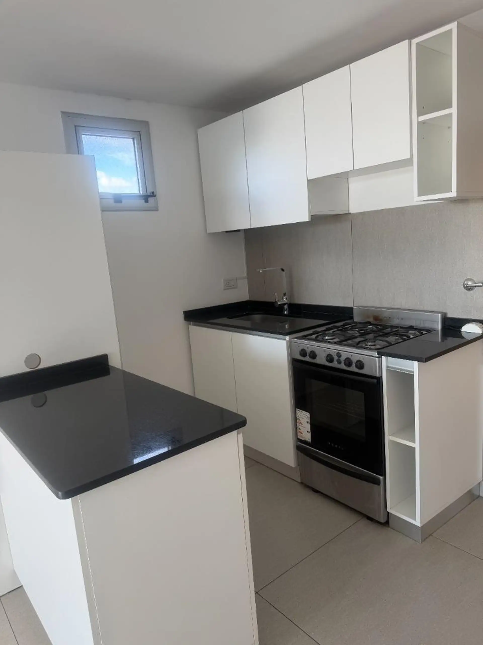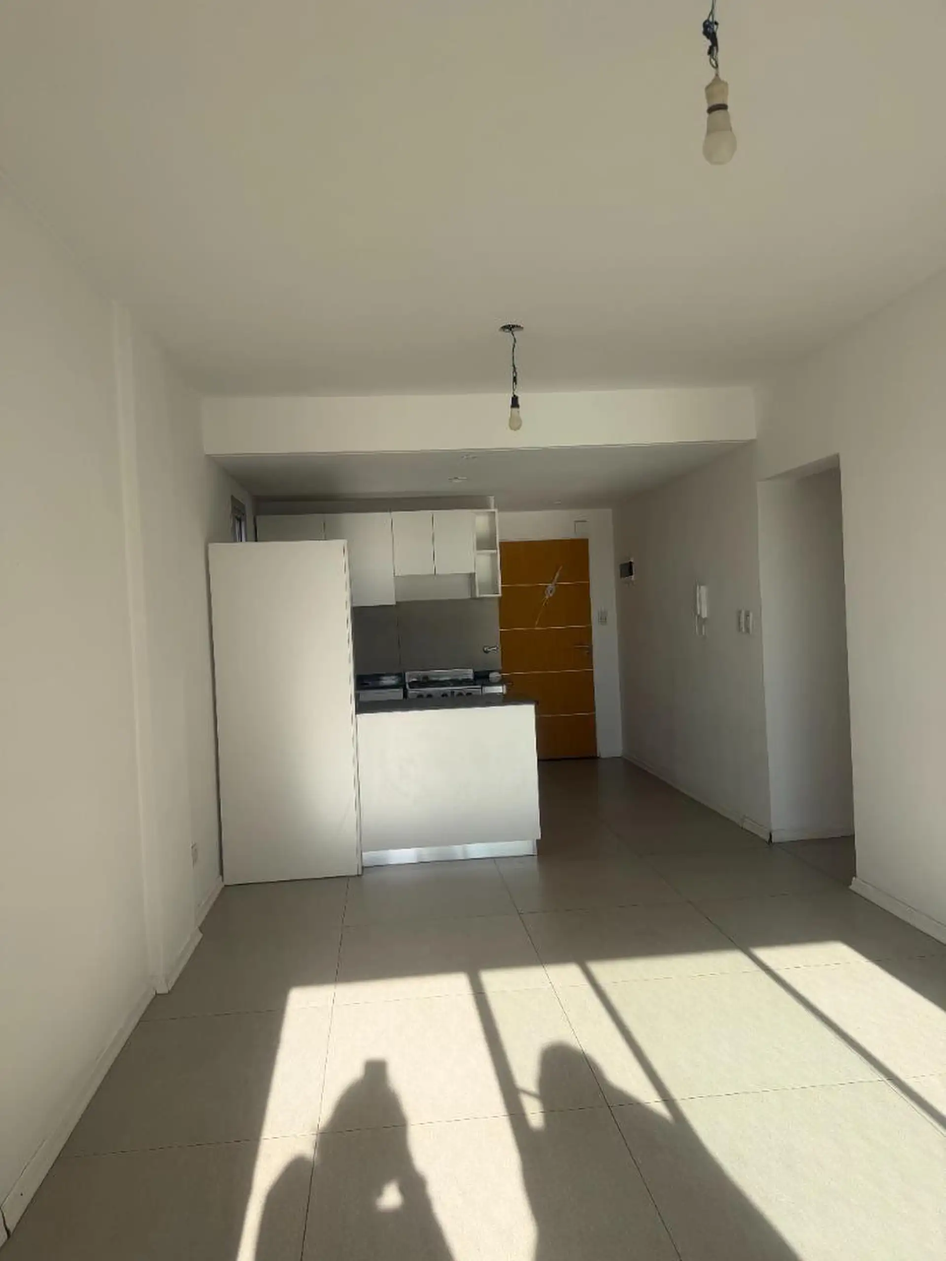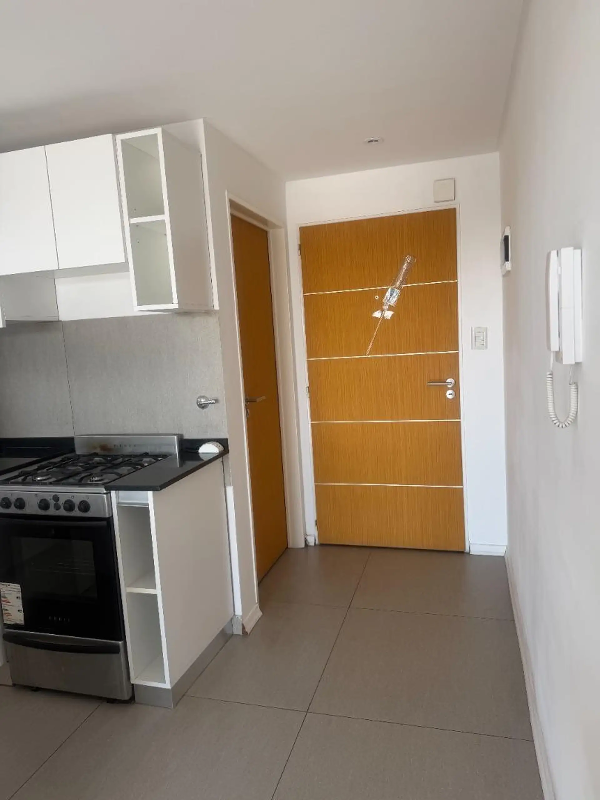Квартира с 3 комнатами в Liniers, 5 лет с момента постройки. В помещении зона приёма с открытой кухней, предусмотрено место под холодильник. 2 спальни со встроенными шкафами, выход на балкон из главной спальни. Есть полный санузел и туалет; окна на улицу.