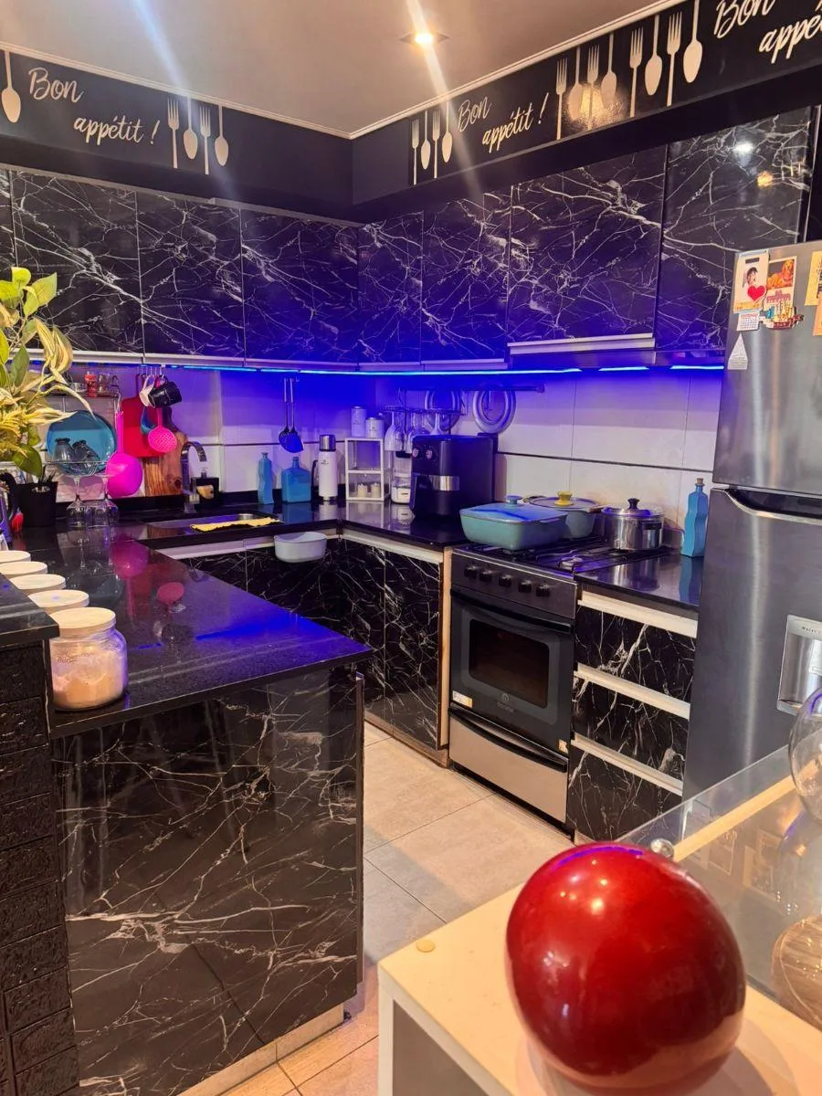 Квартира в Liniers на 4-м этаже, окна на улицу. 58,17 m² крытых, 14,63 m² полукрытых/непокрытых и 72,80 m² общих. Жилая комната 8,00 x 3,00 м, с электрической печью Clever и кондиционером «rca» (холод/тепло), полы из ламината. Кухня 3,00 x 2,00 м с верхними и нижними навесными шкафами, завтрак-бар, газовая плита Escorial и очиститель воздуха Franke Spar. В главной спальне 2,80 x 3,00 м кондиционер «tcl» (холод/тепло) и встроенный шкаф, во второй спальне 3,40 x 2,30 м кондиционер (холод/тепло) и