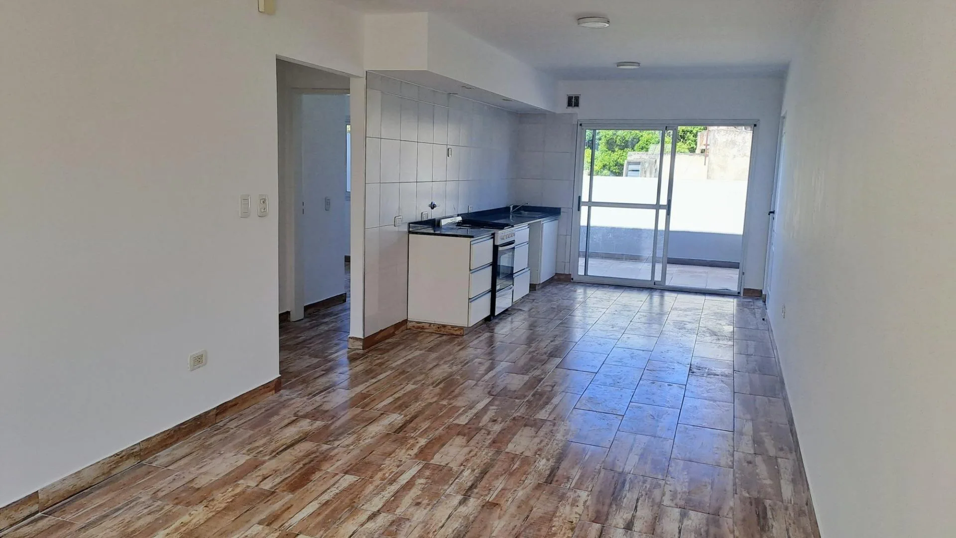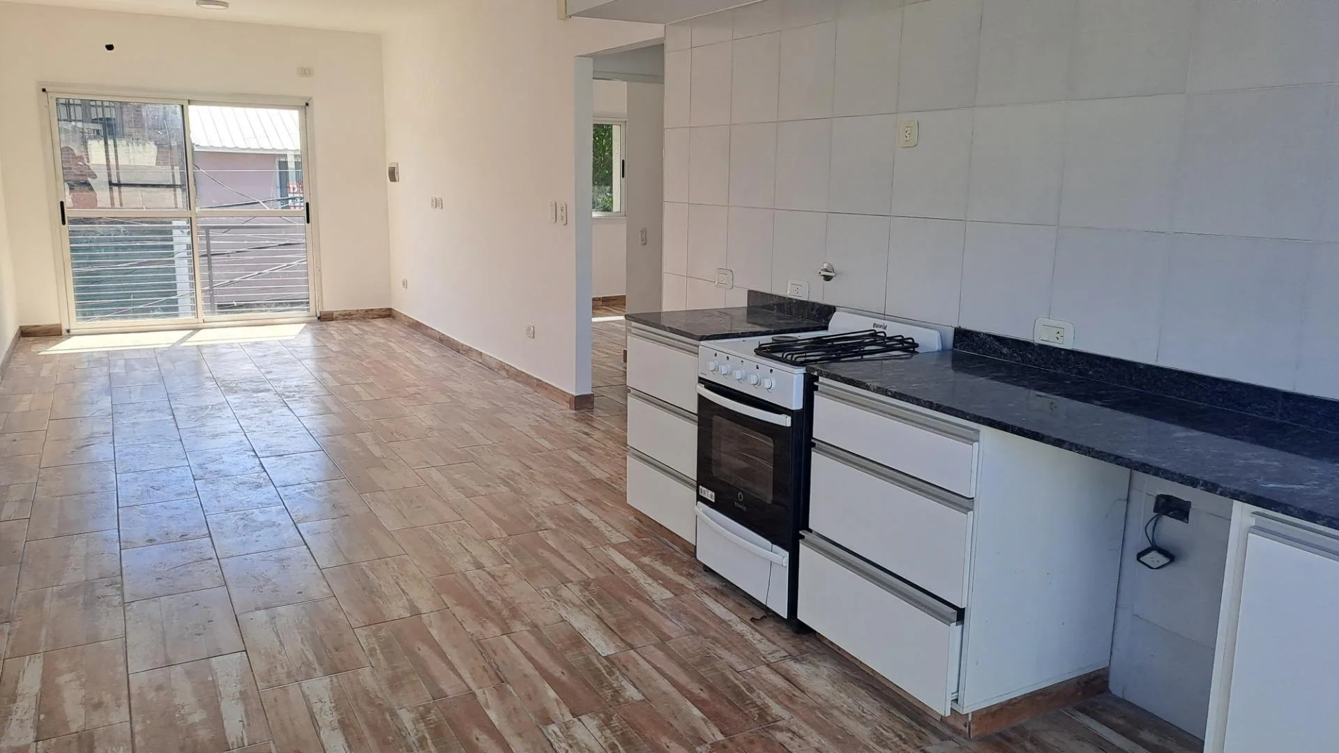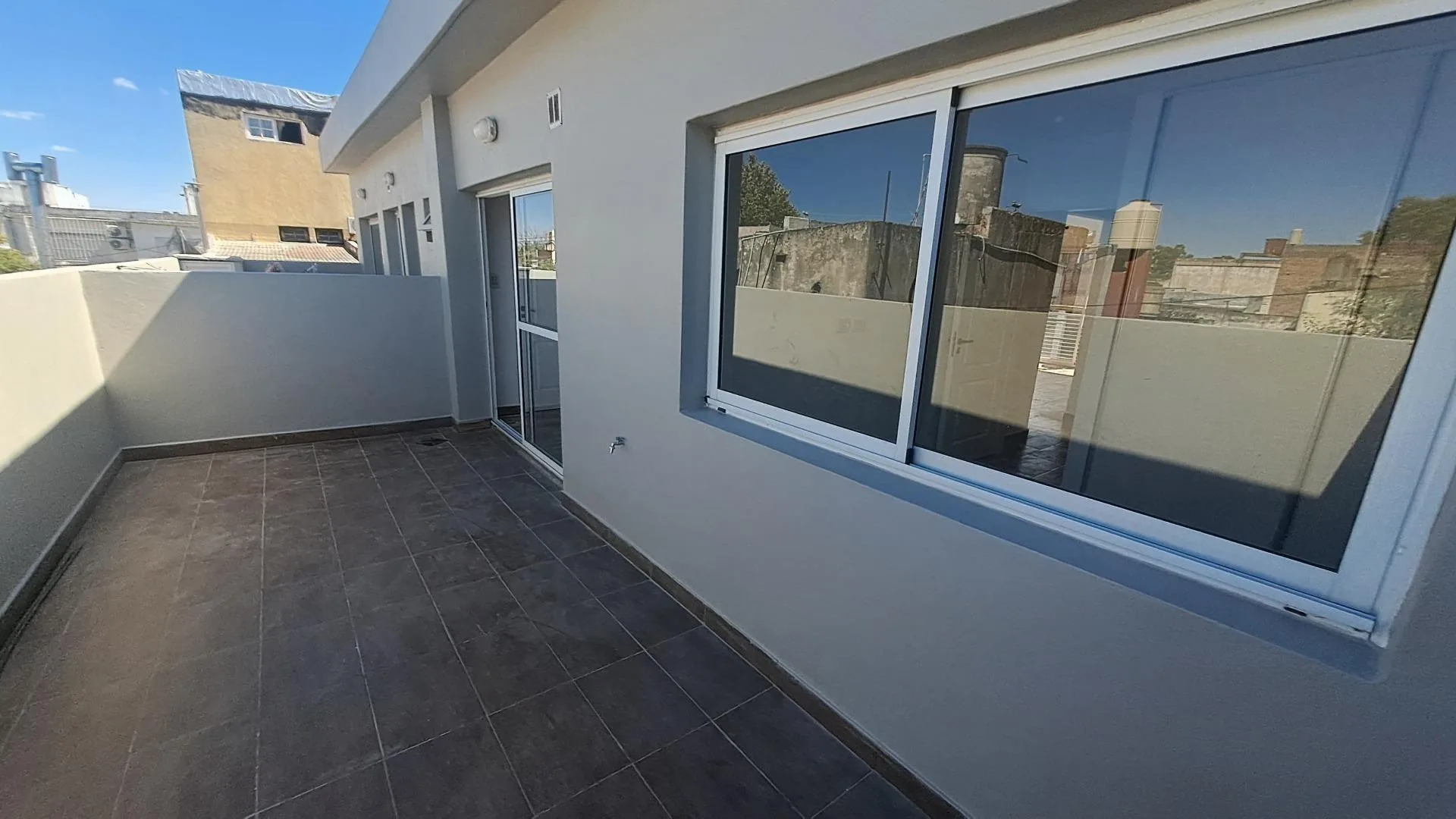 Квартира PH с отдельным входом на 1-м этаже, без лифта, через лестницу. Две спальни с встроенными шкафами (окна на улицу и во двор), гостиная-столовая с кухней, оборудованной мебелью под мойку и смесителями. Есть общая сквозная вентиляция, полный санузел с душевой зоной и тумбой, балкон спереди и балкон-терраса во внутренний двор. Коммунальные платежи здания (expensas), ARBA и ABL не взимаются.