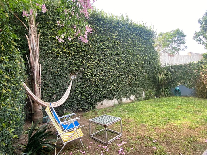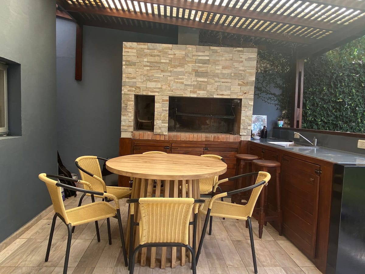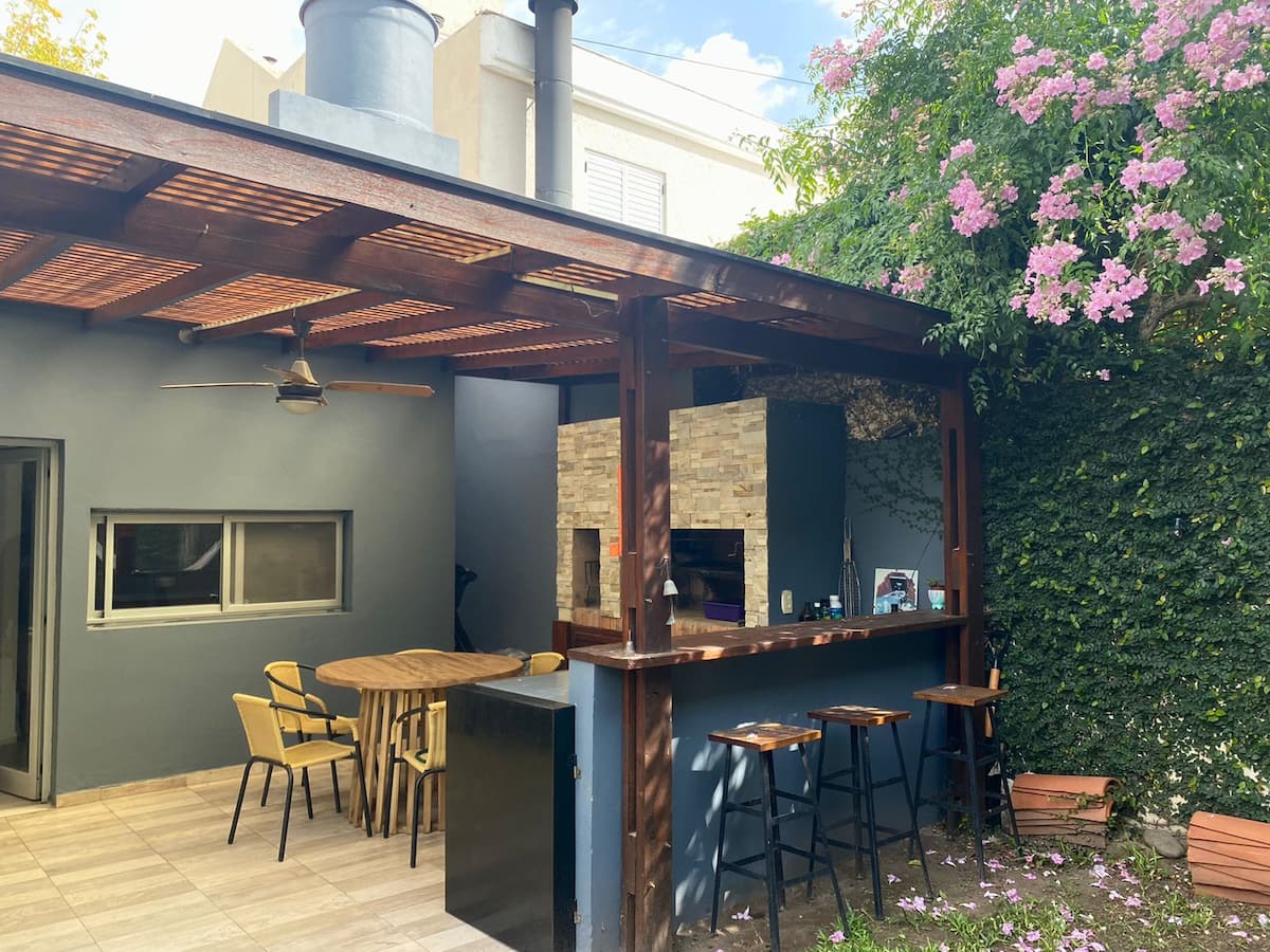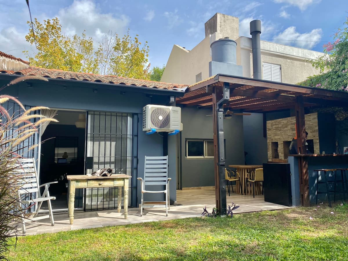 Дом в Acassuso, полностью меблирован и оборудован. Просторная гостиная-столовая, спальня с кроватью king-size, ванная комната, кухня с оснащением. В доме есть сад с галереей и зоной гриля. Площадь и этаж в объявлении не указаны; указано, что объект расположен в 150 метрах от Hipódromo de San Isidro.