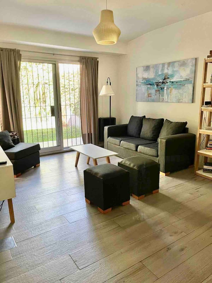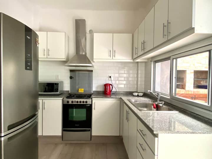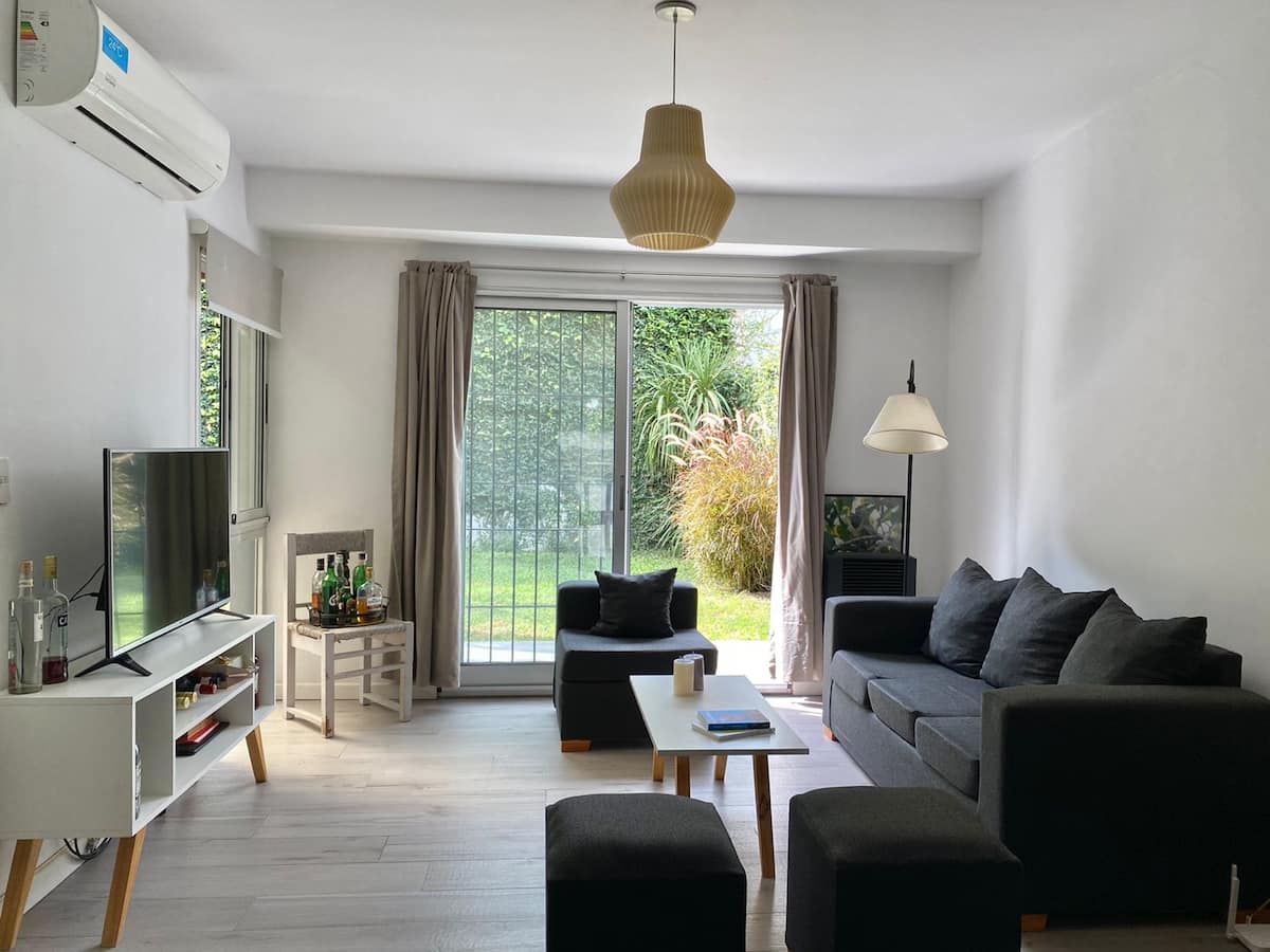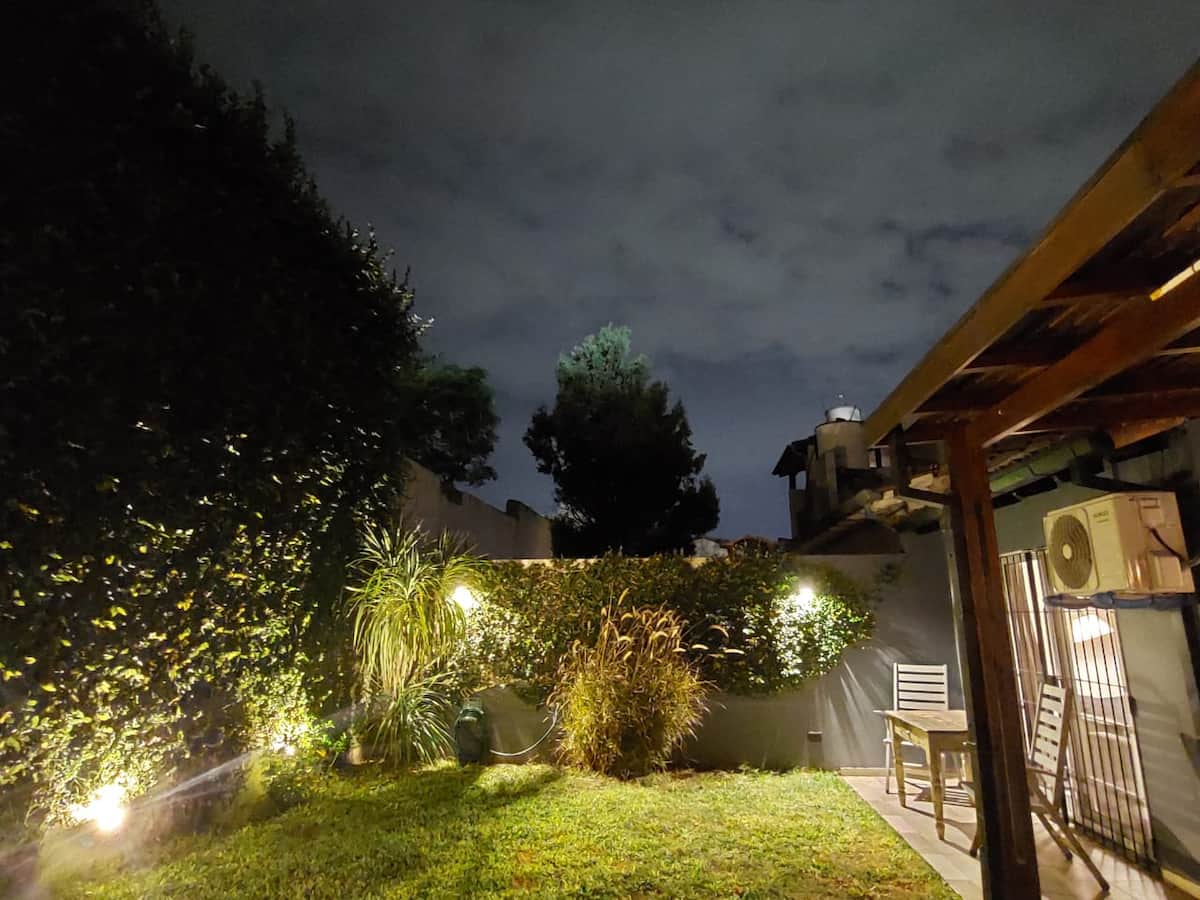 Дом в Acassuso, полностью меблирован и оборудован. Просторная гостиная-столовая, спальня с кроватью king-size, ванная комната, кухня с оснащением. В доме есть сад с галереей и зоной гриля. Площадь и этаж в объявлении не указаны; указано, что объект расположен в 150 метрах от Hipódromo de San Isidro.