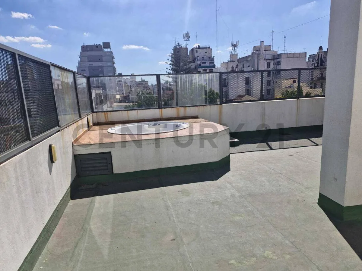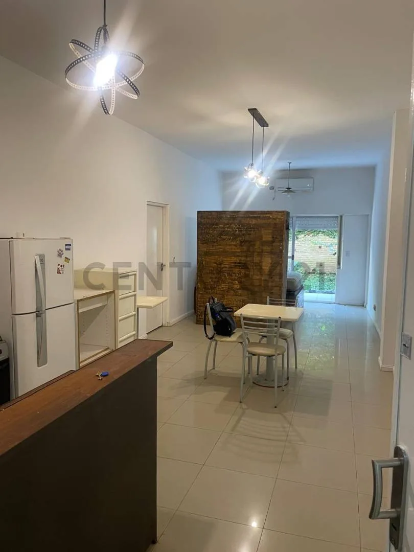Квартира-студия площадью с большим внутренним садом, окна, по описанию, выходят на более светлую зону. С мебелью. 1 совмещённая ванная комната, интегрированная кухня. Коммунальные платежи включают воду и газ, в здании установлена котельная; отопление обеспечивается бойлером в доме. Указано расположение: в 2 кварталах от UADE и в 4 кварталах от Universidad Interamericana, на расстоянии 1,5 квартала от Av. Belgrano и 1 квартала от Av. 9 de Julio.