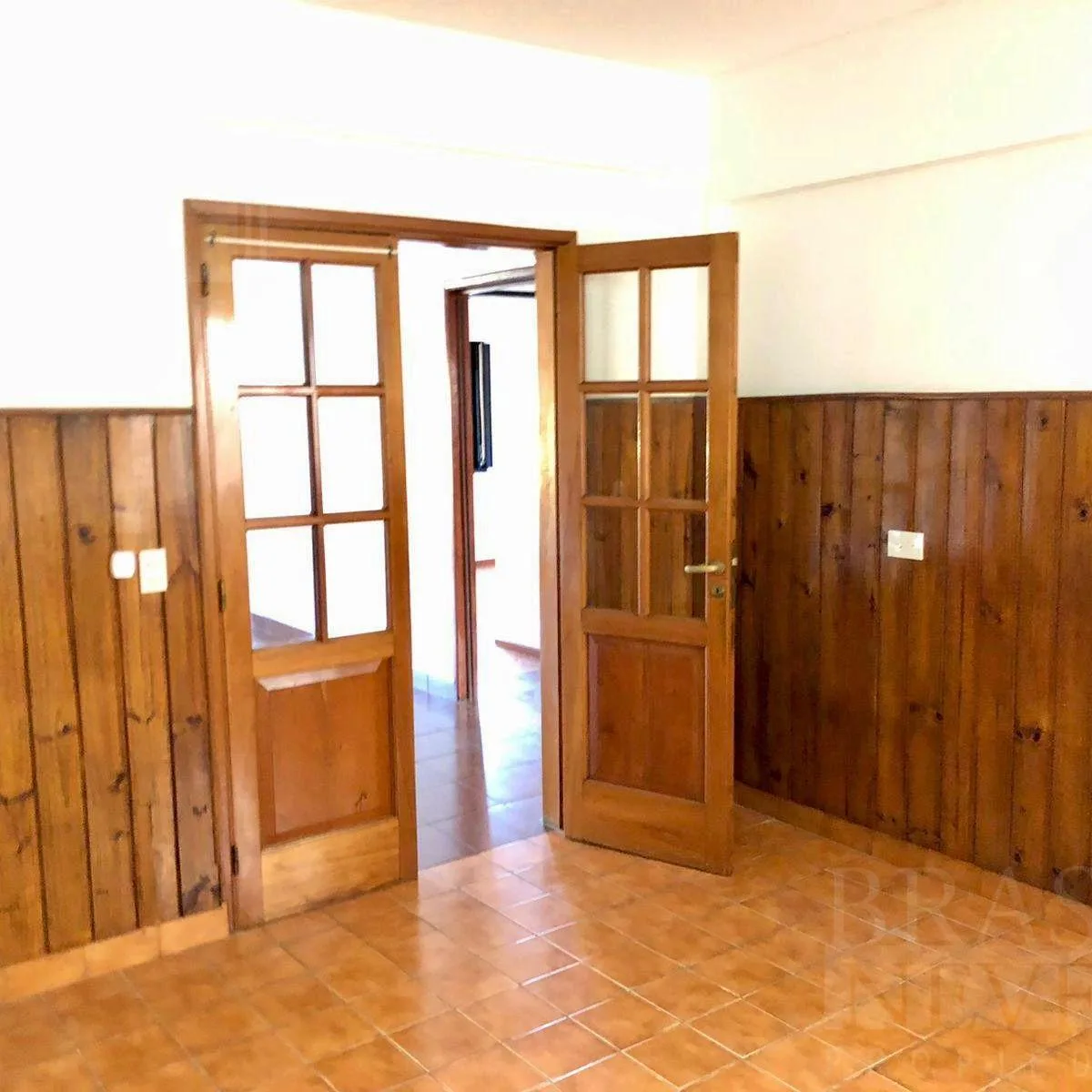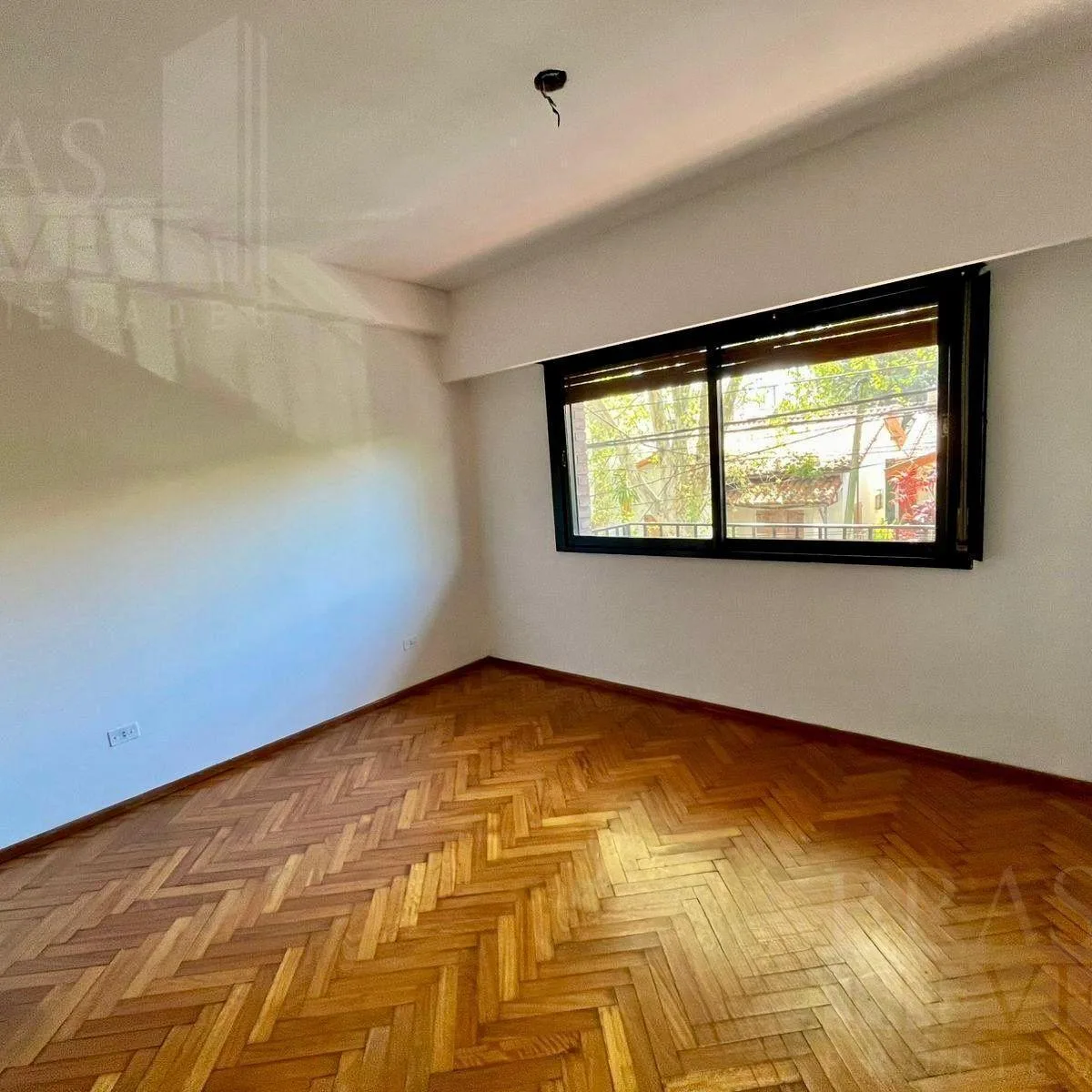 Полуэтажная квартира с 3 комнатами площадью 90 m², на 1-м этаже без лифта, вход через лестницу. В ней 2 спальни с встроенными шкафами и паркетным полом, гостиная-столовая, отдельная кухня с обеденной зоной и отдельная прачечная. Есть собственный внутренний дворик и балкон по всей ширине фасада. На жилом этаже по 2 квартиры, всего 6 единиц в здании. Коммунальные платежи здания указаны как низкие. Заключается договор на 2 года с квартальными увеличениями по IPC.