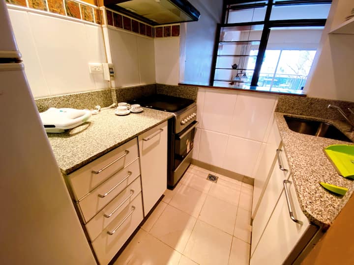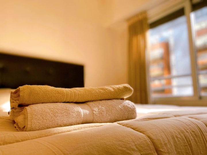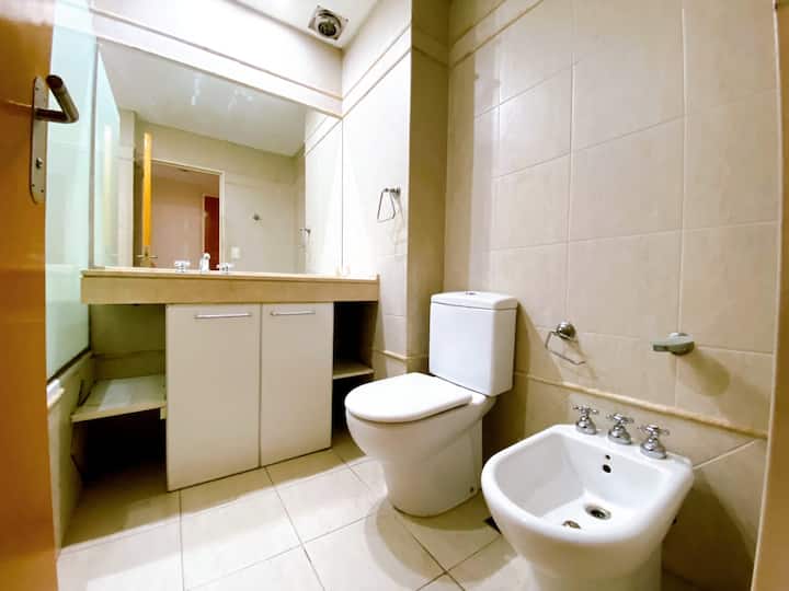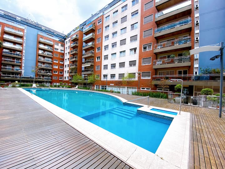 Квартира в Puerto Madero с размещением до 4 человек. Спальня укомплектована двуспальной кроватью и одной односпальной кроватью, в гостиной есть диван-кровать. В здании работает охрана 24 часа в сутки. Предусмотрены бассейн и тренажёрный зал.