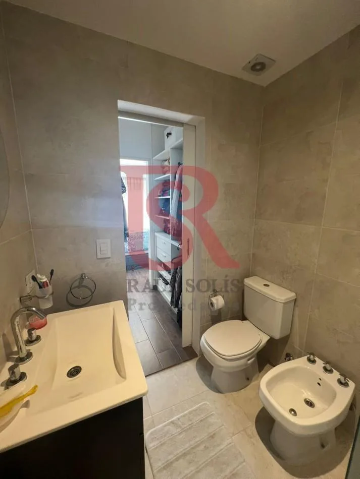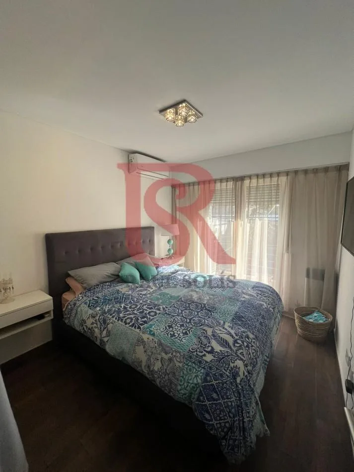Полуэтажная квартира 3 комнаты в Quilmes. Гостиная, кухня-столовая, главная спальня с гардеробной и ванной комнатой (en suite), вторая спальня с гардеробным шкафом, отдельная ванная и балкон. В комнатах установлены кондиционеры и шторы blackout. Коммунальные платежи включают воду, начисления по Impto Municipal и общую электроэнергию.