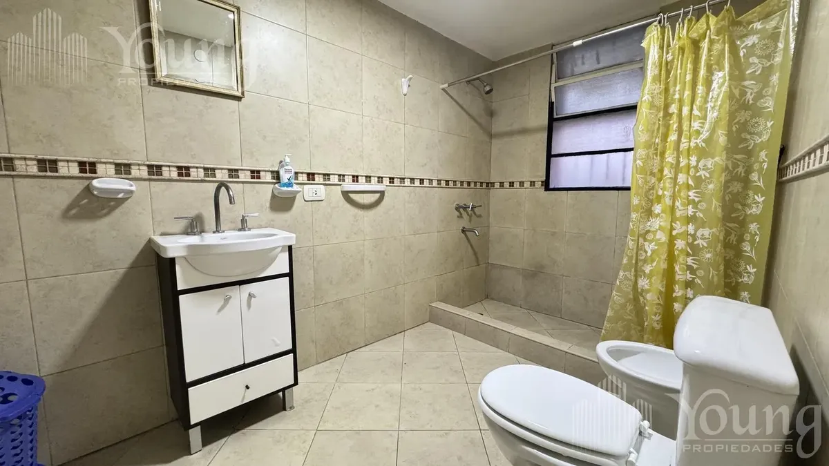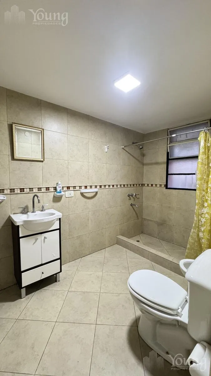 Квартира в аренду в Bernal, 3 комнаты, расположена на антресольном этаже без лифта, через лестницу. Окна выходят в сторону, указанную как очень светлая. В квартире есть кухня-столовая с нижними шкафами, навесными модулями, гранитной столешницей и подключением для стиральной машины; первая спальня с гардеробом, вторая спальня со кладовой (baulera). Полная ванная с душем, керамической отделкой и покрытием; установлена общая зона для гриля. Коммунальные платежи здания 45.000 включают Aysa, ARQUI, о