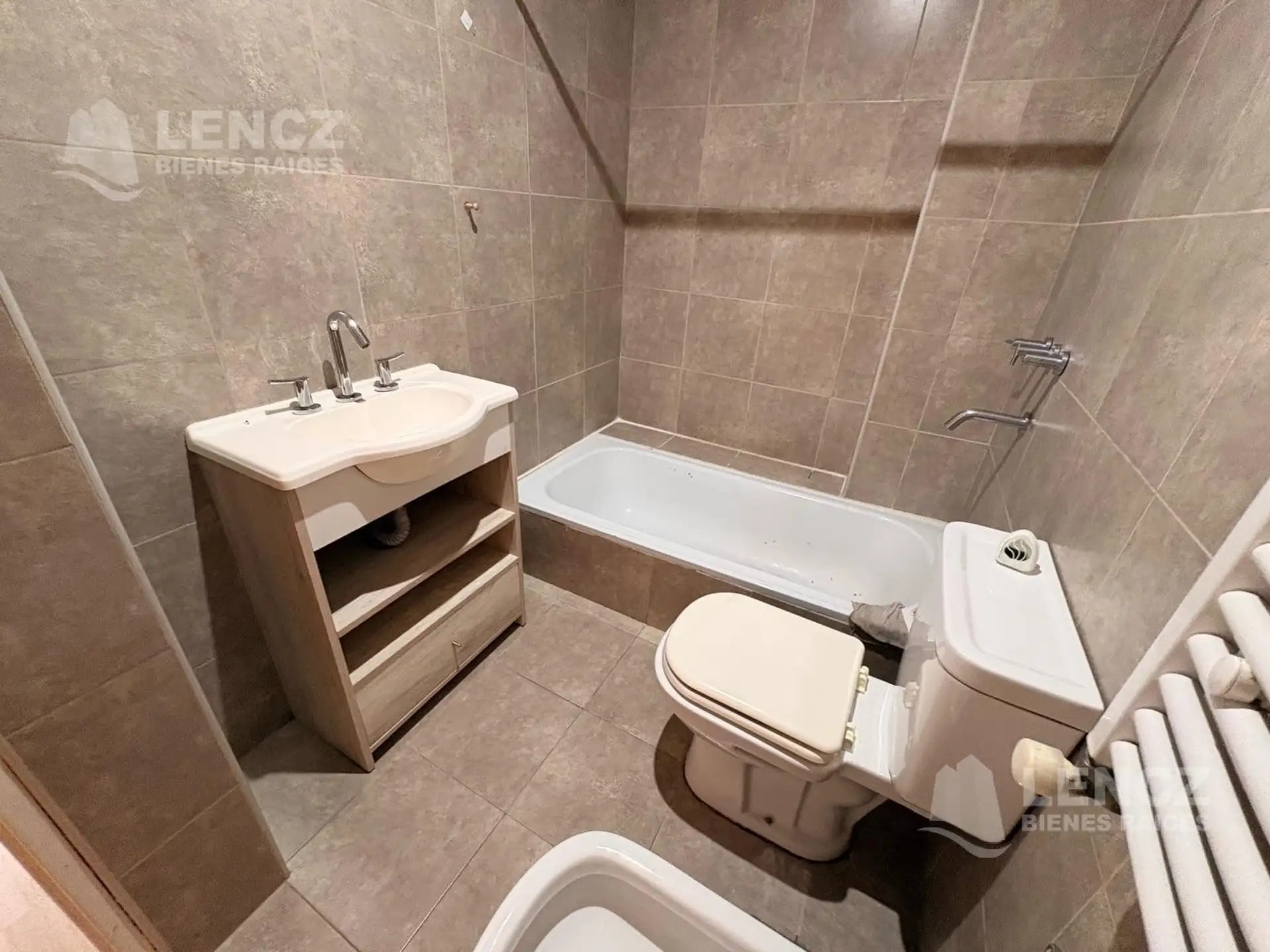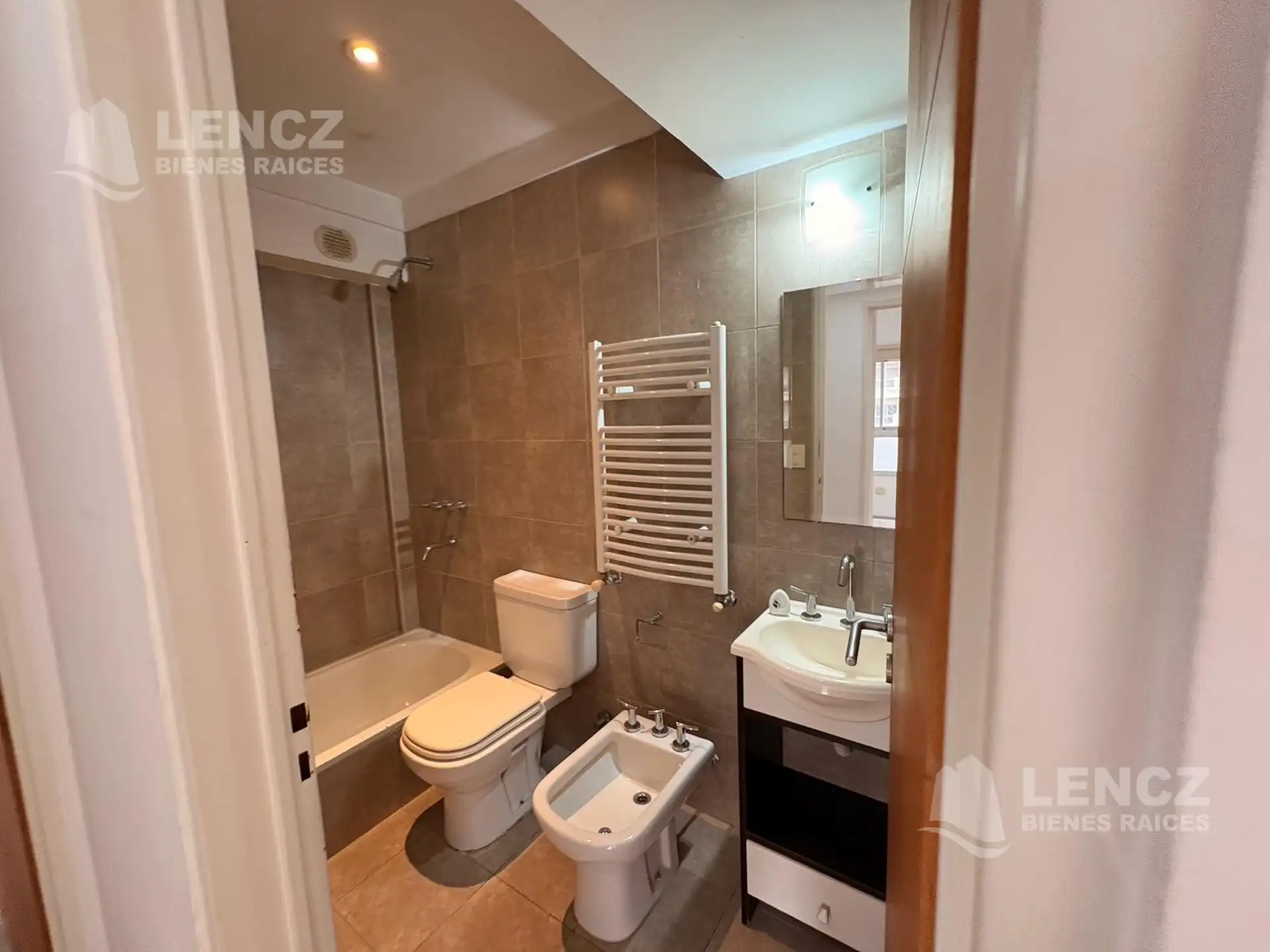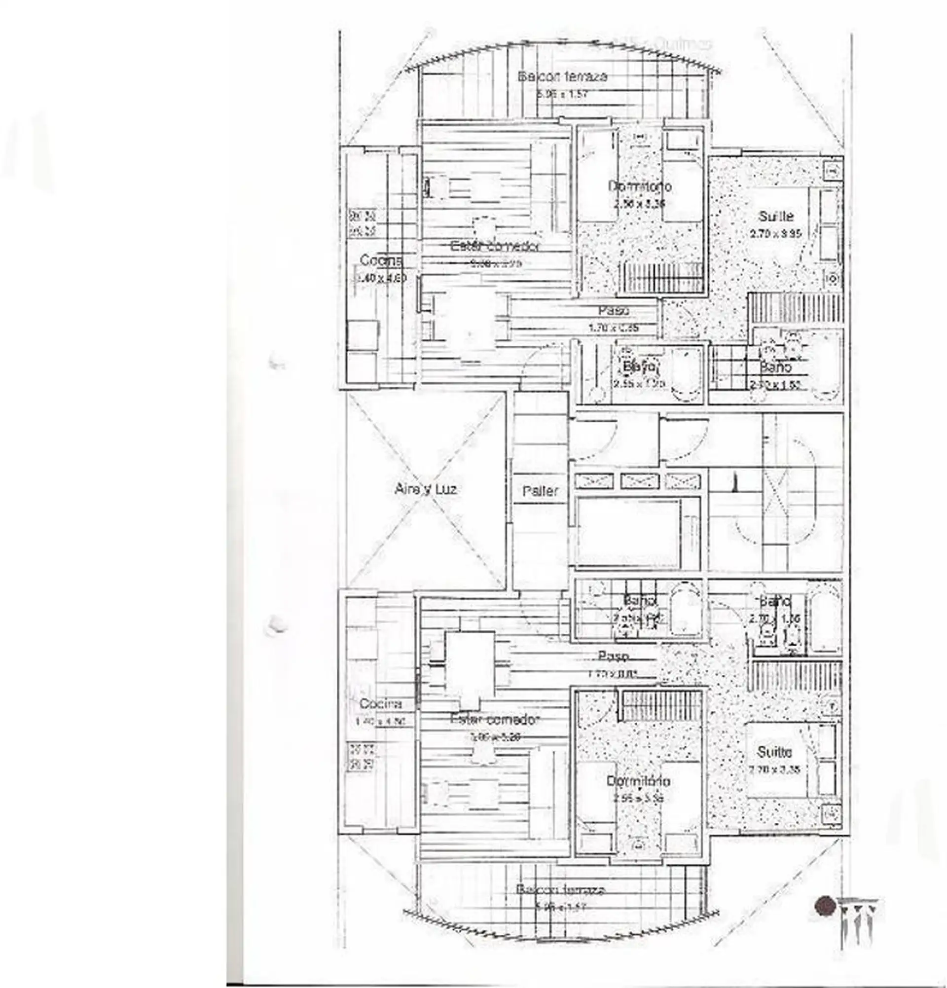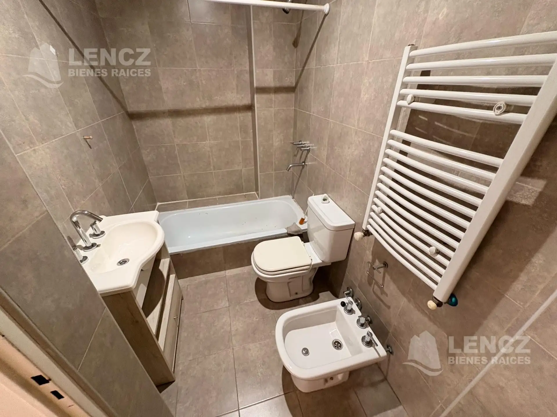 Полуэтажная квартира в Quilmes, 3 комнаты, 2 спальни. Кухня отдельная, есть выход на широкий балкон, окна выходят во внутренний двор квартала. В квартире два полностью оборудованных санузла с ванной, одна из спален с собственной ванной комнатой. Отдельная система отопления с радиаторами Peisa (Dual Peisa), установлены шторы screen/black out, квартира сдаётся после покраски. В здании есть общая гостиная для примерно 25 человек, зона гриля и терраса, также указаны камеры видеонаблюдения с просмотр