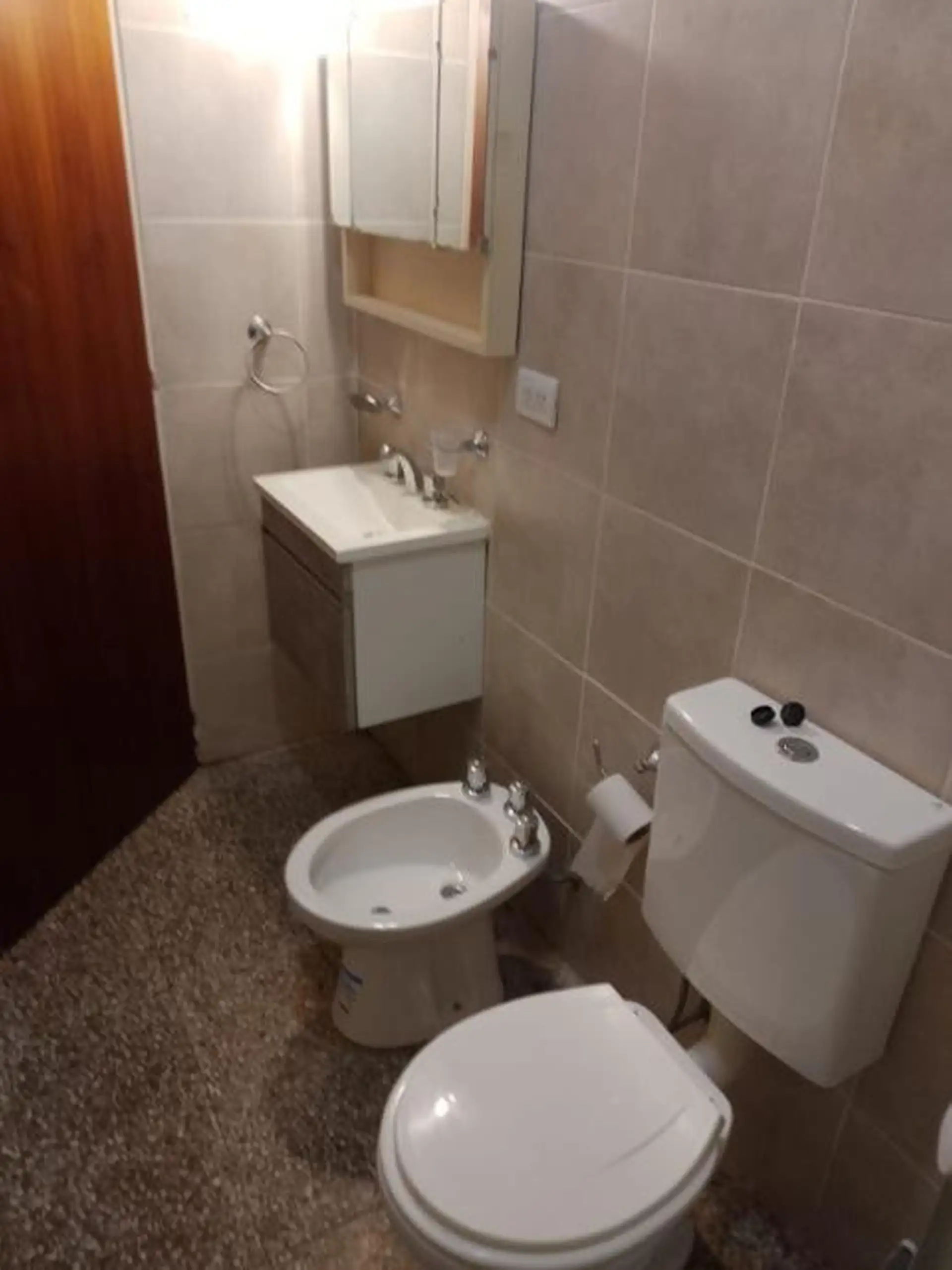 Квартира в Quilmes Oeste площадью 3 комнаты, полностью электрическая. Есть гостиная-столовая, кухня с нижними кухонными шкафами, электроплита на 2 конфорки, Spar и электрический водонагреватель (termotanque). В ванной комнате раковина (vanitory), унитаз, биде и душевой бокс. Две небольшие спальни, одна с шкафом; также предусмотрены внутренний двор-терраса общего пользования. Доступна с марта 2026 года.