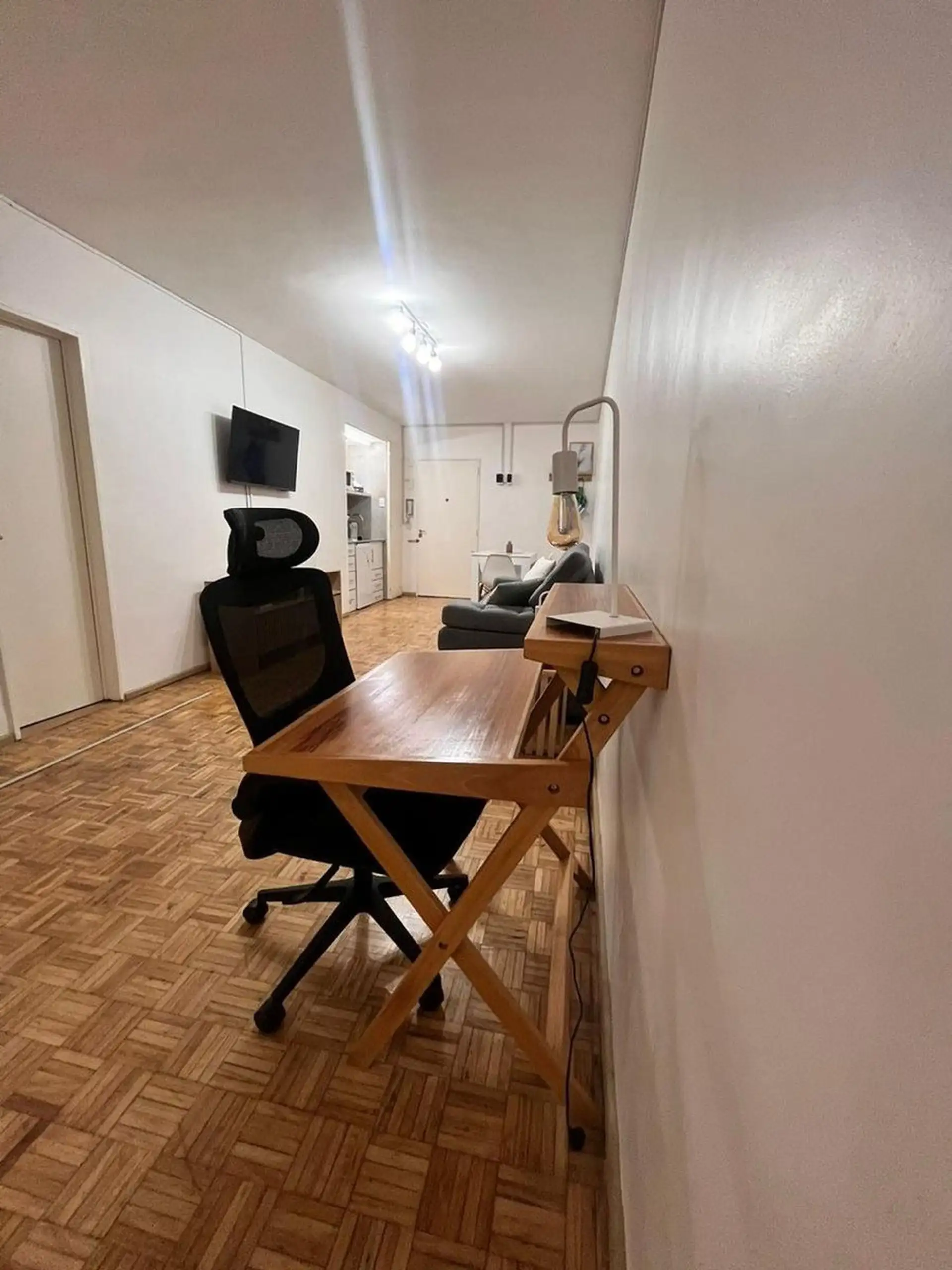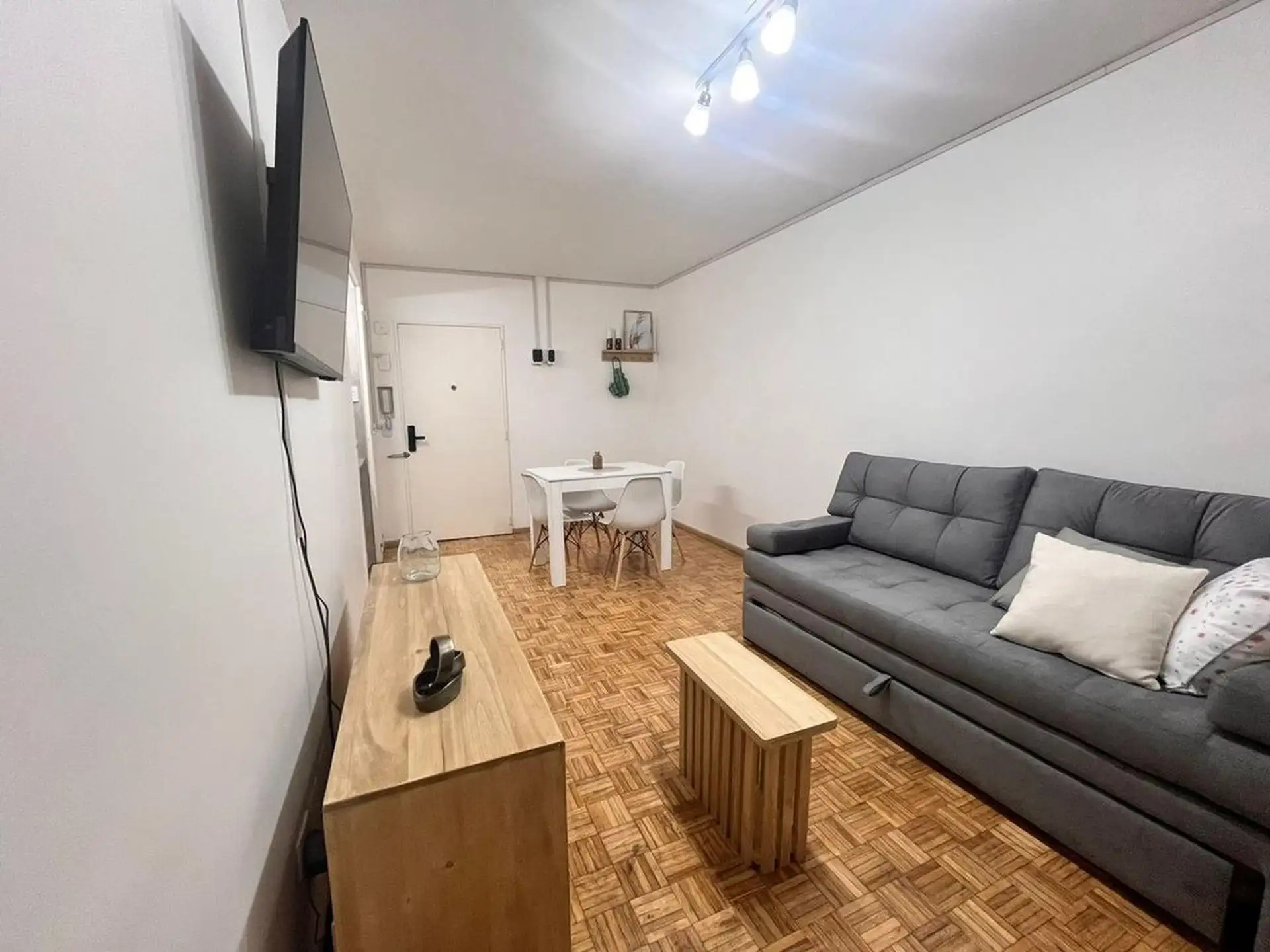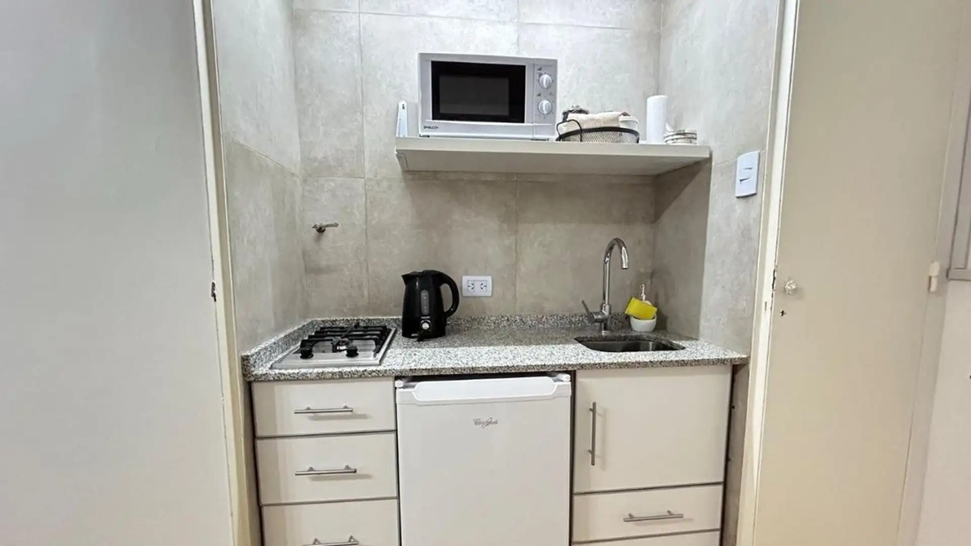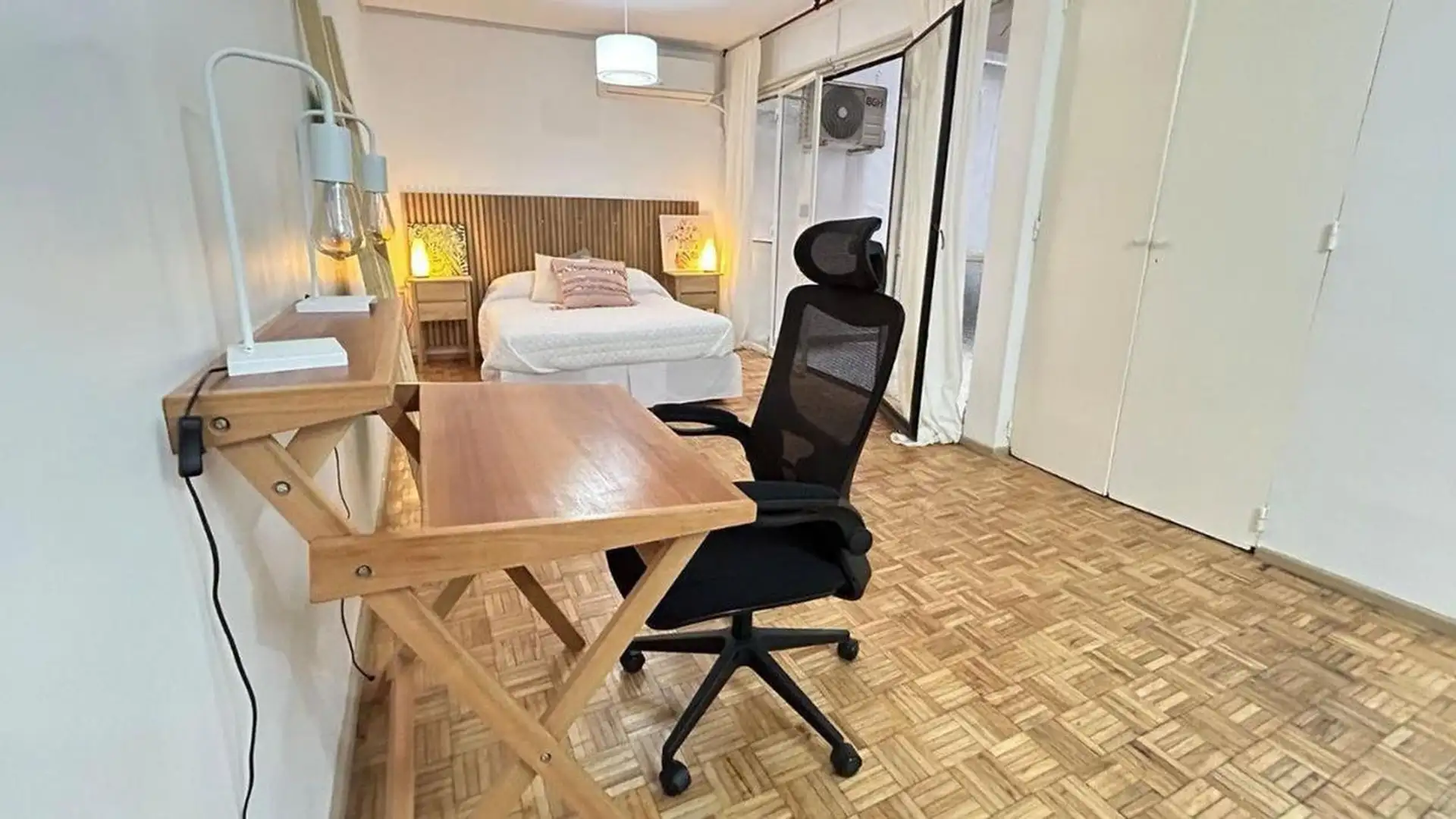 Квартира-студия площадью не указана в Retiro, полностью меблирована. В объявлении указано, что еженедельная уборка входит в сумму аренды. Есть кондиционер, возможно разделение помещения, также упомянут внутренний двор и встроенный шкаф с местом для хранения. Коммунальные платежи здания и налоги не включены в цену; требуется депозит и предоплата, залог-страховка аренды или гарантия собственника.