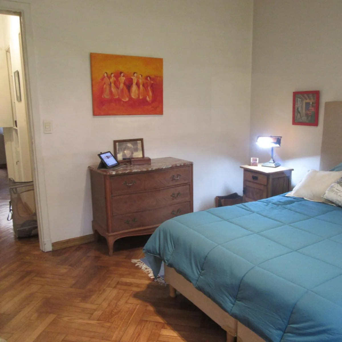 Квартира в аренду на 6 месяцев, доступна с 7 июля 2025 года. Планировка 3 ambientes: 2 спальни и гостиная, окна во двор (contrafrente), 1-й этаж. В квартире есть полноценная ванная и гостевой санузел. Полностью с мебелью и оборудованием, с стиральной машиной и кондиционером в гостиной и в одной спальне.