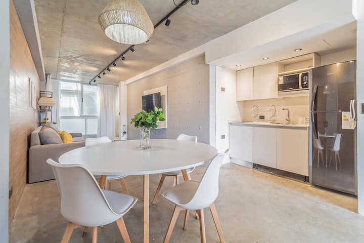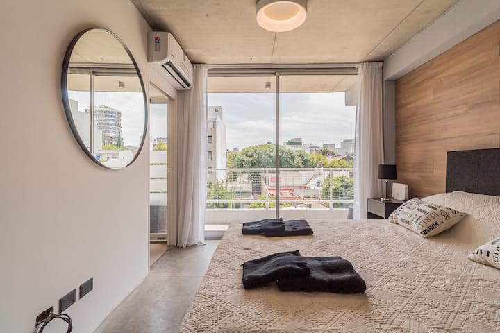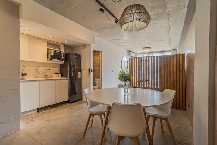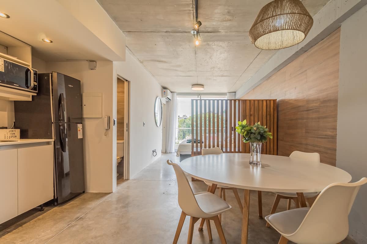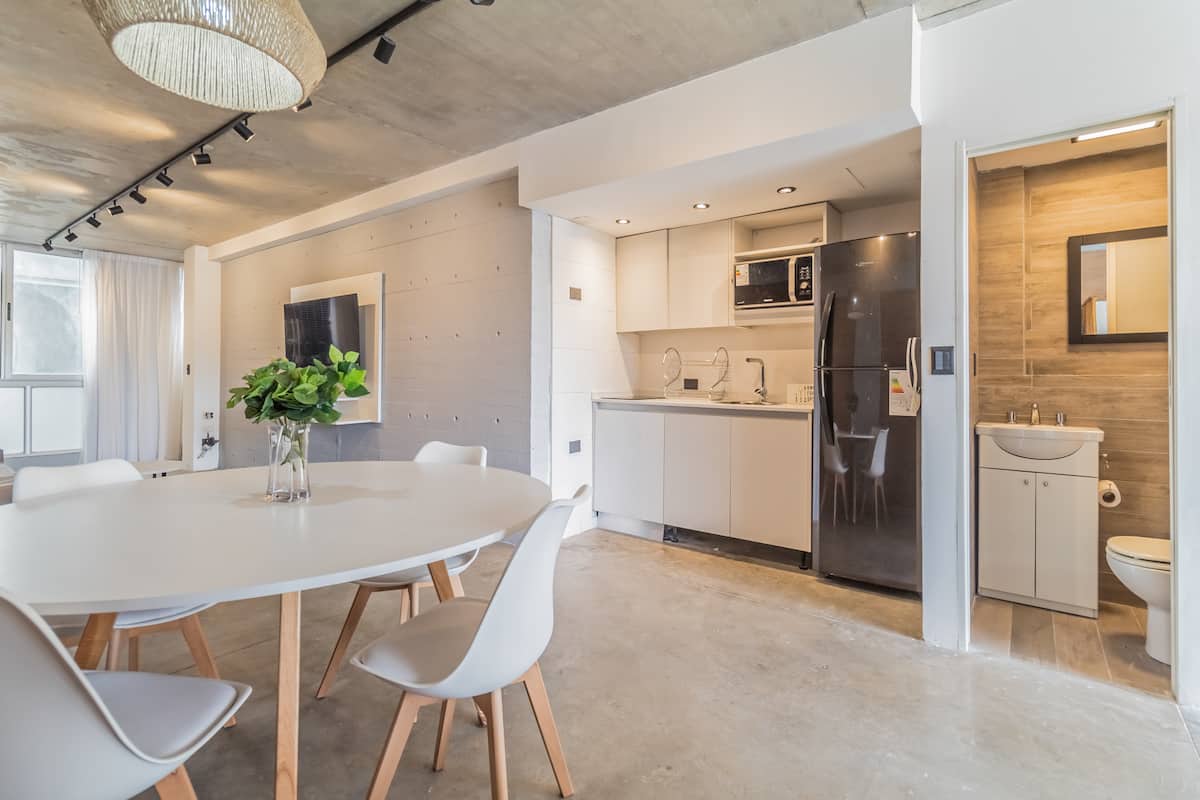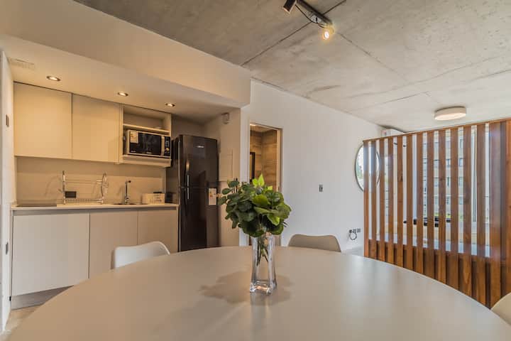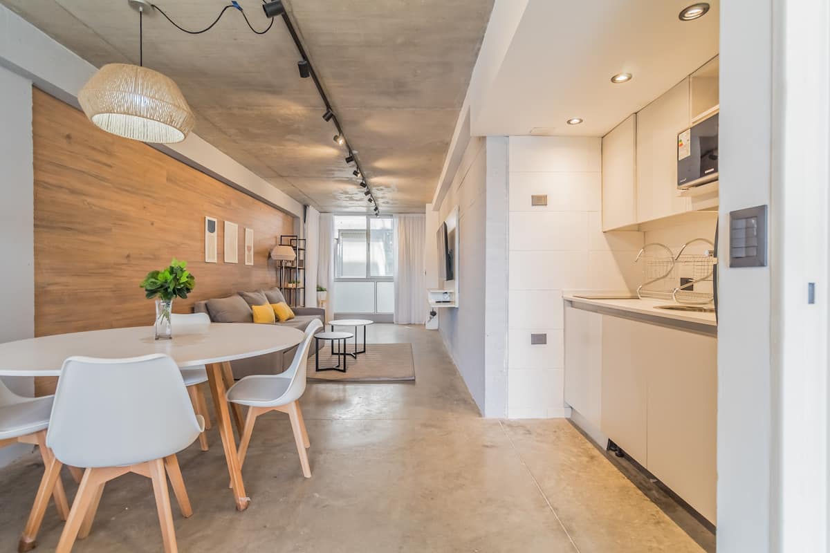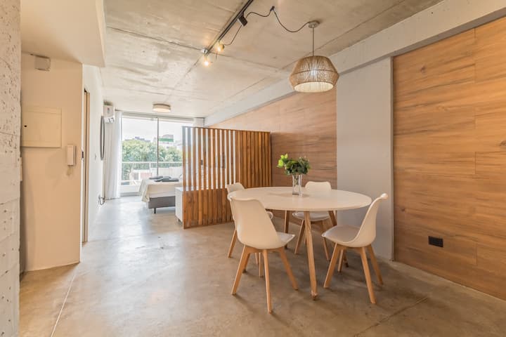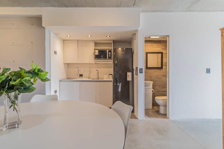 Квартира-студия в Saavedra рассчитана на 4 человека. В помещении есть двуспальная кровать (queen) и диван-кровать для 2 человек, полноразмерная кухня и обеденный стол в гостиной. Имеется Smart TV, два санузла (один полный), большая терраса и окна на улицу. Подключён высокоскоростной интернет по оптоволокну; вход в квартиру осуществляется по бесключевому доступу.