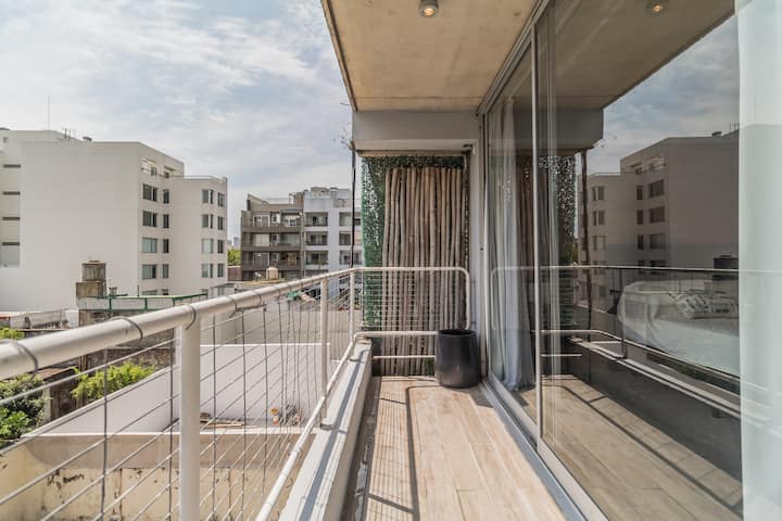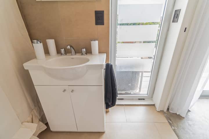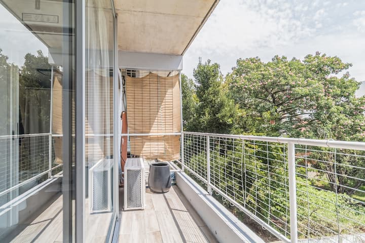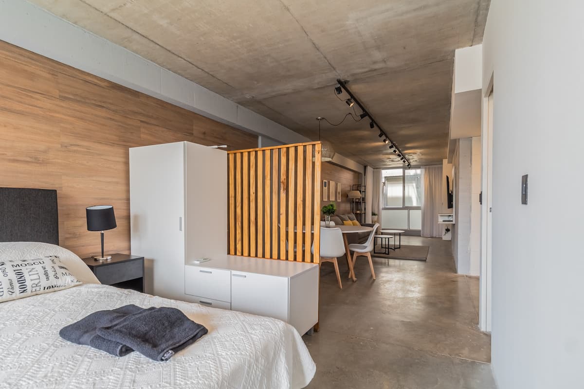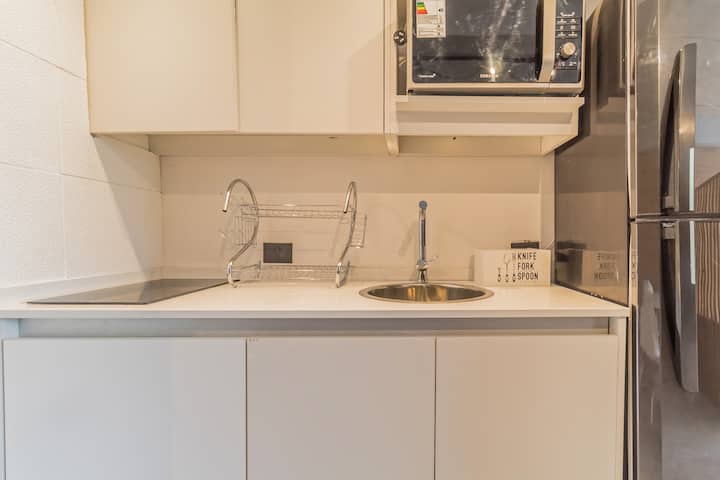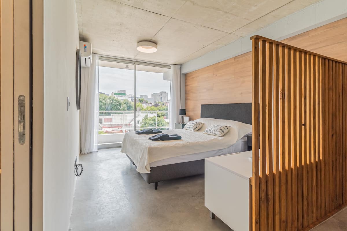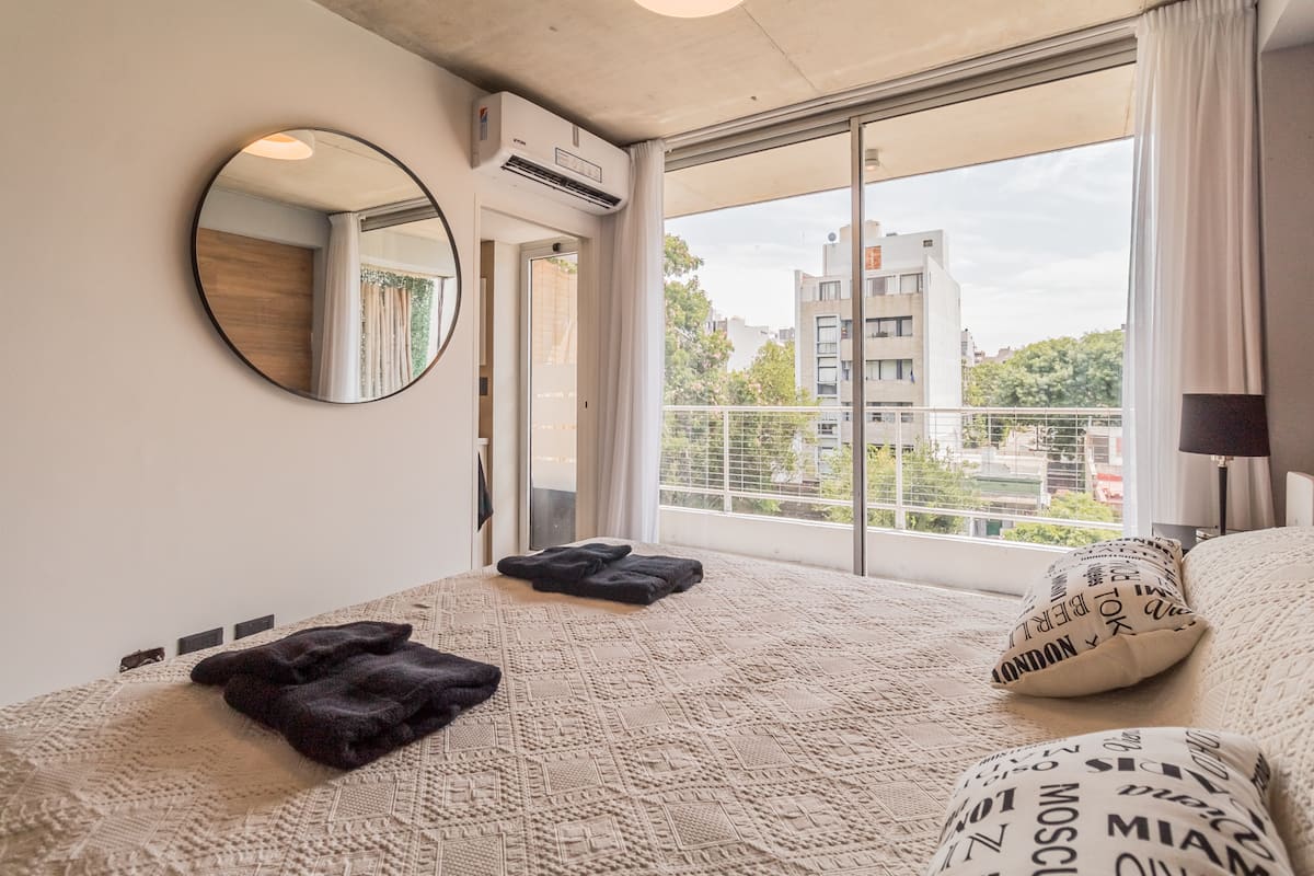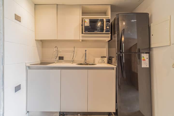 Квартира-студия в Saavedra рассчитана на 4 человека. В помещении есть двуспальная кровать (queen) и диван-кровать для 2 человек, полноразмерная кухня и обеденный стол в гостиной. Имеется Smart TV, два санузла (один полный), большая терраса и окна на улицу. Подключён высокоскоростной интернет по оптоволокну; вход в квартиру осуществляется по бесключевому доступу.