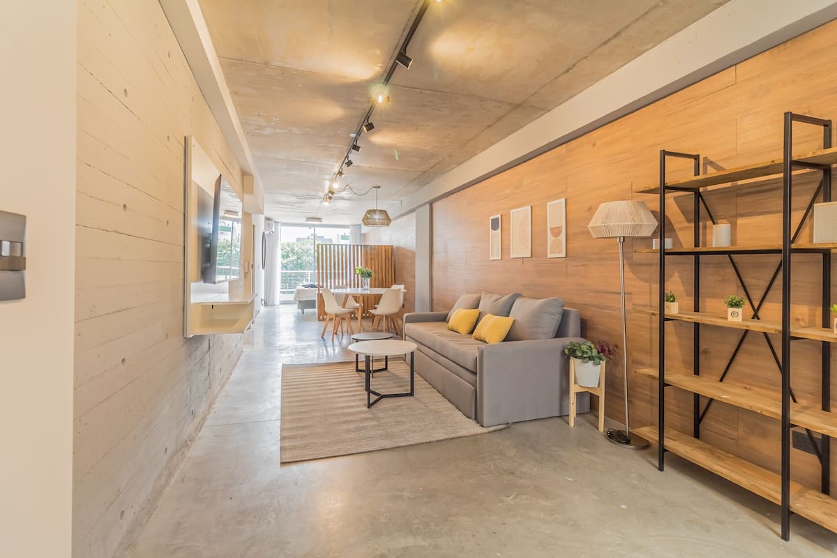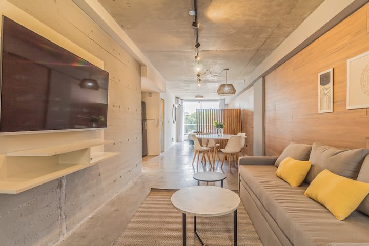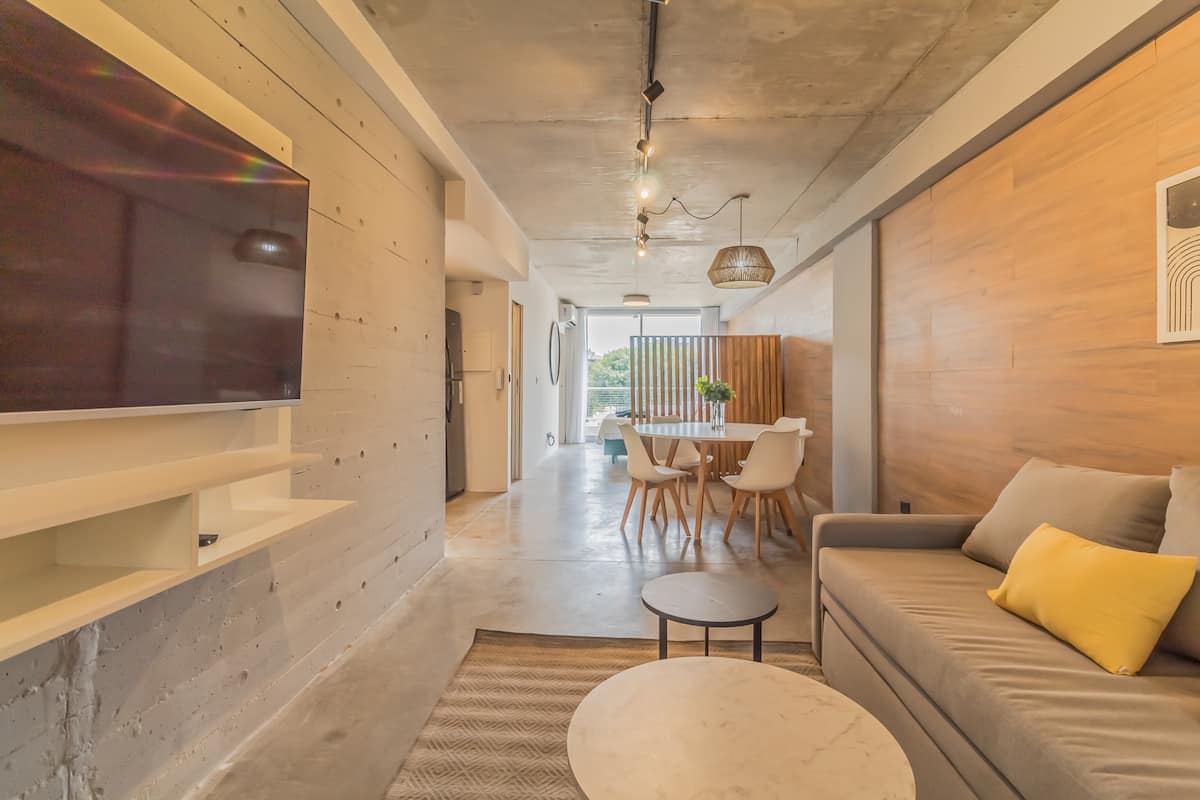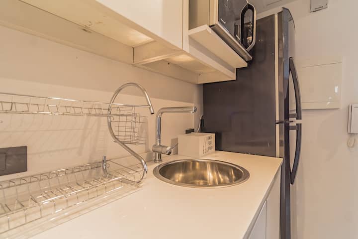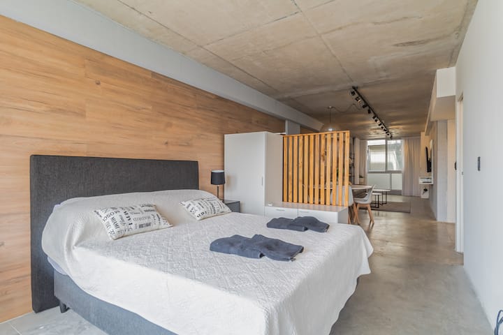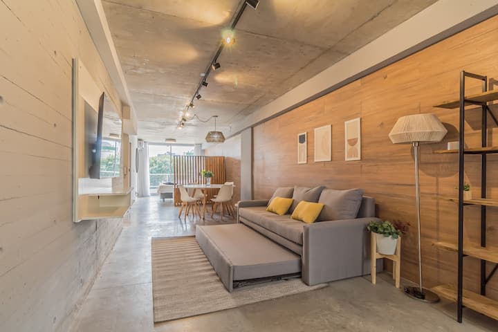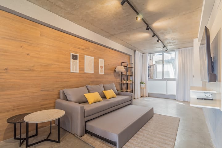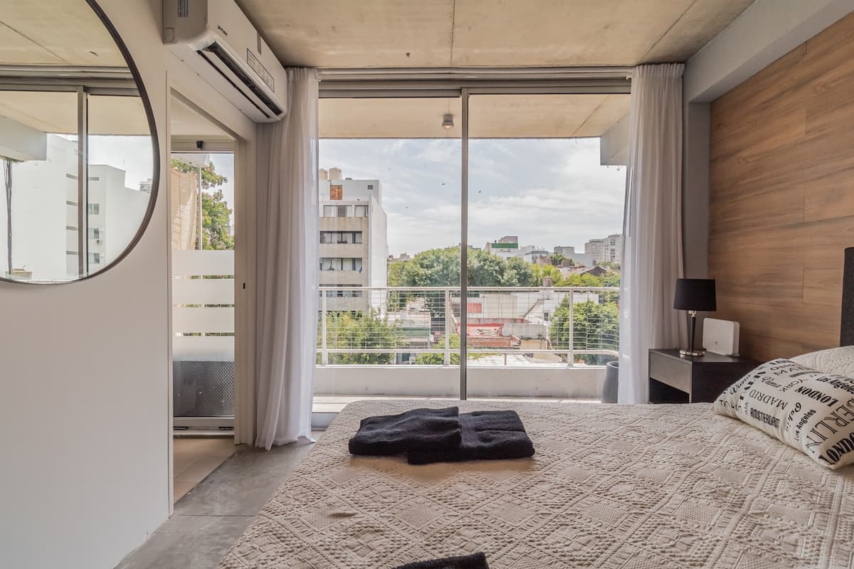 Квартира-студия в Saavedra рассчитана на 4 человека. В помещении есть двуспальная кровать (queen) и диван-кровать для 2 человек, полноразмерная кухня и обеденный стол в гостиной. Имеется Smart TV, два санузла (один полный), большая терраса и окна на улицу. Подключён высокоскоростной интернет по оптоволокну; вход в квартиру осуществляется по бесключевому доступу.