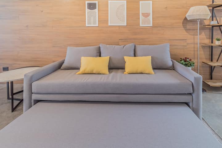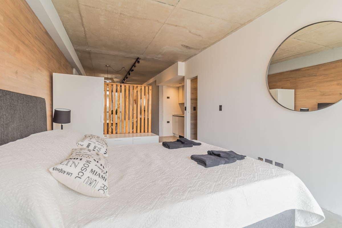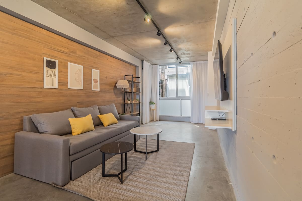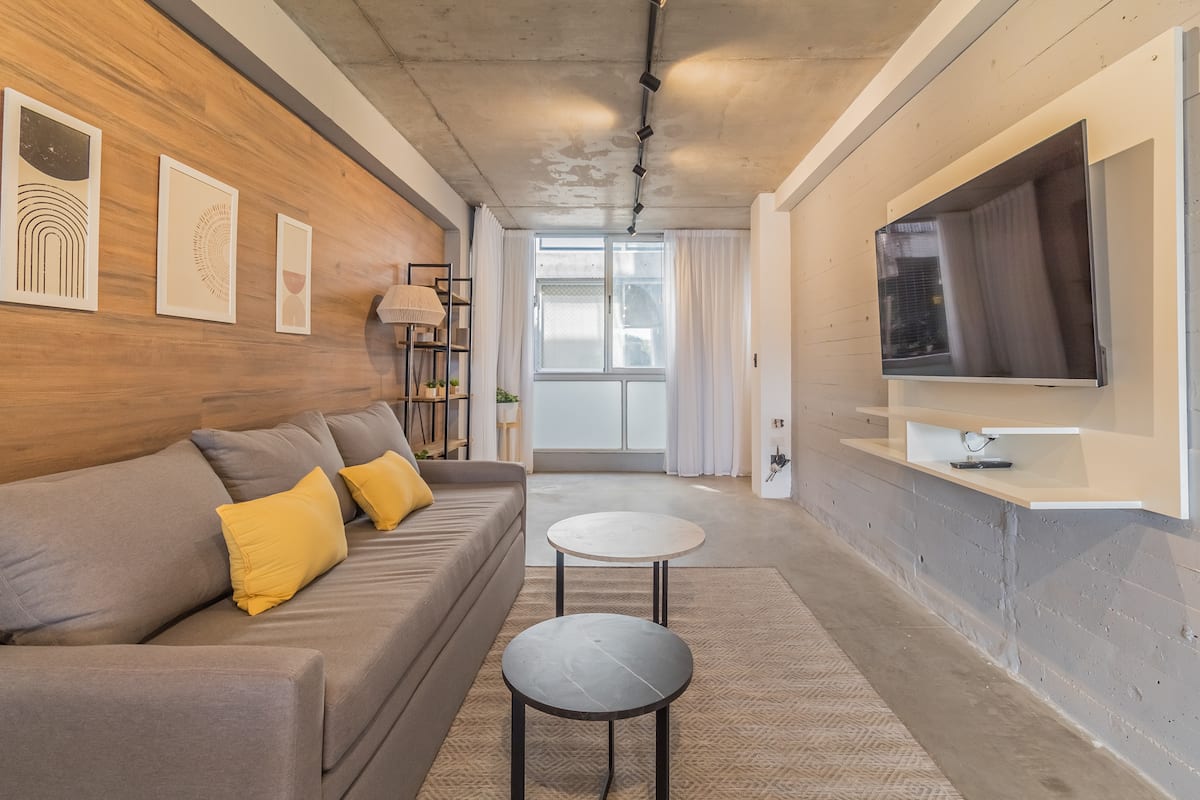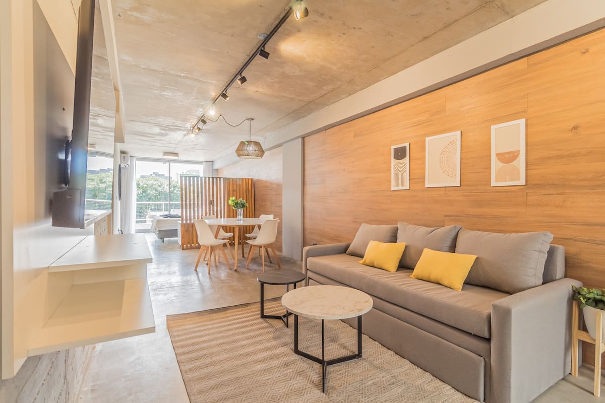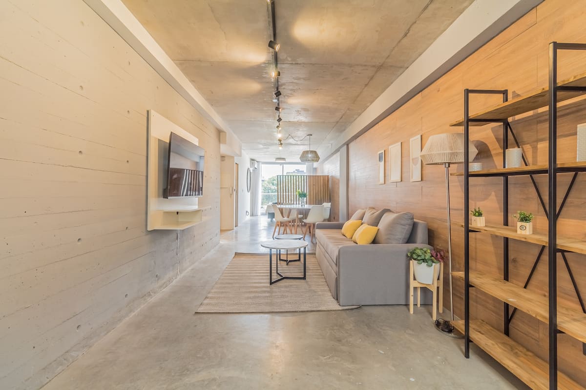 Квартира-студия в Saavedra рассчитана на 4 человека. В помещении есть двуспальная кровать (queen) и диван-кровать для 2 человек, полноразмерная кухня и обеденный стол в гостиной. Имеется Smart TV, два санузла (один полный), большая терраса и окна на улицу. Подключён высокоскоростной интернет по оптоволокну; вход в квартиру осуществляется по бесключевому доступу.