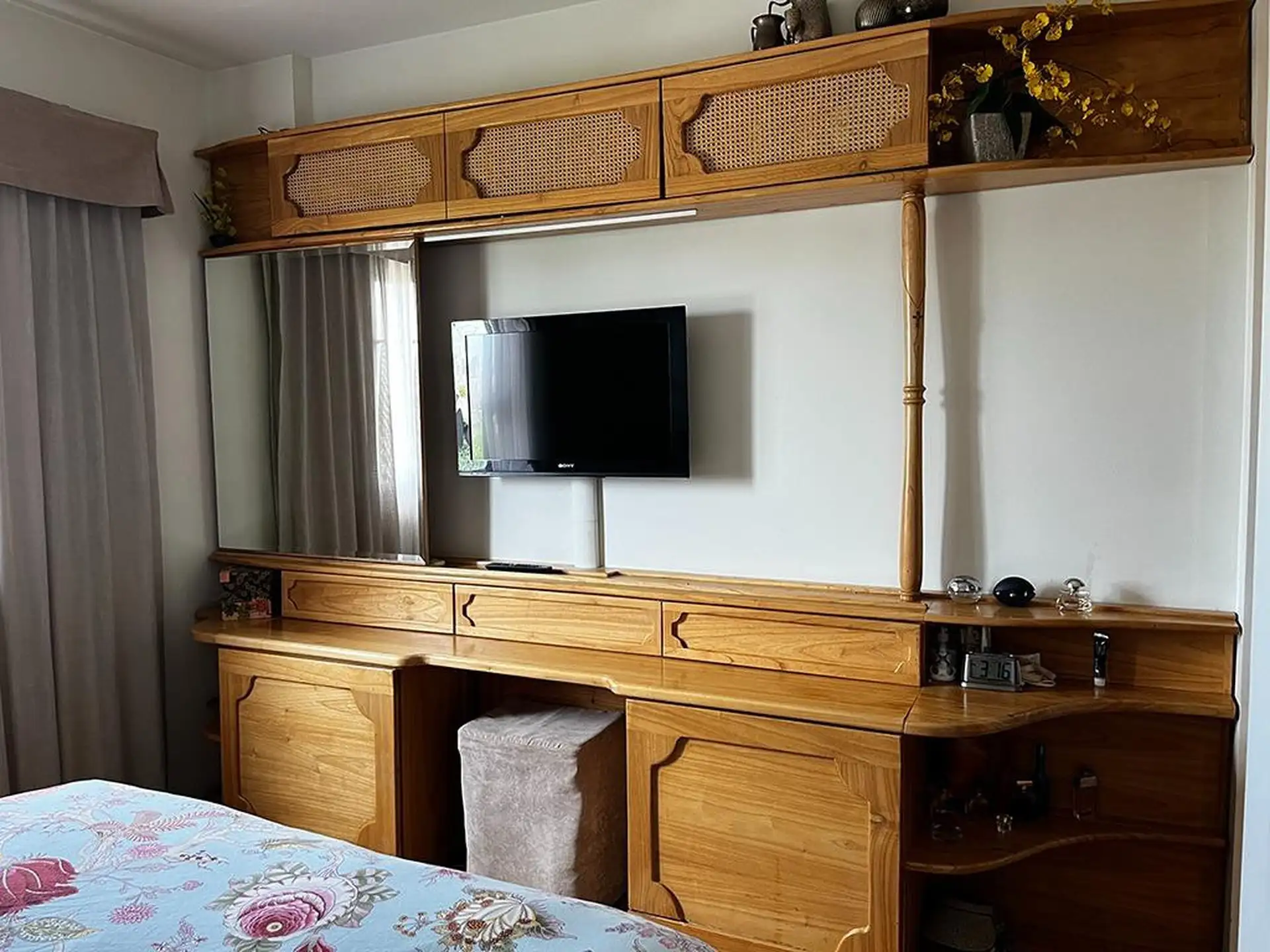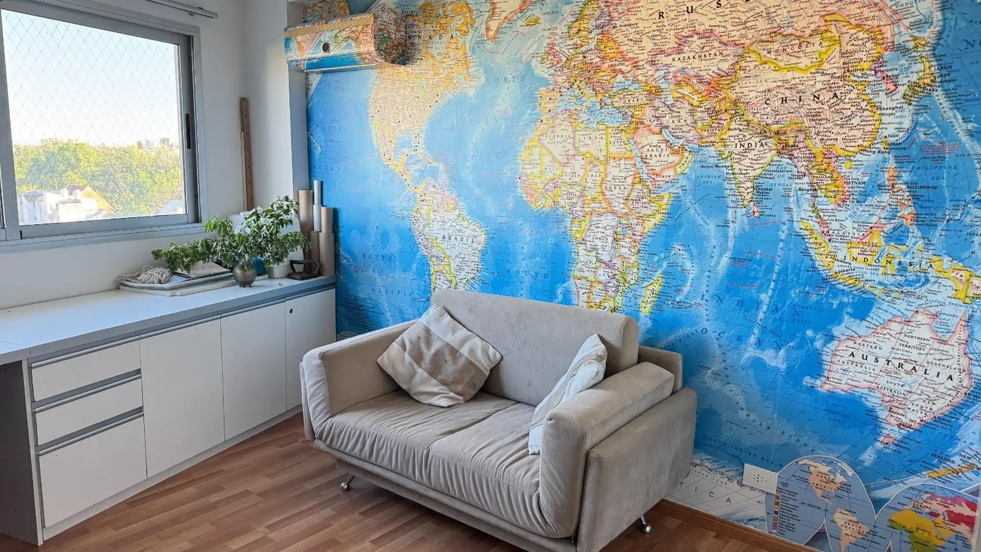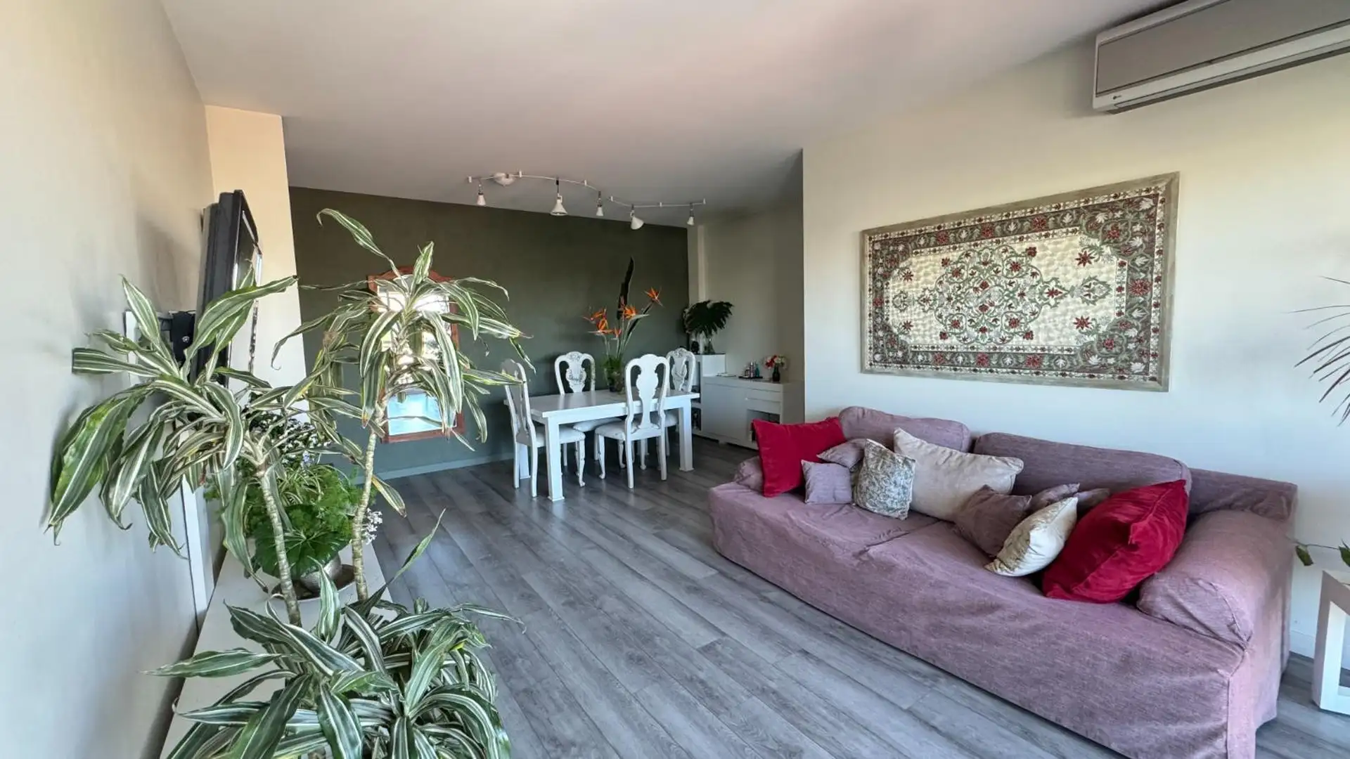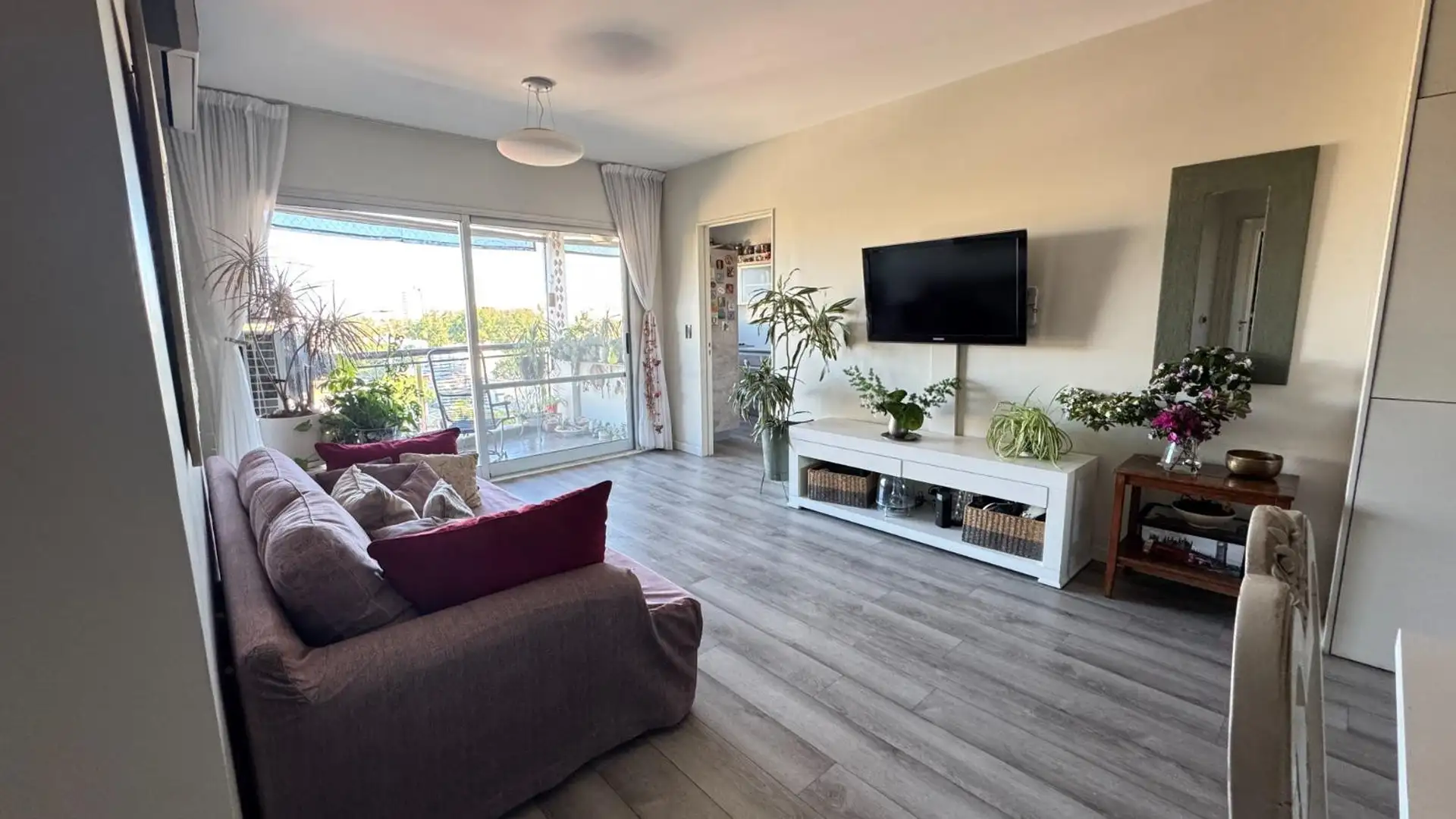Квартира в аренду на время в комплексе Tronador в Saavedra: 3 комнаты, 86 m² крытых, 2 ванных комнаты. Окна с ориентацией юг/восток, балкон с открытым видом; мебель и техника включены. В квартире установлены цифровой замок и москитные сетки на всех окнах, кондиционер в каждой комнате, есть Wi‑Fi. Спальни: в главной кровать Queen, во второй комнате/кабинете двуспальный диван-кровать, рабочий стол и шкаф. Кухня полностью оборудована: холодильник, электрическая духовка и газовые конфорки, стиральна