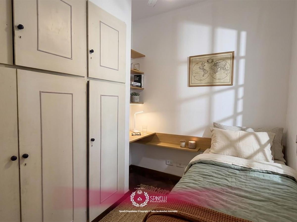 Квартира из 3 комнат площадью 60 m² на первом этаже, вход через лестницу, ориентирована на север. Окна выходят на улицу, предусмотрена сквозная вентиляция; основные комнаты имеют прямой выход во внешнее пространство. В квартире указаны отдельная кухня и зона под мойку/прачечную (lavadero). Дом расположен между соседними участками; фасад сохранён.