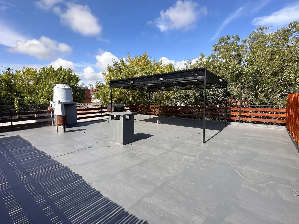 Квартира PH с отдельным входом, 3 комнаты, в San Isidro. Жилая площадь не указана; построена на участке 225 m², общая территория только с одной отдельной единицей. После ремонта, с большой собственной террасой и (закреплённым) парковочным местом у входа. В квартире гостиная-столовая и кухня объединены, окна в помещении, кухонная барная стойка. Кухня с вытяжкой, нижними шкафами и навесными секциями; предусмотрено место для холодильника, подключение к стиральной машине, горячая вода от бойлера (ca