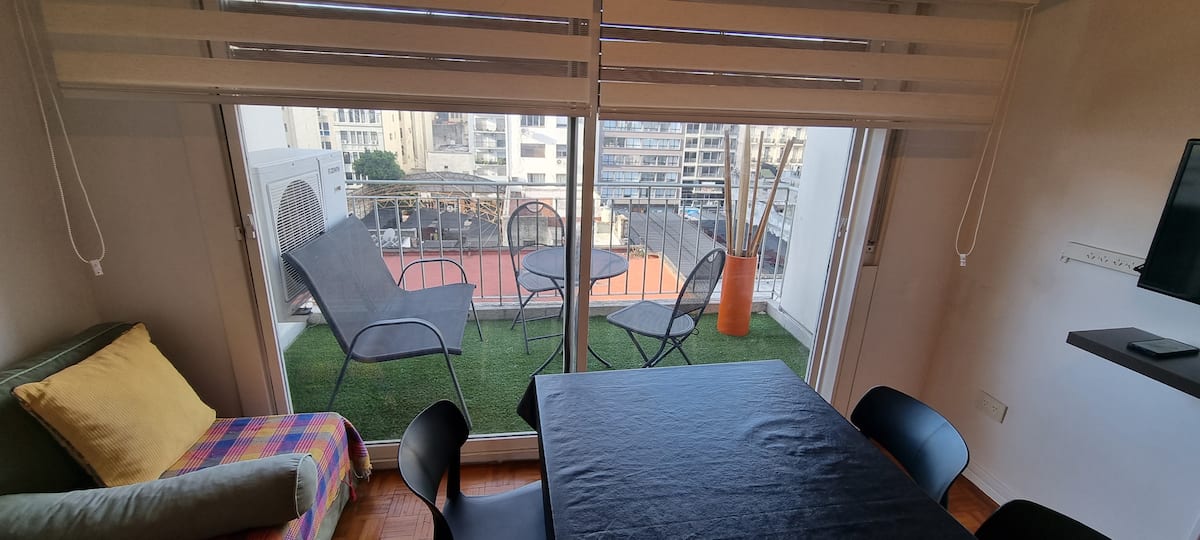 Квартира в San Nicolás: 350 м от Av. Corrientes и 750 м от Obelisco. В спальне установлена двуспальная кровать, во второй комнате размещены две односпальные кровати. В квартире гостиная-столовая, балкон с креслами, отдельная кухня и ванная полностью оборудованы. Предусмотрено (платное) парковочное место в здании; минимальный срок аренды — 2 ночи.
