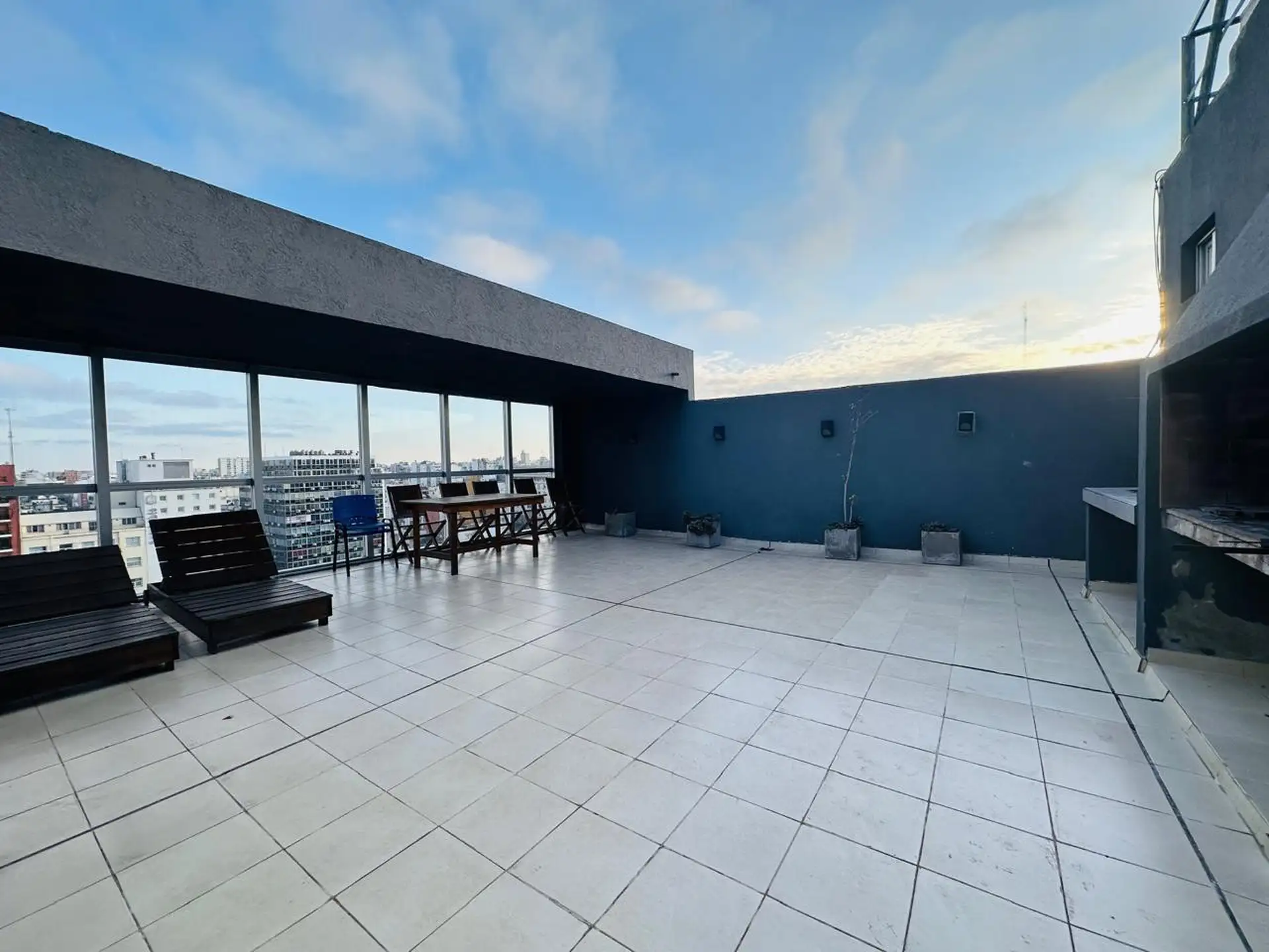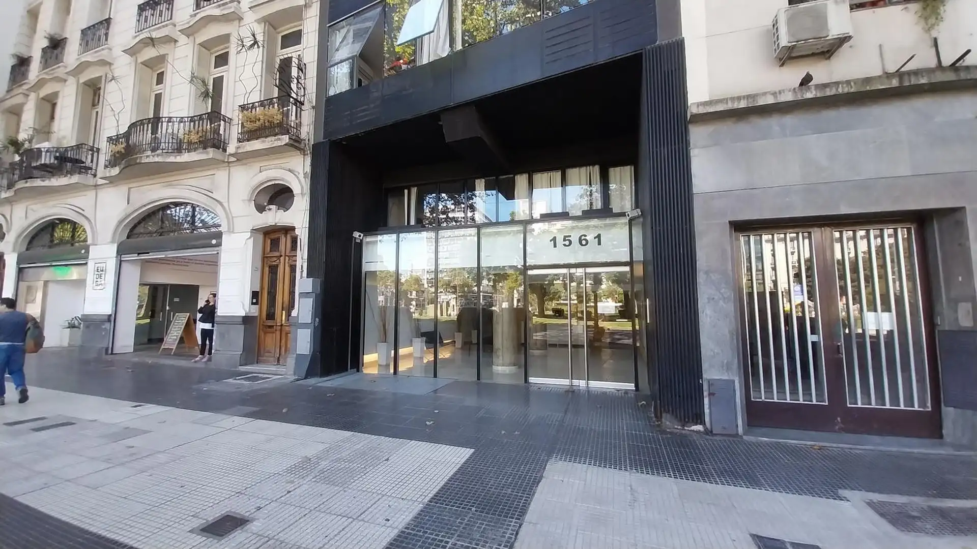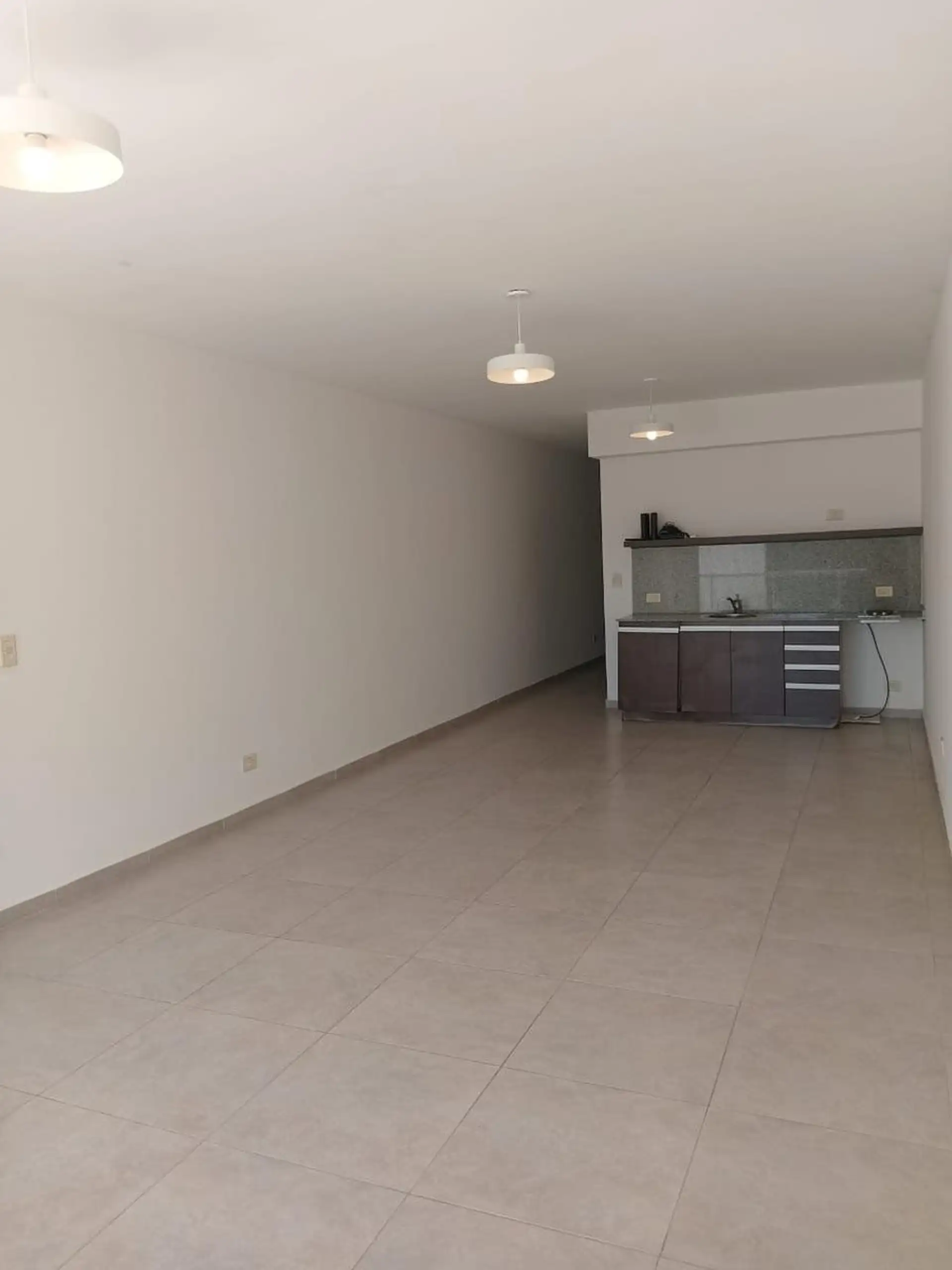 Квартира-студия площадью в описании не указана, с окнами на север. В гостиной есть кафельный пол белого цвета и большое окно с выходом на балкон. Кухня в американском стиле: гранитная столешница серого цвета, нижние тумбы с навесными секциями и электрическая варочная панель на 2 конфорки. Полная ванная комната с умывальником и ванной, установлен кондиционер холод/тепло (сплит). Коммунальные платежи здания включают AYSA. В здании несколько лет назад отделка, есть общая терраса с зоной гриля и общ