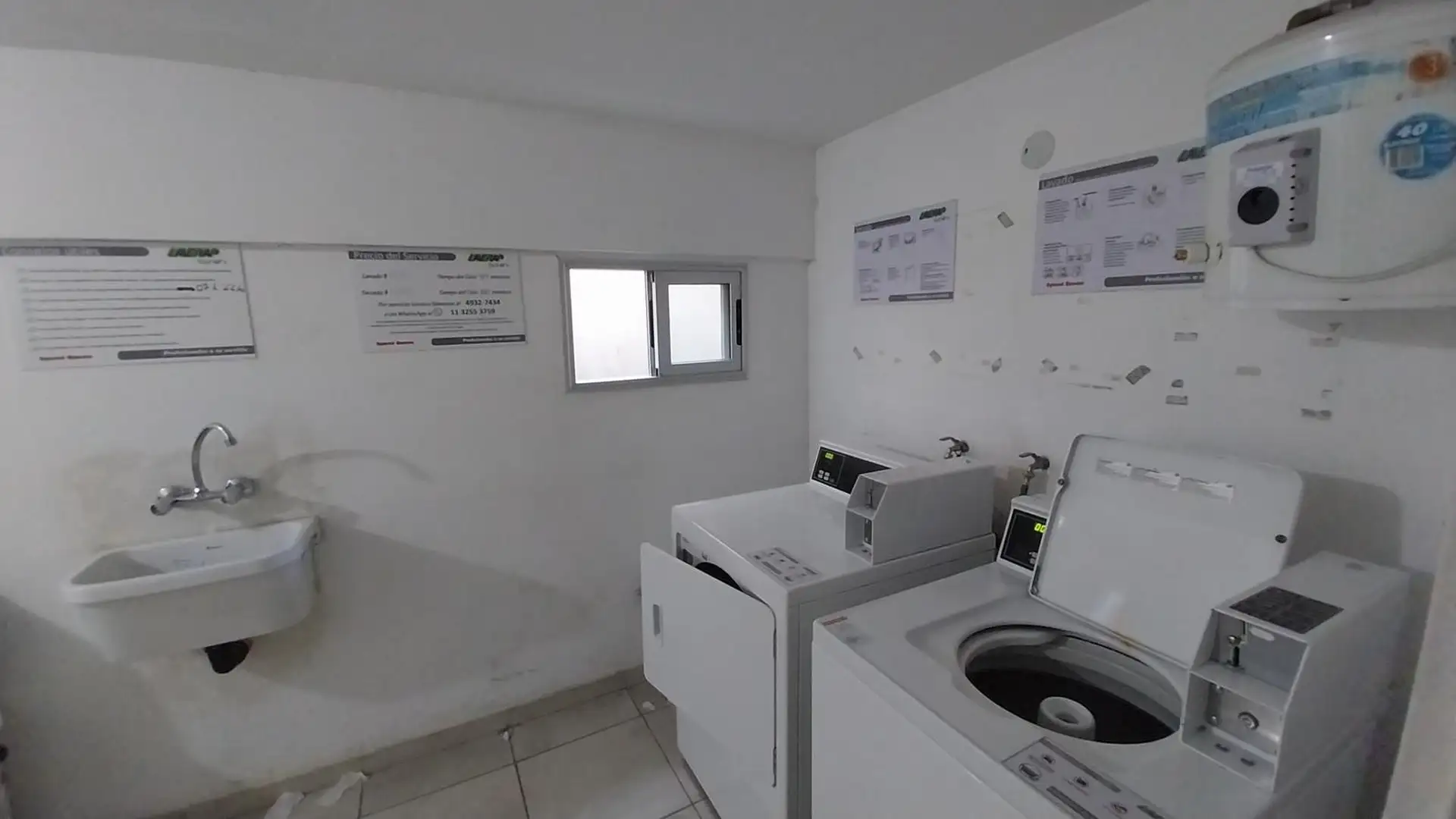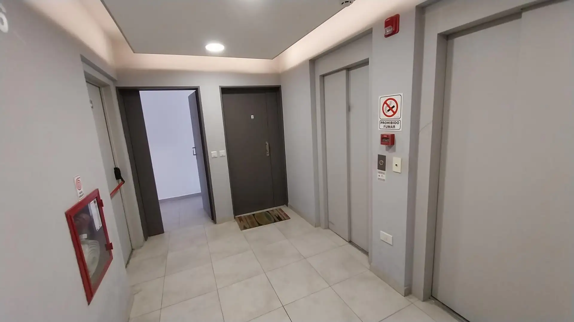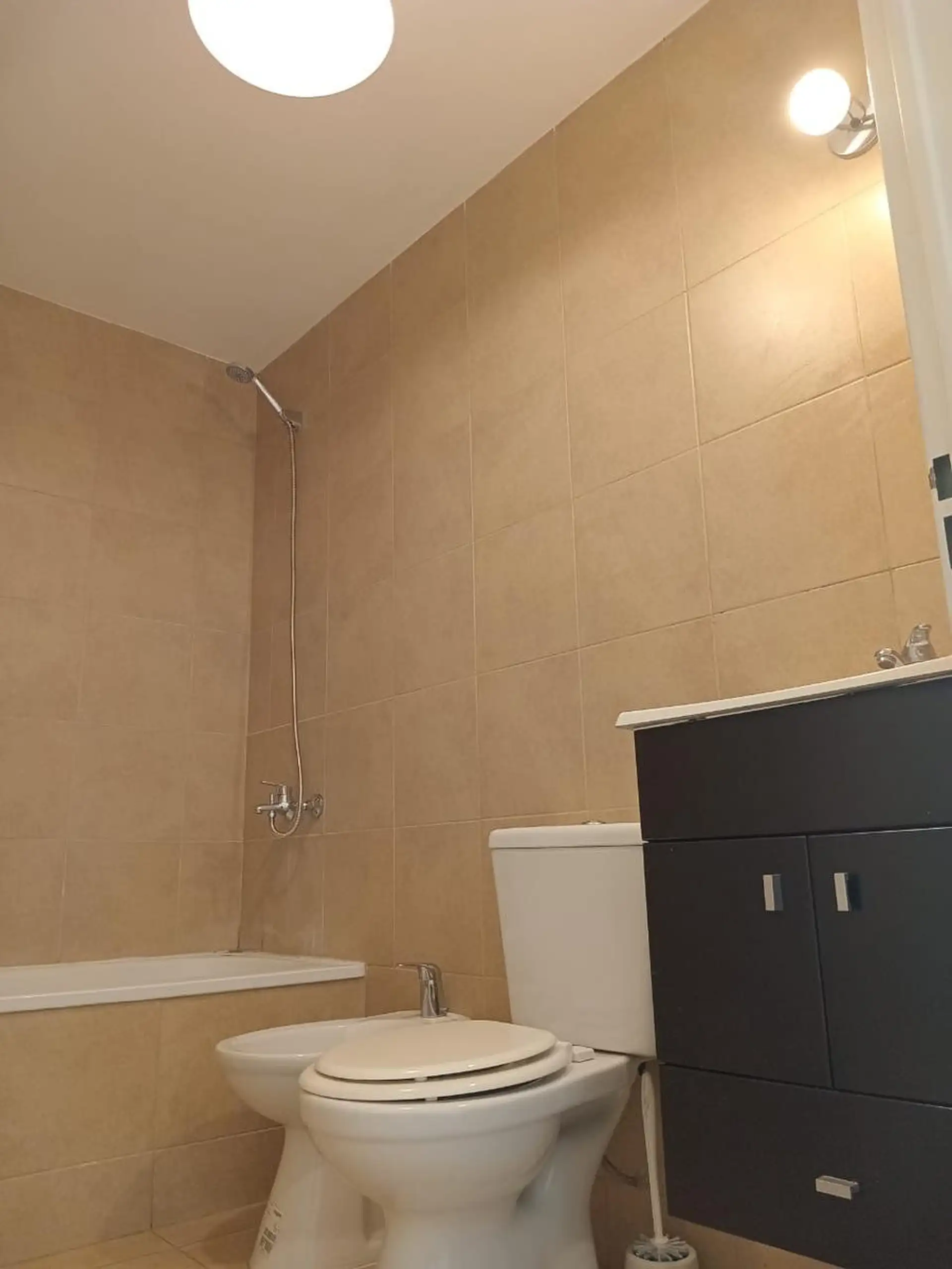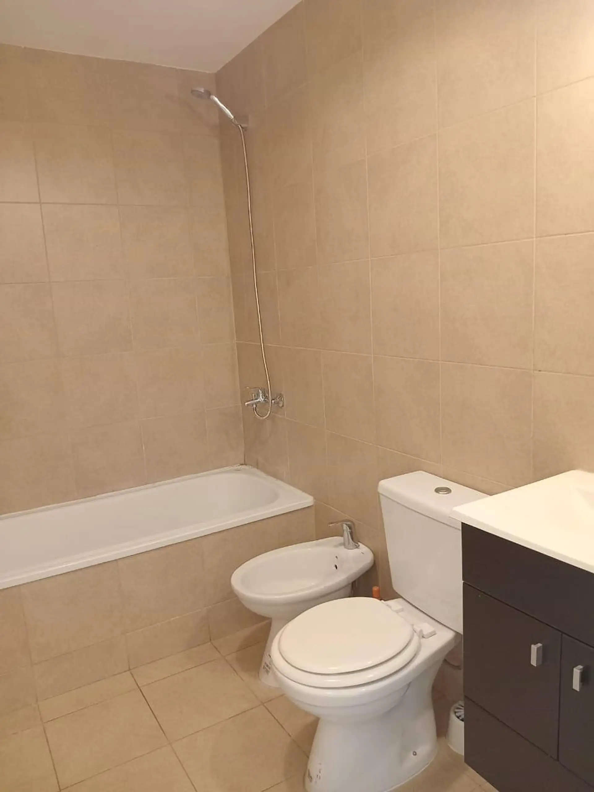 Квартира-студия площадью в описании не указана, с окнами на север. В гостиной есть кафельный пол белого цвета и большое окно с выходом на балкон. Кухня в американском стиле: гранитная столешница серого цвета, нижние тумбы с навесными секциями и электрическая варочная панель на 2 конфорки. Полная ванная комната с умывальником и ванной, установлен кондиционер холод/тепло (сплит). Коммунальные платежи здания включают AYSA. В здании несколько лет назад отделка, есть общая терраса с зоной гриля и общ