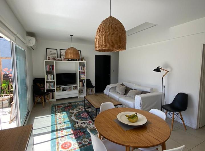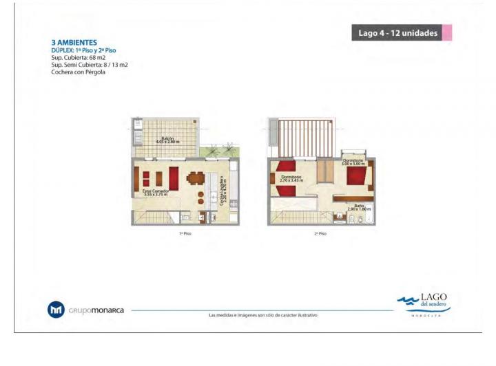 Двухуровневая квартира (3 комнаты) в Lago del Sendero, Sendero, Nordelta. На верхнем уровне расположены 2 спальни и 1 ванная комната. На нижнем уровне: просторная гостиная-столовая, полностью оборудованная кухня, закрытая прачечная, туалет и терраса-балкон с зоной гриля. В каждой комнате установлены кондиционеры холод/тепло. Есть (частное) парковочное место с навесом-пергола. В Sendero предусмотрены водное зеркало 6.000 m² для водных видов спорта, пляжная зона, аэробная дорожка, смотровые площад