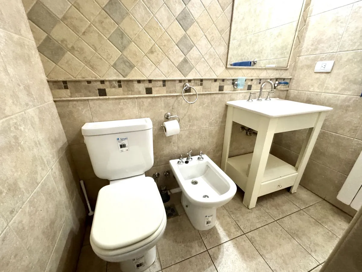 Квартира в аренду в Sáenz Peña, Tres de Febrero. В ней 2 спальни, гостиная-столовая с кондиционером и отоплением, выход на балкон, кухня с верхними и нижними модулями, предусмотрено подключение для стиральной машины и указан кухонный прибор. Ванная с тумбой (ванитори) и зеркалом; в спальнях встроенные шкафы с внутренним наполнением, полы с имитацией дерева. Коммунальные платежи указаны ориентировочно и могут изменяться; площади приблизительные. Аренда: $850.000 + коммунальные платежи + услуги +