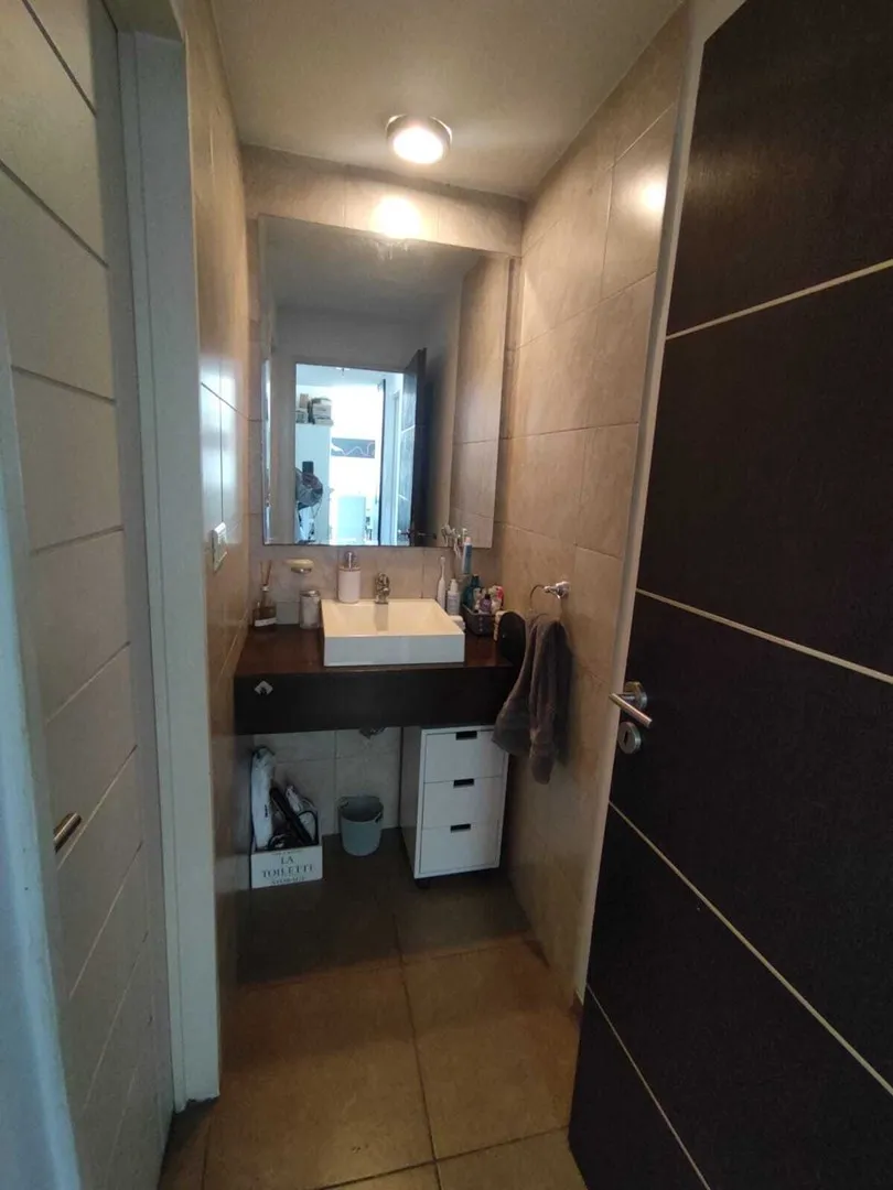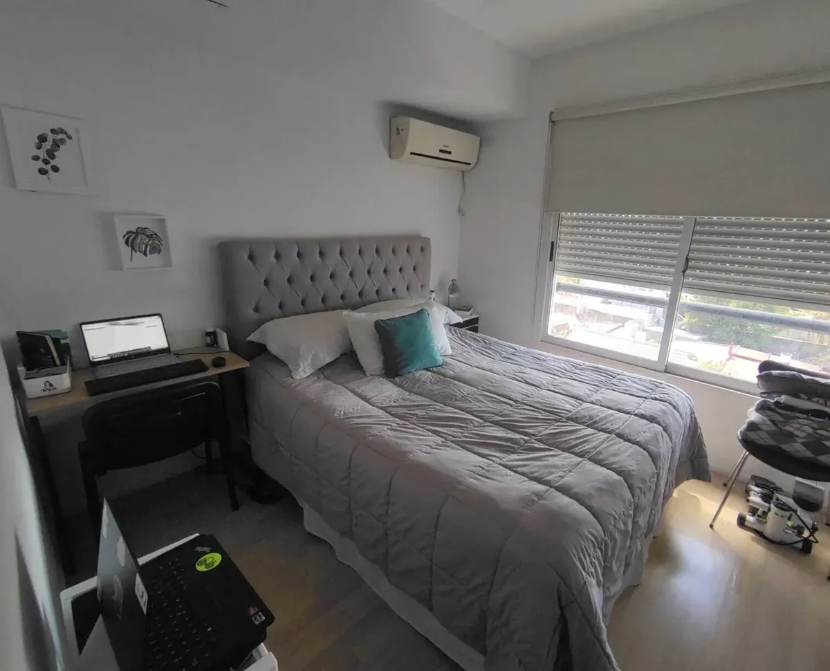 Квартира в Tres de Febrero (Caseros) площадью в формате «tres ambientes» с 2 спальнями и кладовой, с (закреплённым) парковочным местом. В планировке: гостиная-столовая, кухня с подключением для стиральной машины, бойлером и газовой плитой, гостевой туалет, две спальни со встроенными шкафами, основная ванная с ванной и отдельная зона ante baño с умывальником. В квартире установлены кондиционеры, освещение и электрооборудование. На террасе здания предусмотрена зона гриля. Коммунальные платежи здан