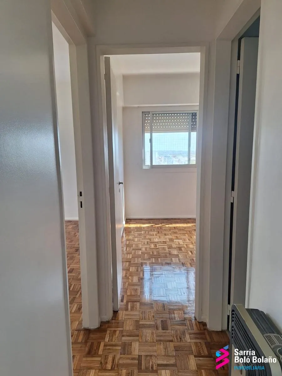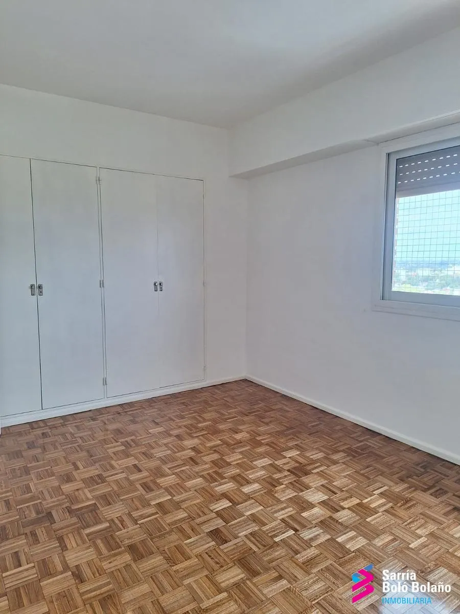 Квартира в Vicente López в 3 ambientes на 19-м этаже, окна на улицу. Площадь не указана. В квартире есть просторная гостиная-столовая с кондиционером и отоплением на estufa, основная спальня и вторая спальня с встроенными шкафами, полностью оборудованная ванная. Кухня-столовая, отдельная прачечная (lavadero independiente). Паркетные полы, ванная, кухня и прачечная после ремонта; на окнах предусмотрены меры безопасности для детей. Коммунальные платежи здания заявлены как очень низкие.