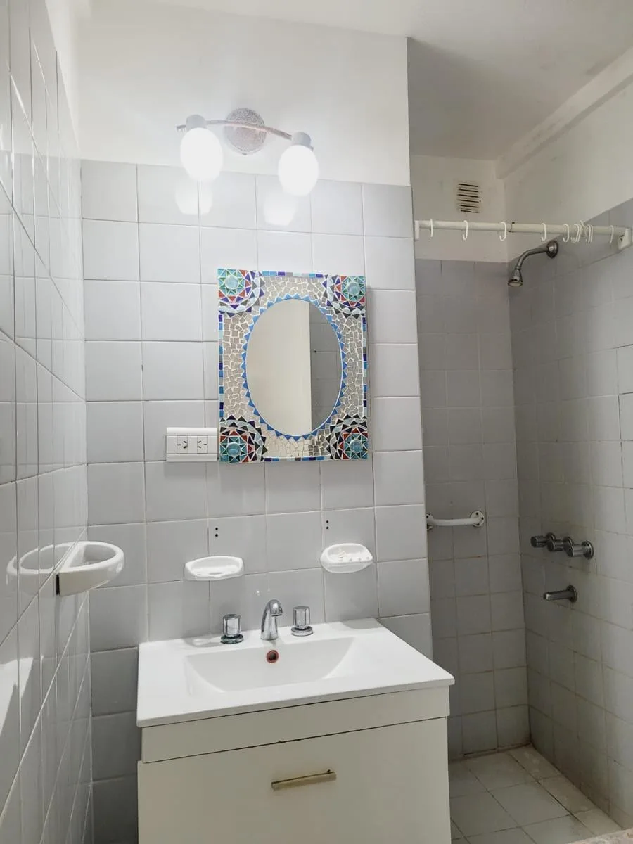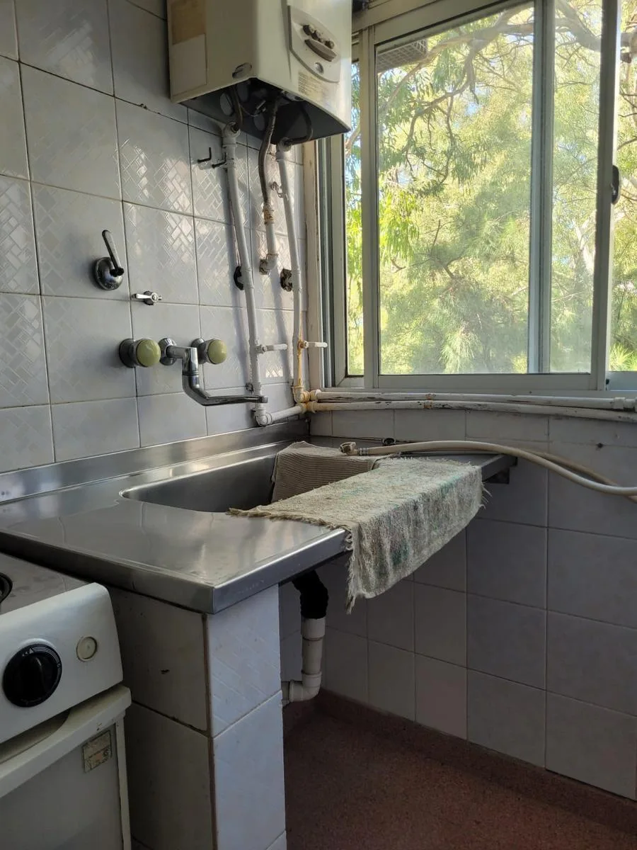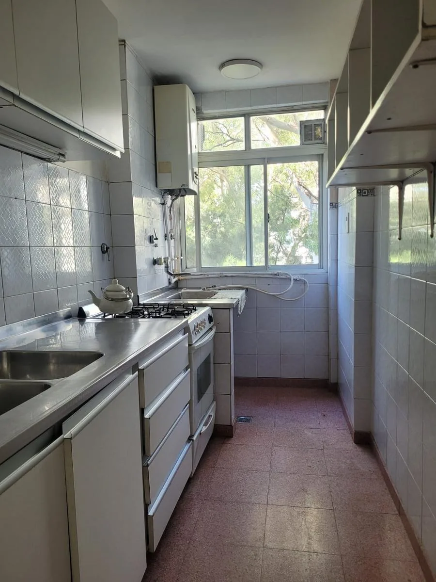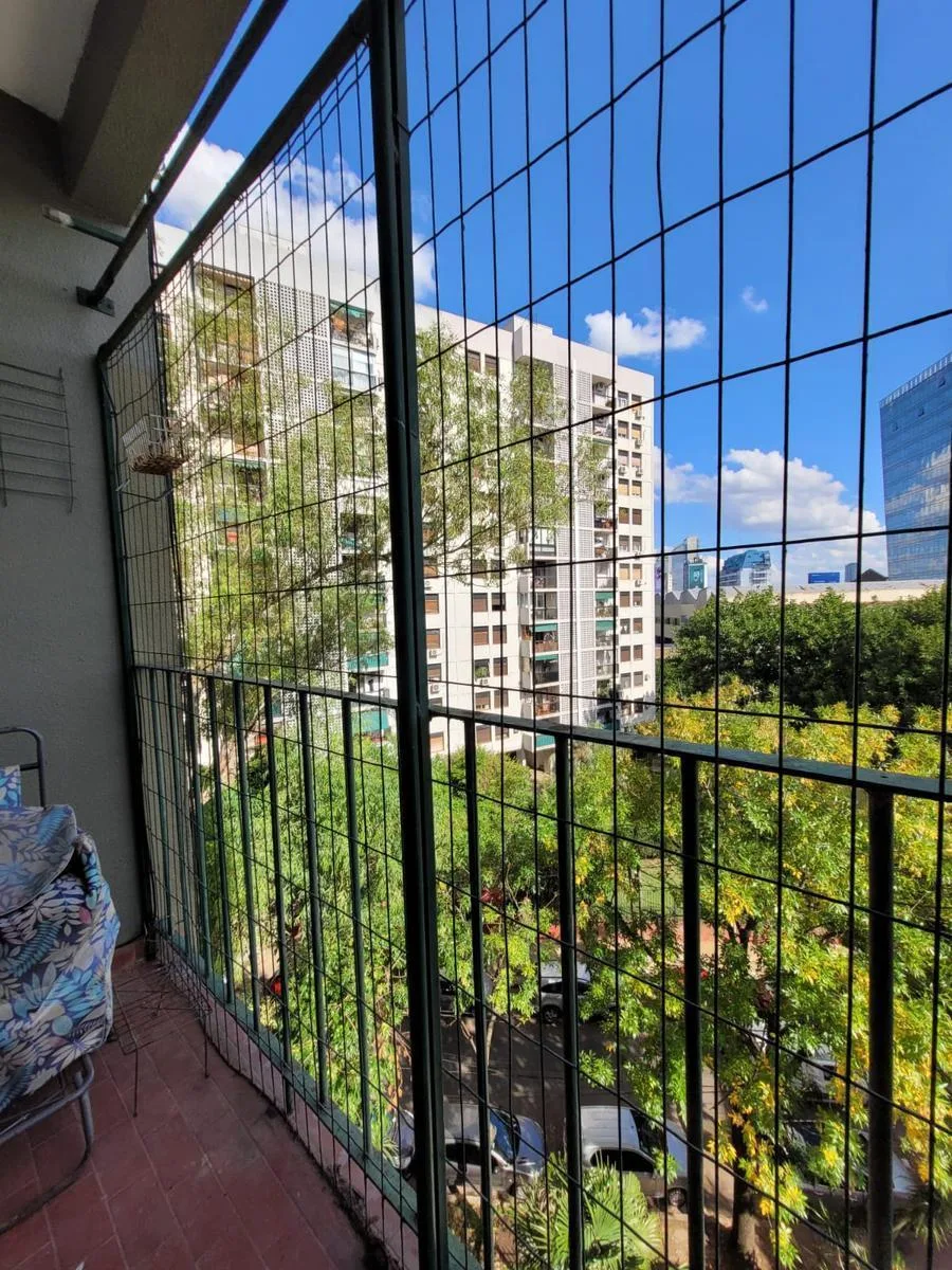 Квартира с 3 комнатами площадью, 5-й этаж в Vicente López, окна выходят на зелёную зону квартала. В ней гостиная-столовая с выходом на балкон, 1 ванная с душем, 2 спальни с встроенным шкафом и гардеробом, отдельная кухня с интегрированным хозяйственным помещением. Отопление и горячая вода обеспечиваются индивидуальными приборами (calefón, TB) и установлен 1 сплит «холод-горячее»; отделка в стиле «под старину». В здании комплекс из 5 башен на участке с садами и деревьями, 12 этажей, по 4 квартиры