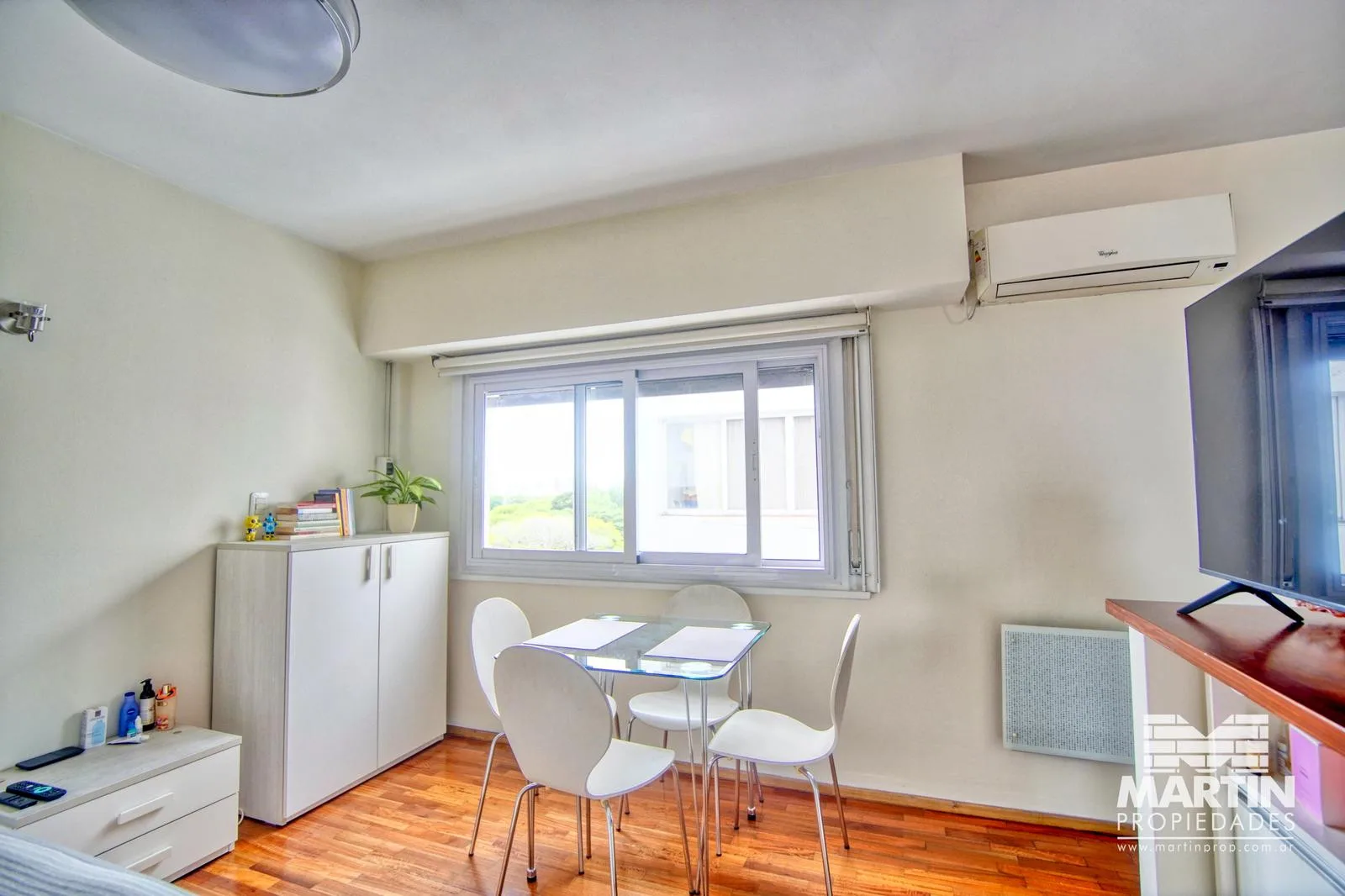 Квартира-студия площадью 25 m², окна на улицу, с видом на территорию президентской резиденции. В хорошем состоянии, кухня с барной стойкой, отдельная ванная комната и доступ к общей террасе. Коммунальные платежи здания указаны как низкие; на апрель 2026 года предусмотрена индексация раз в квартал по IPC. Показ с 01/05/2026.