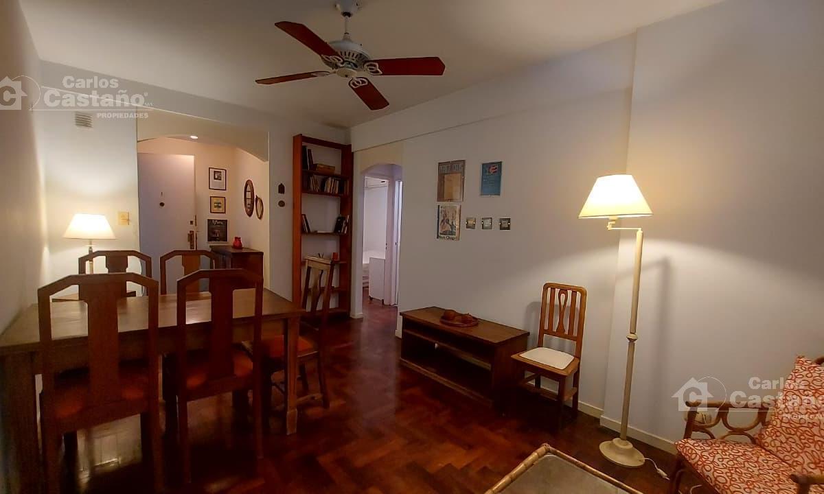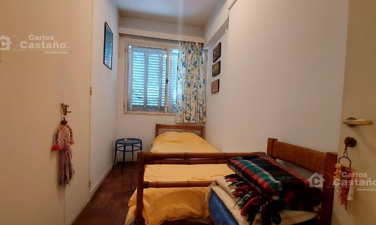 Квартира в Olivos, 3 комнаты, 39 m² крытых, 4-й этаж, окна на улицу. Жилая зона площадью 3x5 m включает гостиную-столовую с потолочным вентилятором. Кухня с полной мебелью 1,8x1,4 m, паркетные полы и окна во всех помещениях, установлены москитные сетки. В квартире 2 спальни с встроенными шкафами: главная 2,8x3 m с отоплением через двухконтурный камин с отводом и кондиционером холод/тепло; вторая 1,5x3 m (или кабинет) с потолочным вентилятором. Ванная после ремонта 1,4x1,5 m с душем. Есть закрепл