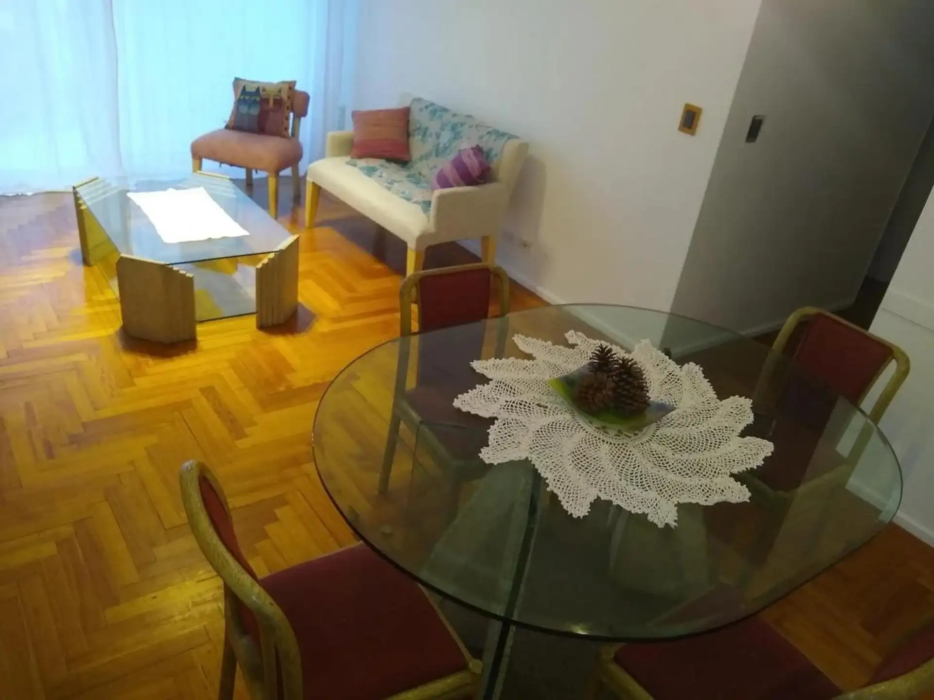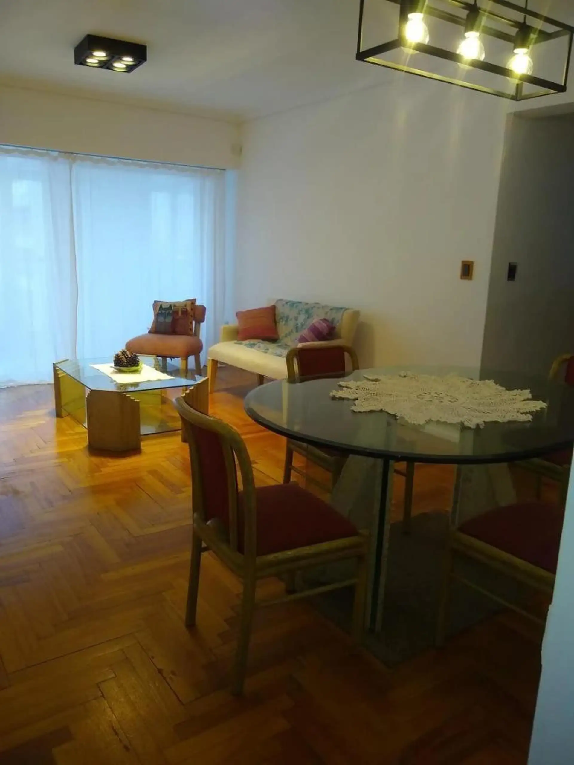 Трёхкомнатная квартира (3 ambientes) площадью и этаж в описании не указаны, окна во двор (contrafrente) и есть балкон с сплошным остеклением (balcón corrido). Отдельная кухня, независимая прачечная (lavadero independiente). Паркетный пол, ванная комната с ванной. В объявлении указано, что жильё расположено рядом с Subte B: станция Malabia, в 1 квартале от Av. Scalabrini Ortiz и в 5 кварталах от Parque Centenario, а также в 7 кварталах от Av. Córdoba.