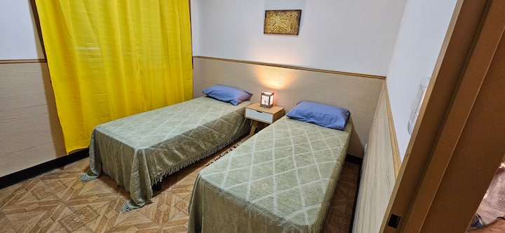 Квартира в Villa Crespo, две спальни, рассчитана на размещение до 4 человек. На первом этаже дома на тихой улице, без необходимости пользоваться лифтом или лестницей. В квартире есть небольшая гостиная, оборудованная кухня и обеденная зона, патио с раковиной для стирки и местом для сушки белья. Одна спальня с кроватью queen size, вторая — с двумя односпальными кроватями. В 1 квартале от Av. Corrientes и Thames; до станции метро Malabia (линия B) — 4 квартала. До Movistar Arena — 4 квартала, до P
