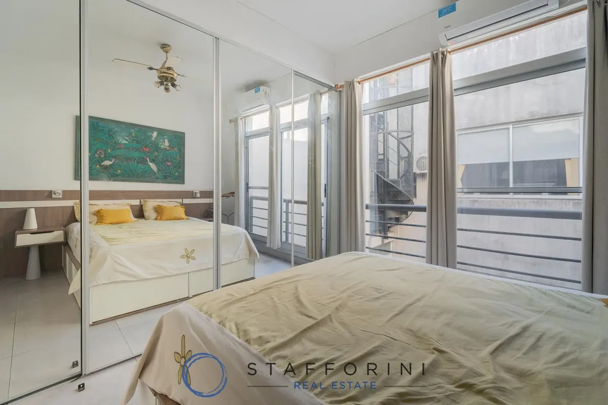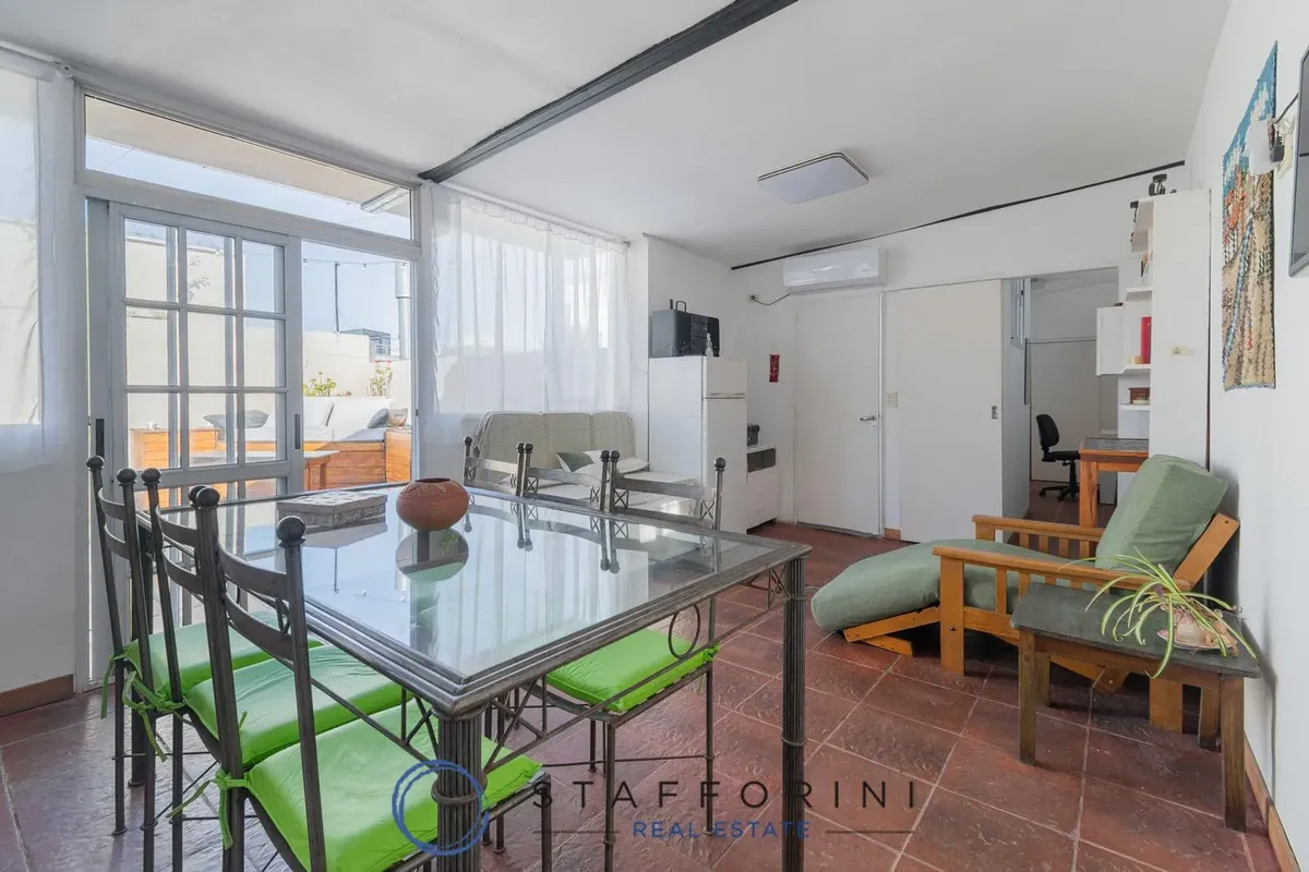 Меблированная квартира-дуплекс в Villa Crespo с террасой. Минимальный срок аренды 3 месяца и максимальный 24 месяца; возможна аренда на длительный срок. Квартира полностью меблирована, включая постельное бельё и полотенца на 4 человека. Две планировки: на первом этаже гостиная-столовая с электрической кухней и обеденной зоной, место под прачечную, полный санузел и главная спальня с кондиционером и шкафом. На втором этаже зона гостиной-столовой с кухней и закрытой зоной гриля, холодильник, сануз