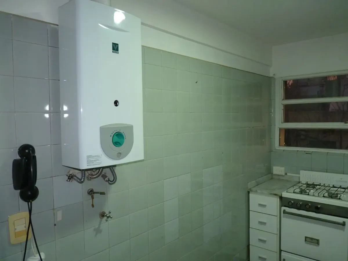 Квартира на аренду, 3 помещения: гостиная-столовая с выходом на балкон. Кухня с большим окном на улицу. Две спальни с встроенными шкафами, обе с окнами наружу, коридор-прихожая, полноценная ванная. Полы из паркета, установлен сплит-кондиционер и обогреватель с тягой, работающий от баланса. Коммунальные платежи здания указаны как последние expensas: ARS 228.000.