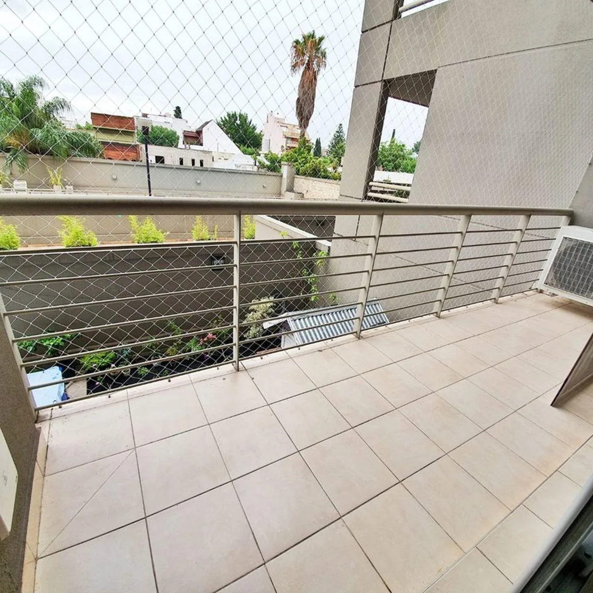 Квартира на 2 спальни в Villa Devoto, все помещения выходят наружу. Общая площадь не указана. В квартире гостиная-столовая с полами из керамогранита, кухня-столовая, 2 полноценных ванных комнаты и 2 спальни с встроенными шкафами. Балкон выходит во двор (окна на contrafrente), ориентирован на север, с видом на зону гриля и бассейн. В здании предусмотрены 2 общих гостиных для жильцов с зоной гриля, а также спортзал, комната отдыха, терраса (solárium) и бассейн; есть (закреплённое) парковочное мест