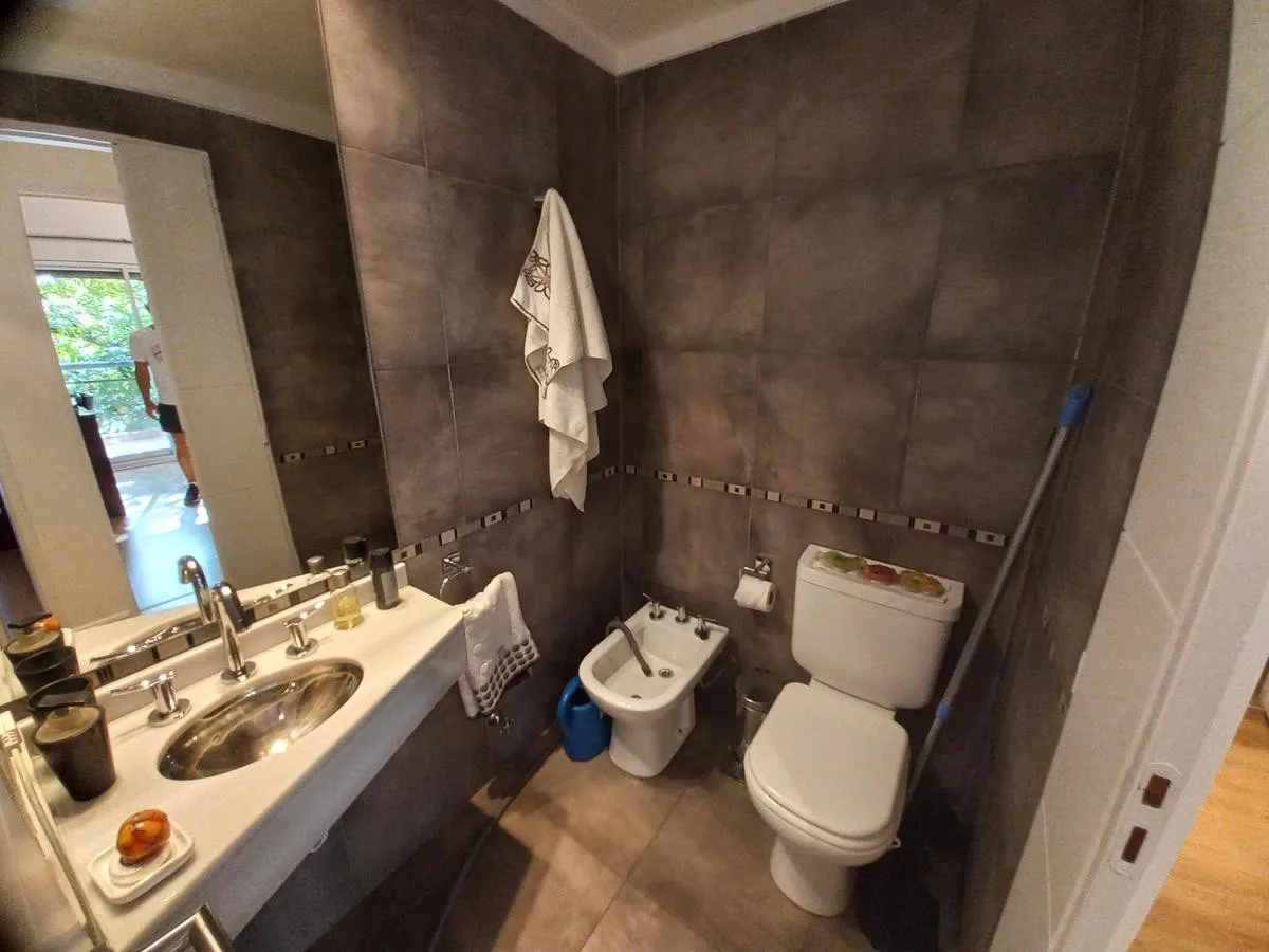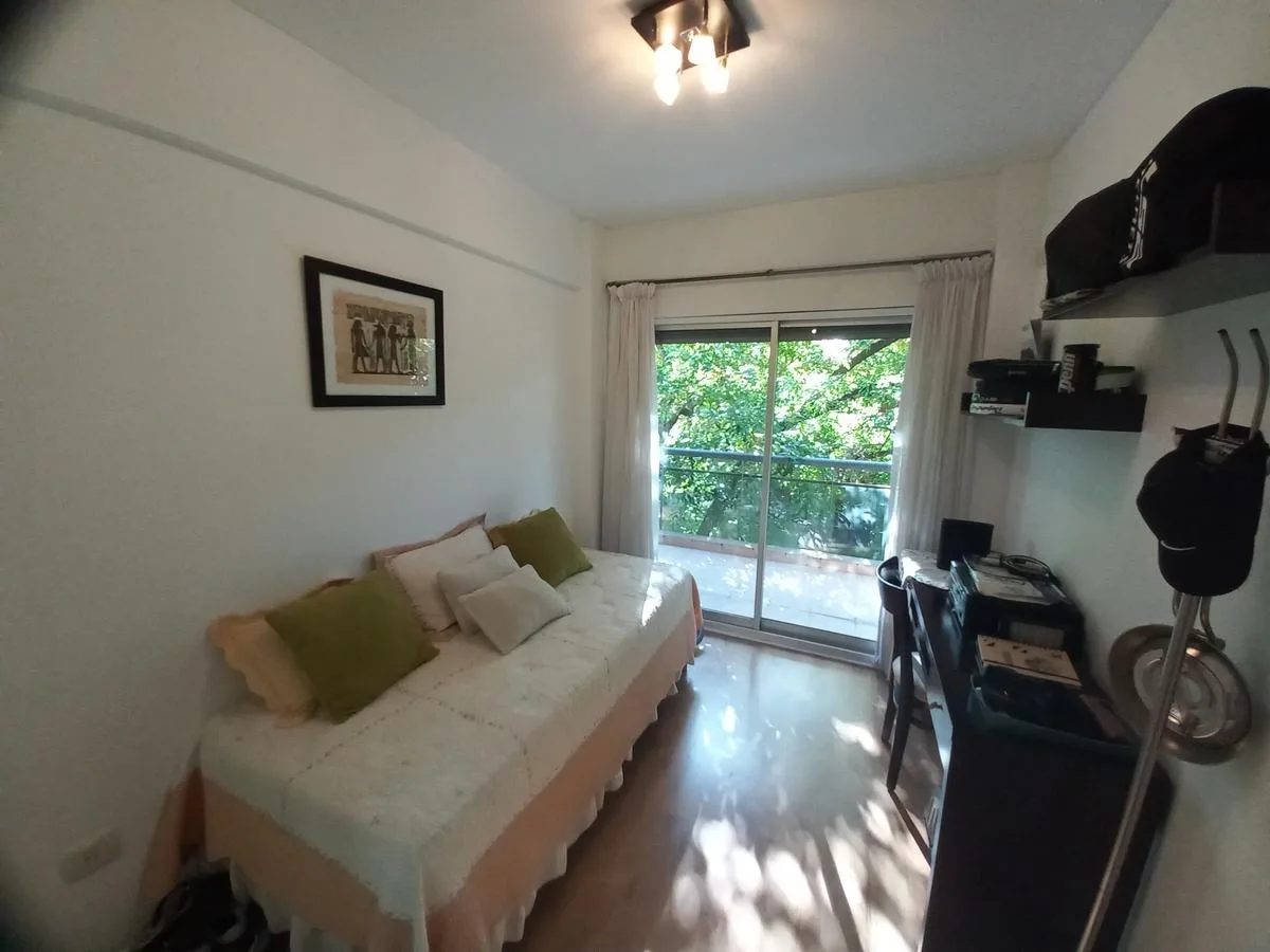 Квартира-студия (semipiso) с 3 комнатами и (закреплённым) парковочным местом в Buenos Aires, окна на улицу, полностью меблирована и оборудована. Есть гостиная-столовая с выходом на балкон с видом на уровень деревьев, кухня с двумя направлениями к холлу, 2 спальни с выходом на балкон; главная спальня с гардеробной и ванной комнатой, второй санузел включает зону для стиральной машины, которую можно переоборудовать под душ. Установлены 2 кондиционера (в гостиной и в главной спальне), тёплый пол и и