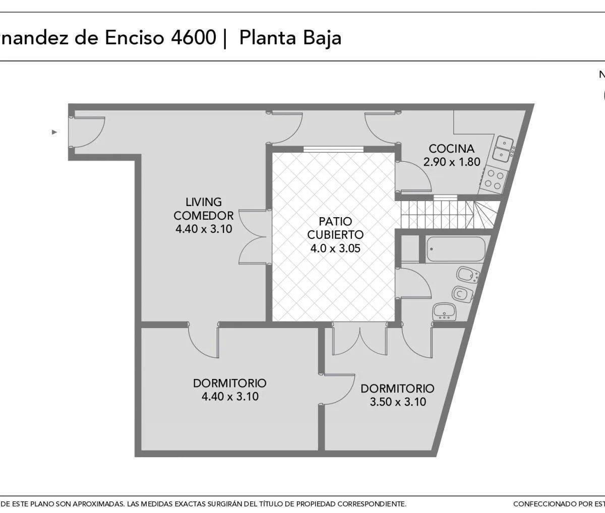 PH (квартира с отдельным входом) в Villa Devoto, 3 комнаты: 2 спальни и гостиная. В квартире есть крытый внутренний двор (patio cubierto) и терраса. Отдельная кухня выходит в patio. В спальнях нет встроенных шкафов. Условия аренды: договор на 2 года с ежеквартальным повышением, привязанным к IPC. Требуются залог-страховка аренды и страхование от пожара и гражданской ответственности, а также аванс и депозит в размере по 1 месяцу.