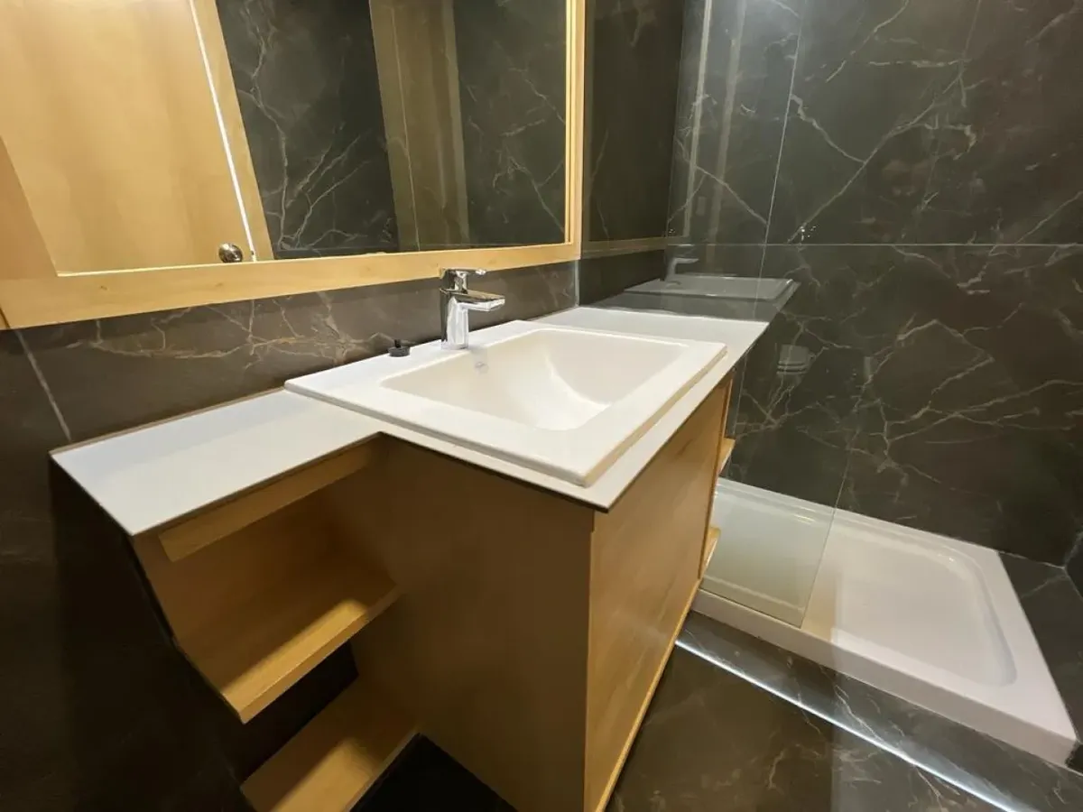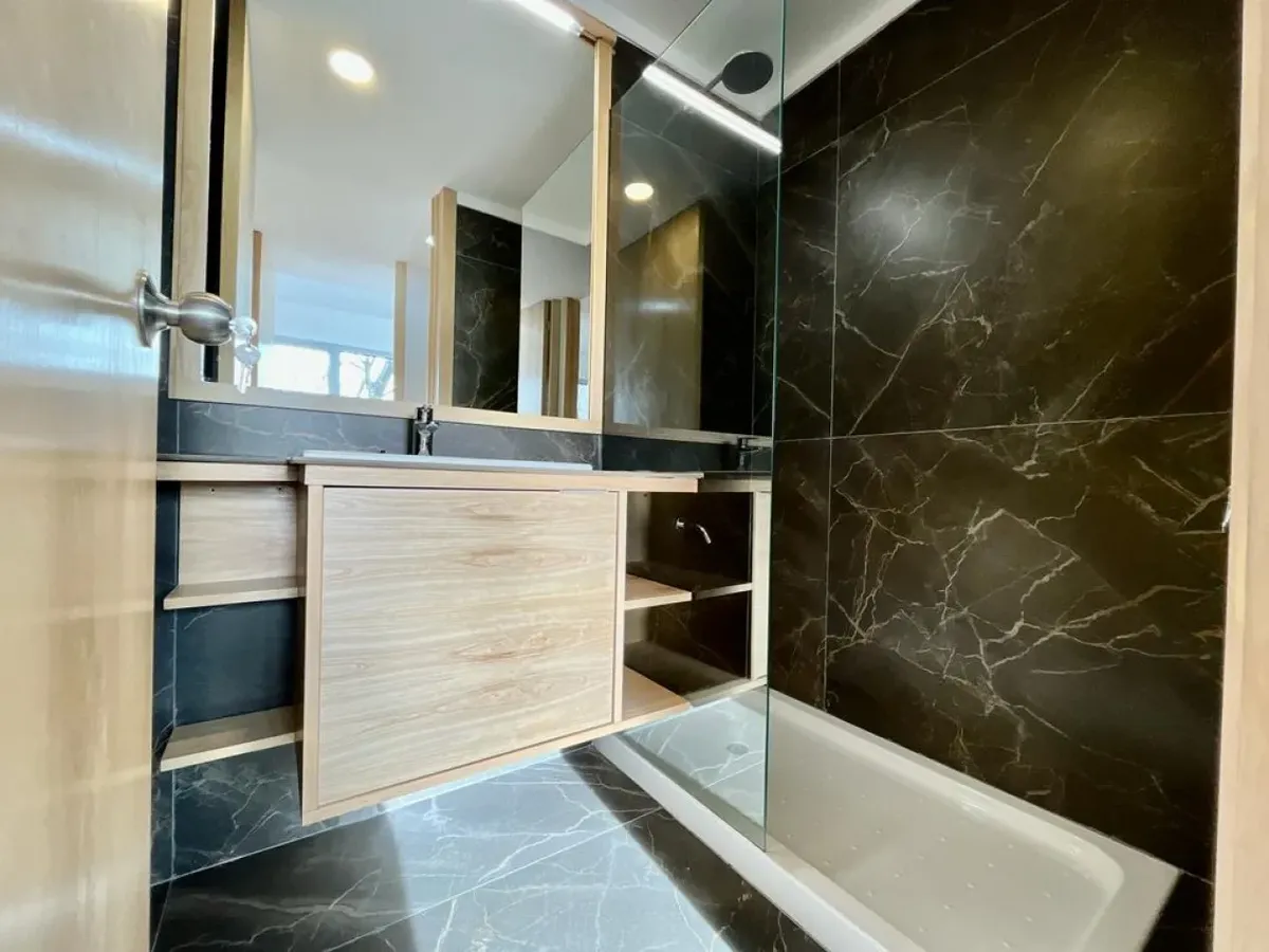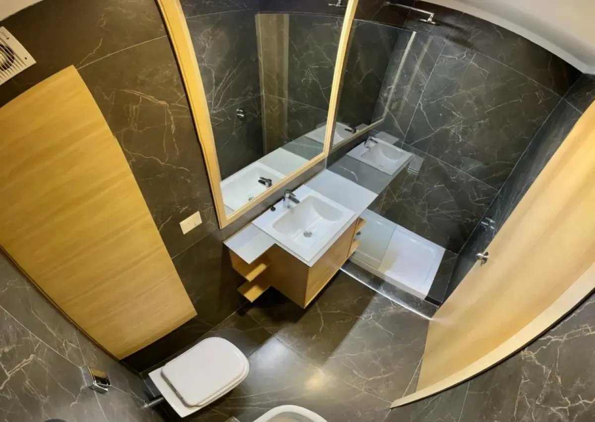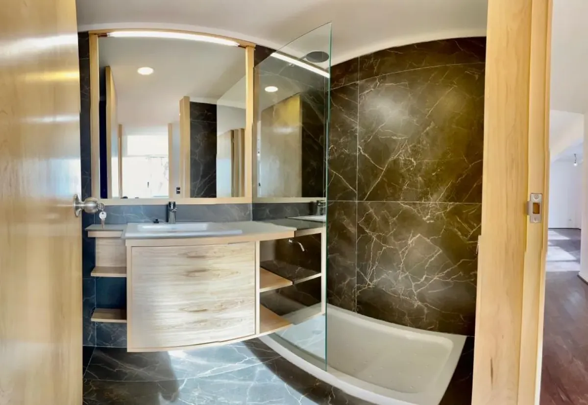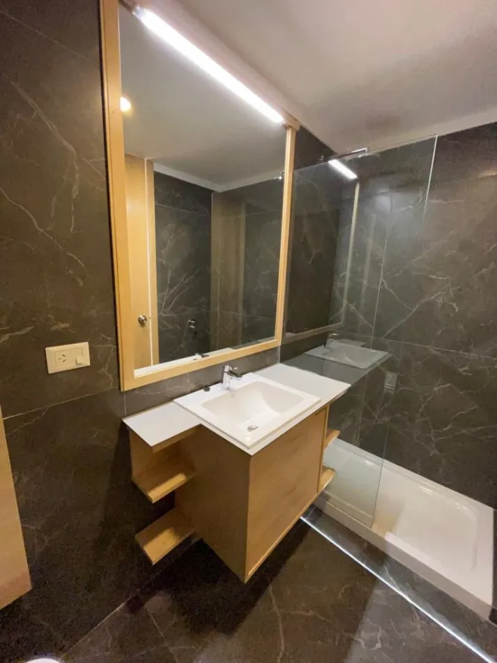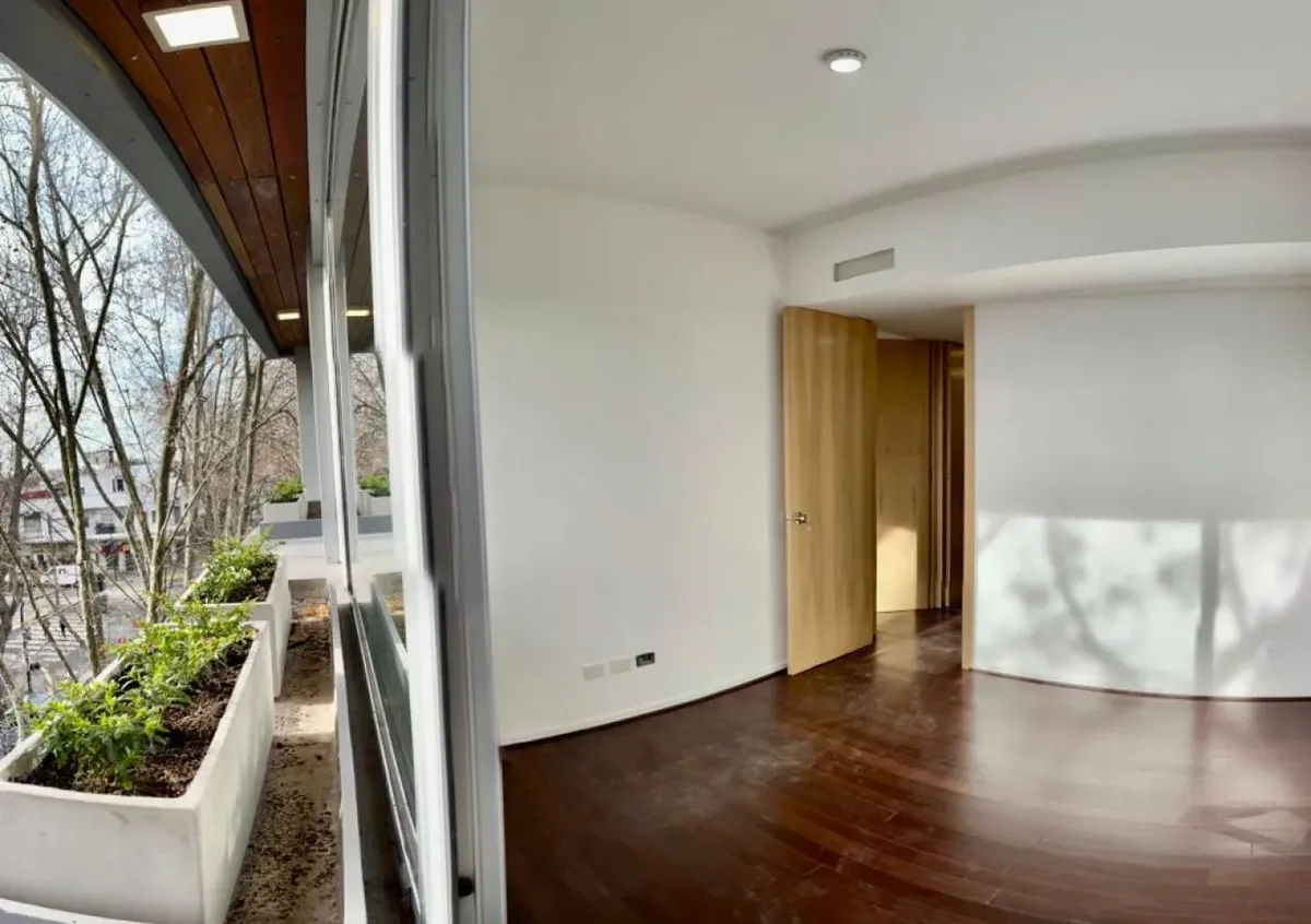 Трёхкомнатная квартира в Villa Lugano площадью 80 m² крытых, 84,5 m² общих, с балконом 4,5 m². В отделке: спальня с собственной ванной и гардеробной, двустворчатые стеклопакеты DVH, предустановка кондиционера, стены с воздушной камерой и стекловатой. На балконе предусмотрена зона гриля с настилом и отделкой потолка (Deck), в кухне мебель, духовой шкаф и газовая плита Longvie, электрический водонагреватель Ariston, в гостиной газовый обогреватель Longvie. Санузлы и кухня с напольной керамикой бол