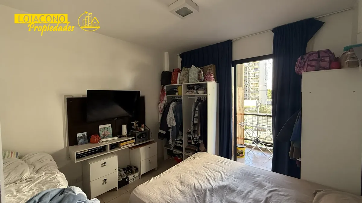 Квартира в аренду в Villa Olimpica, José B. Zubiaur al 4400. Здание Edificio 15 de Villa Olímpica, 1-й этаж, окна на улицу. Планировка из 3 комнат: гостиная-столовая с встроенной кухней, 2 спальни, 2 ванные комнаты (одна в suite). Есть балкон с террасной зоной. В здании 2 лифта и общие зоны. Коммунальные платежи здания: около $80.000 (март 2026). Установка полностью электрическая. Максимальная вместимость — 4 человека; допускаются дети и небольшое домашнее животное.
