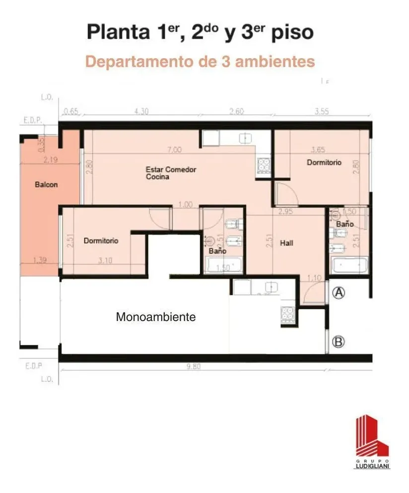 Квартира в формате полуэтажа с 3 комнатами, окна на улицу и балконом, новая (никто не жил) в Villa Luro. Площадь 66,05 m²: 57,15 m² крытых и 8,90 m² полукрытых, балкон 8,90 m² с выходом из гостиной-столовой. Планировка включает входной холл, гостиную-столовую с выходом на балкон и интегрированную кухню, 2 спальни (одна с ванной комнатой) и ещё одну полностью укомплектованную ванную. Здание 4-этажное, 1 корпус. Договор на 2 года с квартальной индексацией по IPC. Условия оплаты: арендный месяц, де