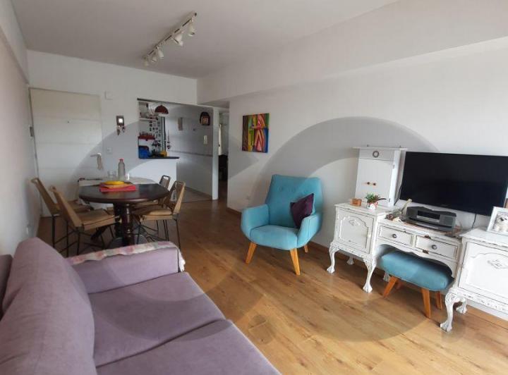 Квартира в Villa Urquiza в формате 3 ambientes общей планировки: 2 спальни и гостиная, 10-й этаж, окна на улицу (frente), с балконом. Квартира с мебелью и оборудованием, с просторной гостиной-столовой и полувстроенной кухней, которая выходит во внутренний двор. В числе оснащения холодильник и кухонные приборы, также установлены кондиционер в гостиной, потолочные вентиляторы в спальнях и центральное отопление по полу с подогревом. В здании предусмотрены бассейн с солярием, зона гриля на первом эт