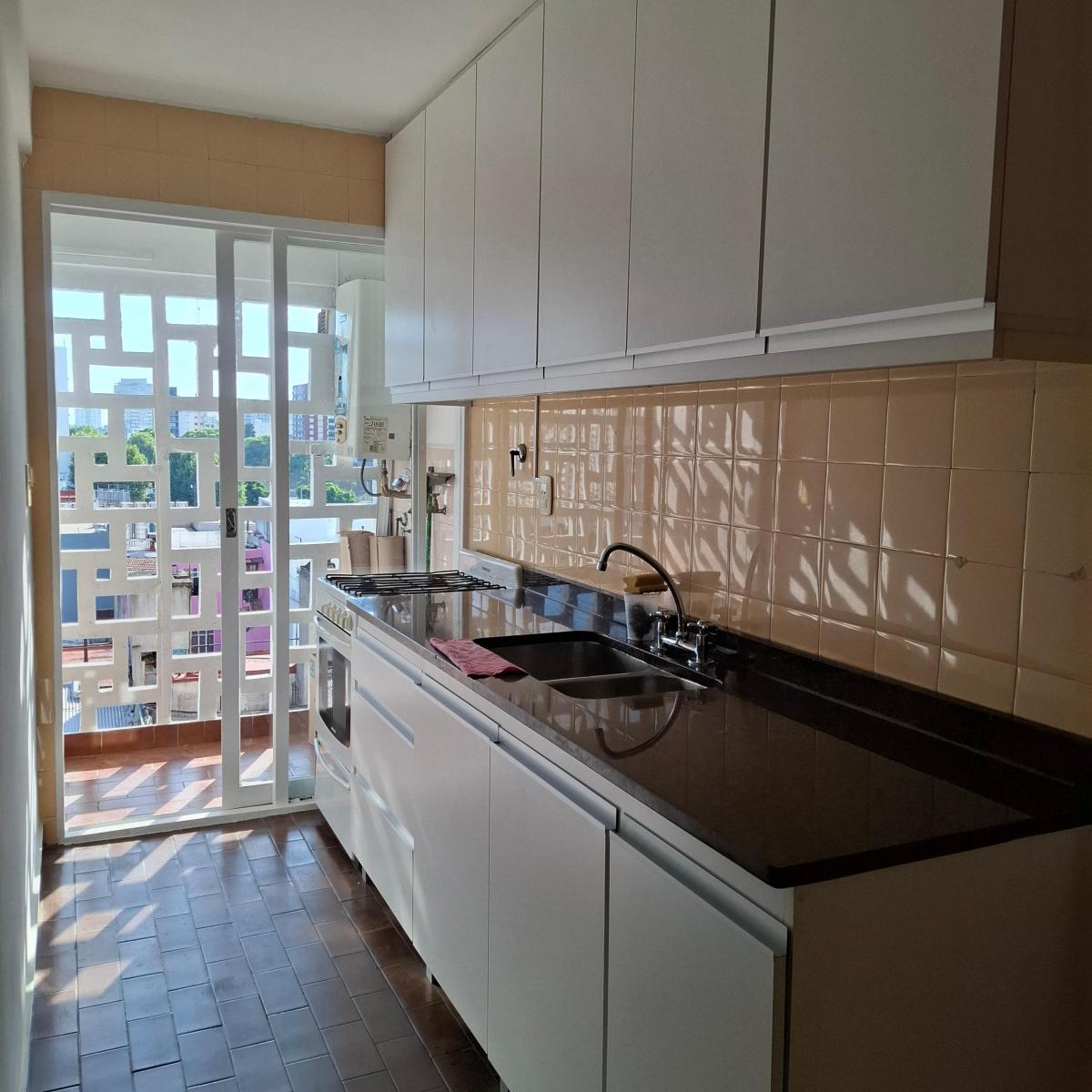 Квартира на 3 комнаты площадью 61 m² в Villa Urquiza: 54 m² крытых, окна на улицу. Два спальных помещения и 1 полностью оборудованная ванная комната. Паркетные полы в основных помещениях после свежей шлифовки и лакировки. Отдельная кухня с кладовой и нижними шкафами, предусмотрено место для небольшого ежедневного обеденного уголка; рядом зона для прачечной с подключением под стиральную машину и бойлером для горячей воды. В обеих спальнях встроенные шкафы; во всех помещениях есть естественное осв