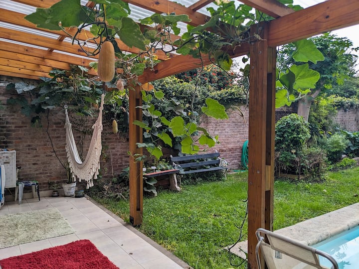 Дом с 3 спальнями в Acassuso. На территории расположен бассейн в частном парке и зона гриля (quincho) для приготовления на гриле. Есть большая оборудованная кухня. Указан собственный огород с органическими овощами. До природного заповедника 1 блок, рядом с рекой. Размещение предусмотрено только для семейного отдыха, без вечеринок и мероприятий.