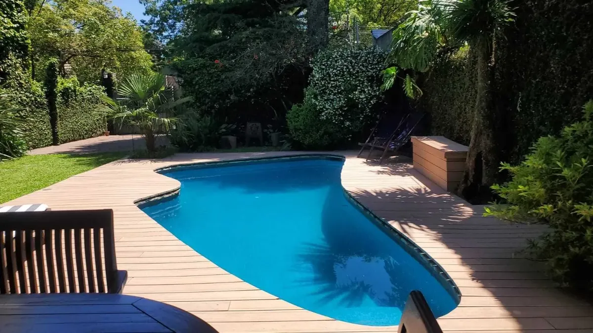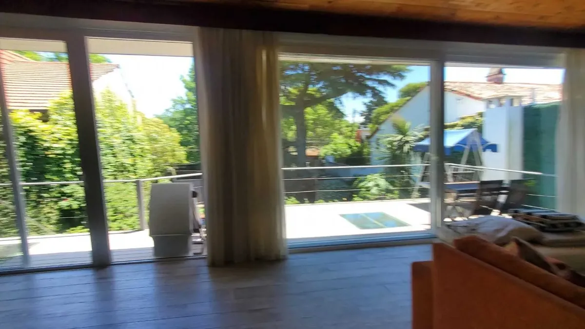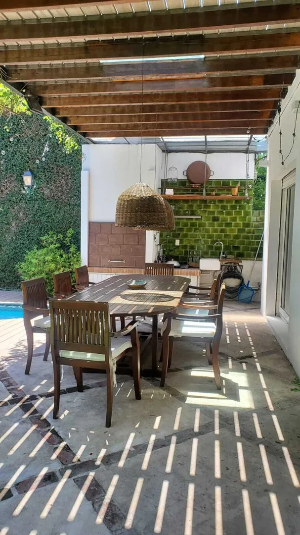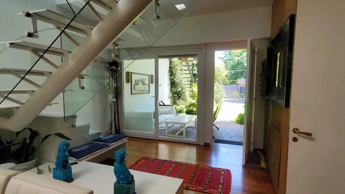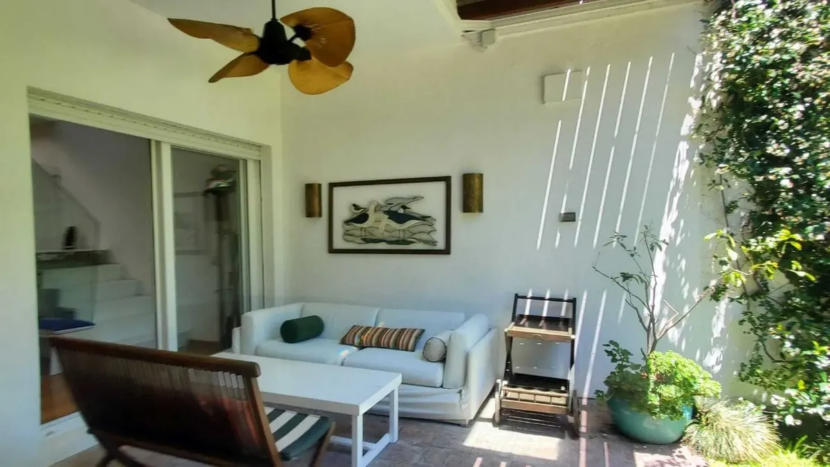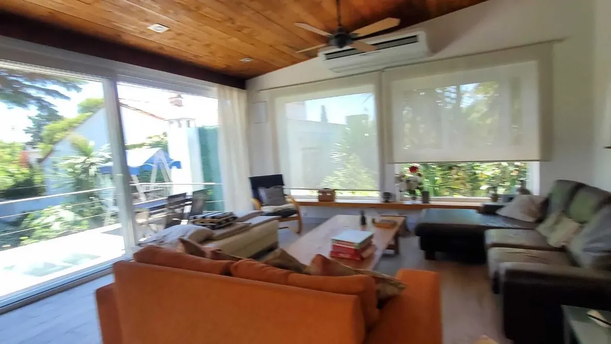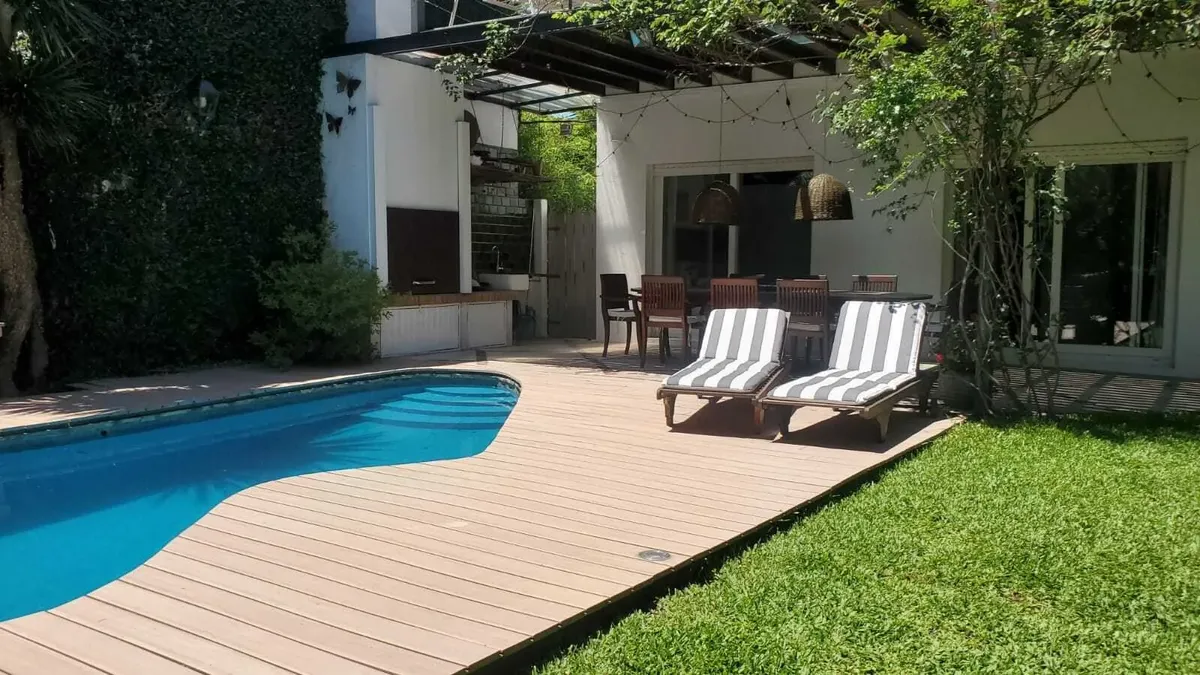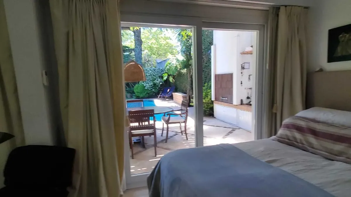 Арендный дом в Acassuso, San Isidro, с 3 спальнями и мебелью. В описании указано расположение в 1 квартале от Libertador со стороны реки. Планировка включает гостиную-столовую с выходом в сад, гостевой туалет, полностью оборудованную кухню и отдельную прачечную; на первом этаже также две спальни ванных комнатами (одна master suite с гардеробной и обновлённой ванной, вторая — с отдельной ванной) с выходом в сад. На втором этаже находятся playroom с выходом на террасу и прямым сообщением с садом,